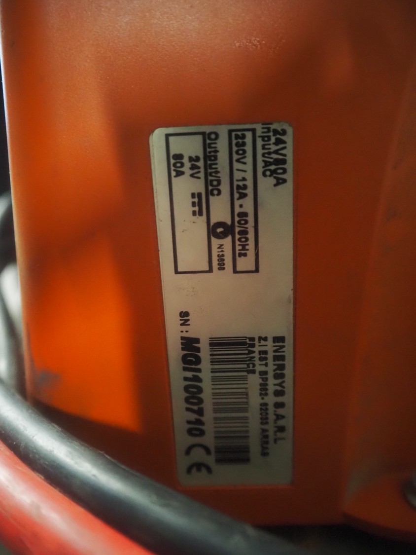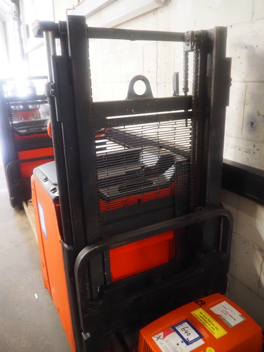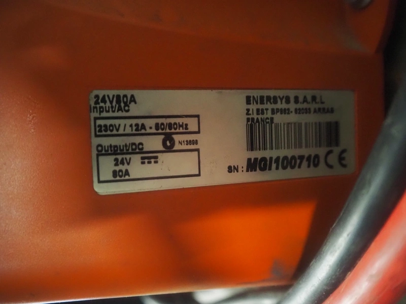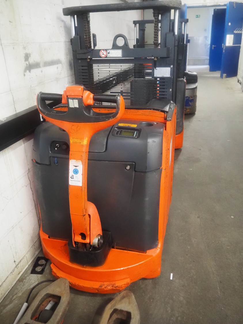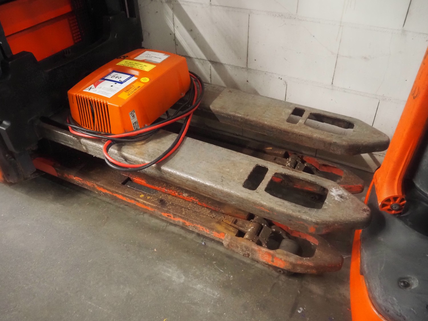 Linde Material Handling electric pallet lifter, type: L12.L, serial number: W4X133D00281, year of construction: 2013, 24 V, 3 kW, rated capacity: 1200/2000 kg, fork length: (2x) 1150 mm, distance between forks: 200 mm, fork width: 560 mm, lifting height: 2010 mm, total dimensions: 2300 mm x 800 mm x 1450 mm. Including Enersys S.A.R.L battery charger.
