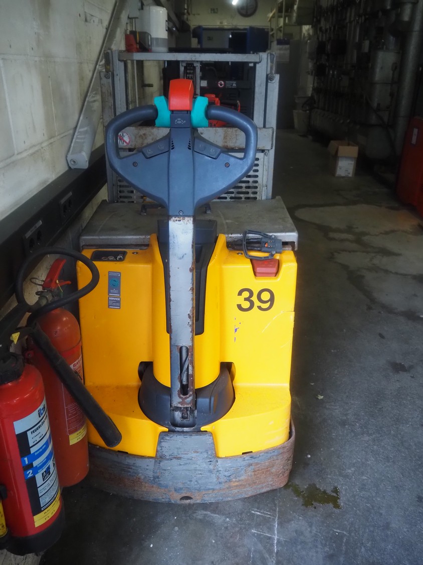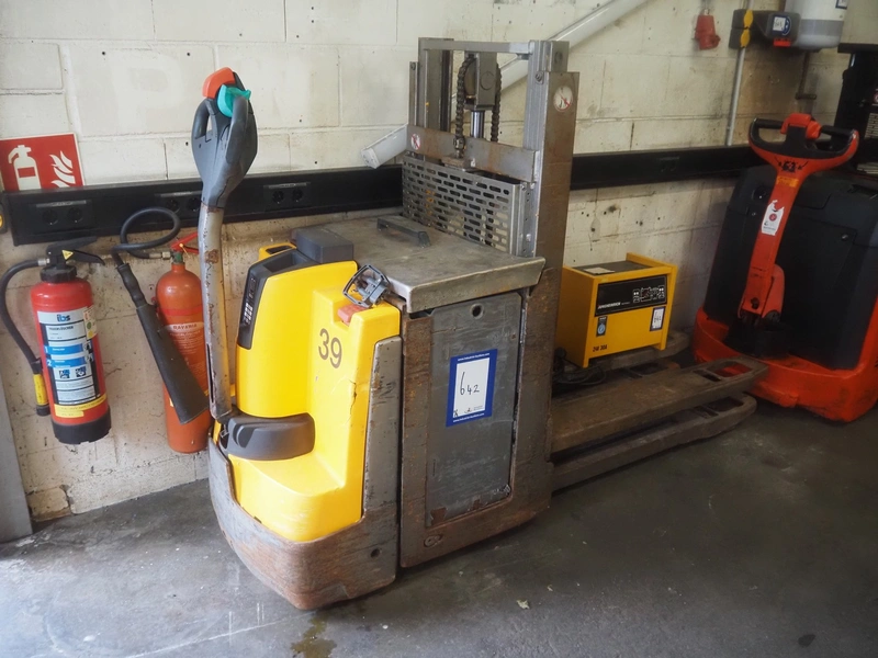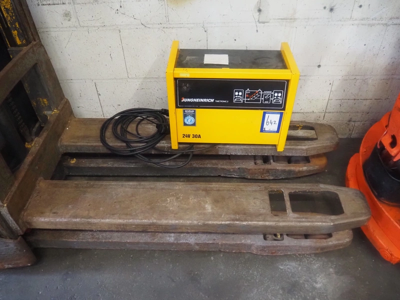 Jungheinrich electrical pallet lifter, fork length: 1180 mm, total dimensions: 2130 mm x 740 mm x 1400 mm. Including Jungheinrich battery charger, 24 V.
