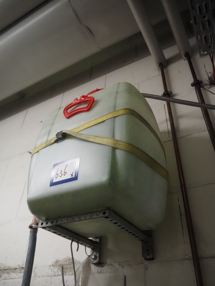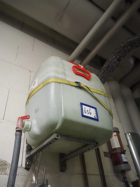 Seine plastic tub used for demi water, dimensions tub: 450 mm x 350 mm x 500 mm with In-Lab water filter, model: Aquademat.