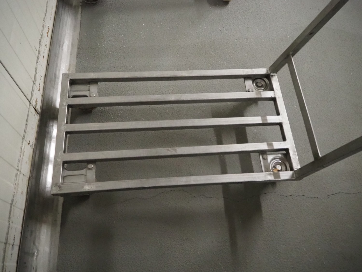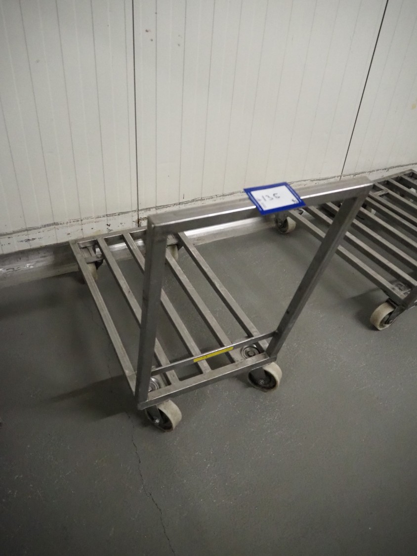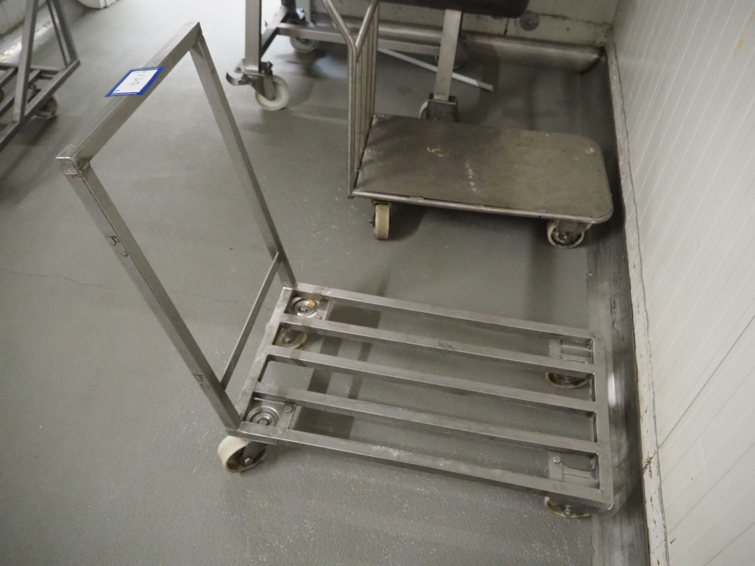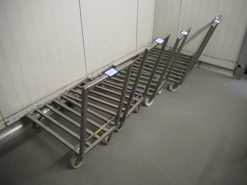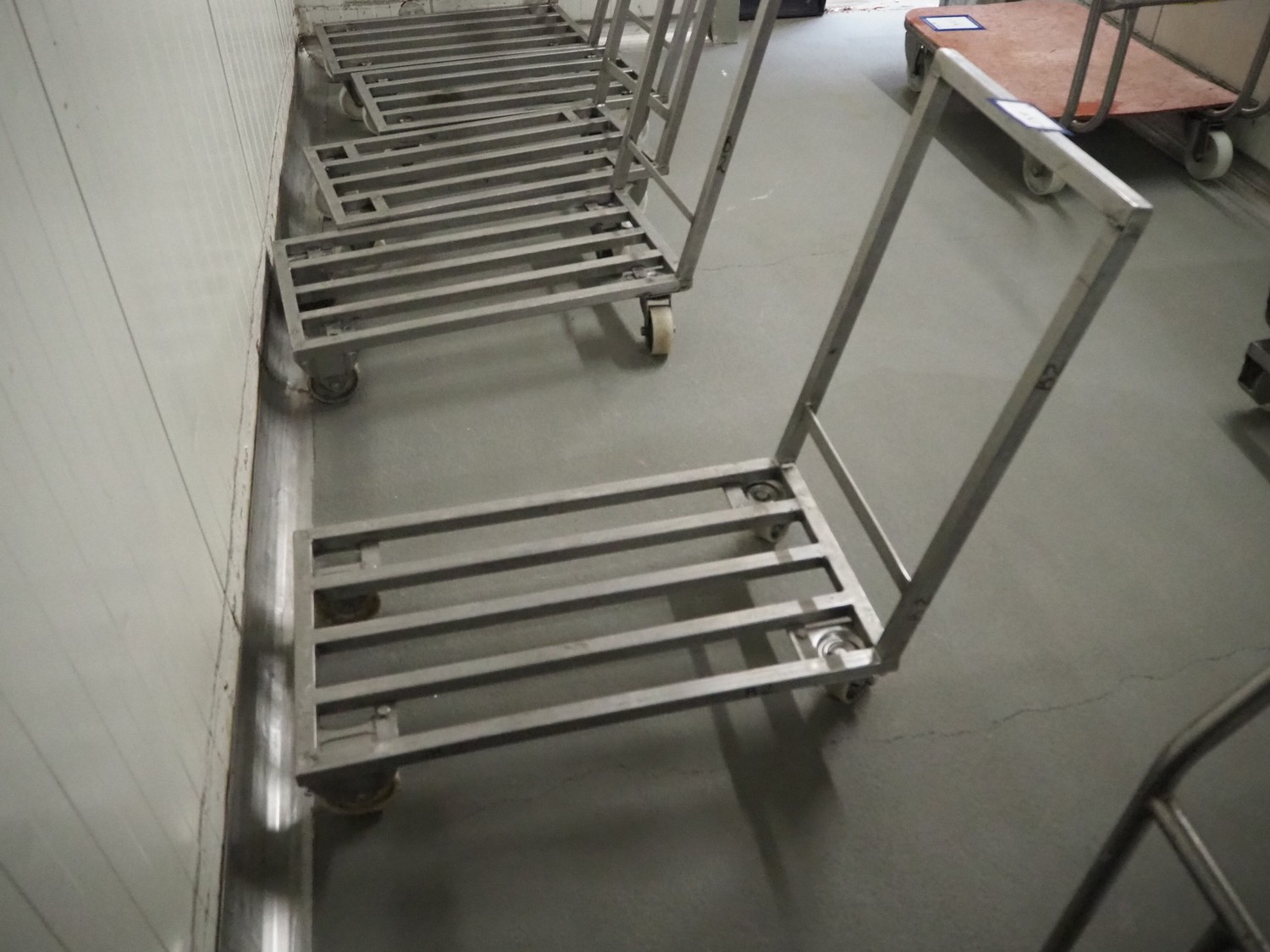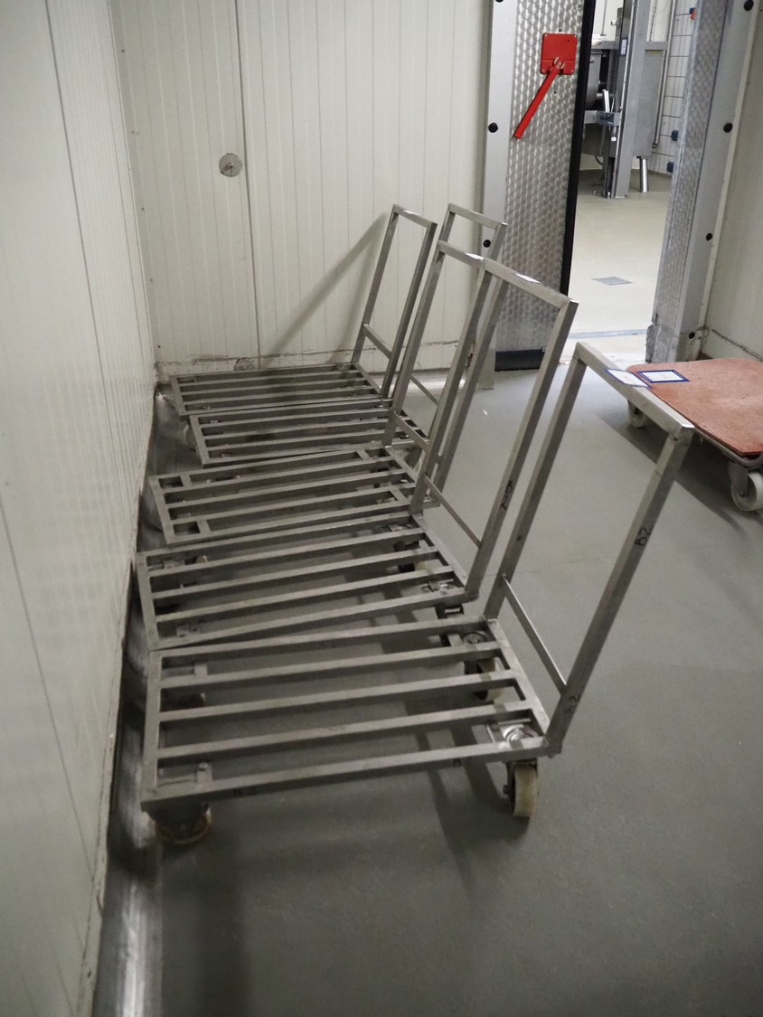 5 s/s trolleys, dimensions: (5x) 1150 mm x 500 mm x 950 mm.
