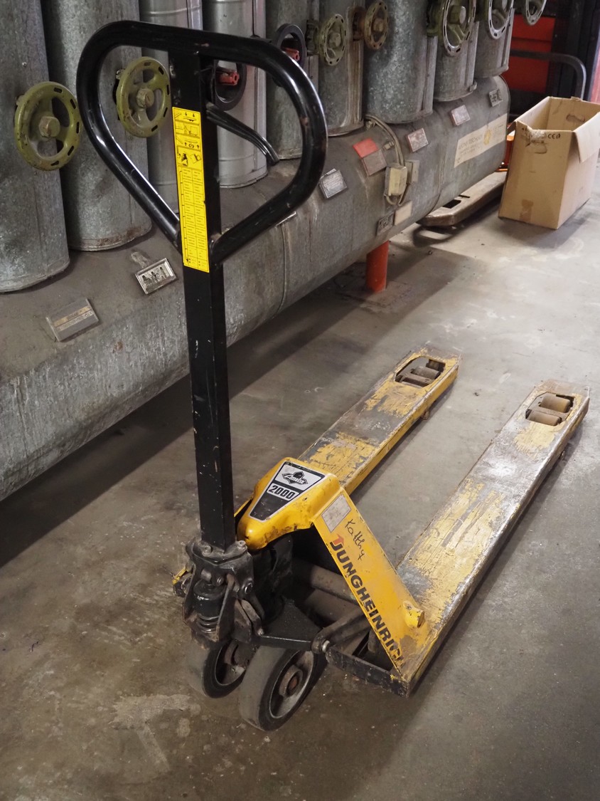 Jungheinrich pallet lifter, capacity: 2000 kg, fork length: 1150 mm, total dimensions: 1550 mm x 550 mm x 1230 mm.