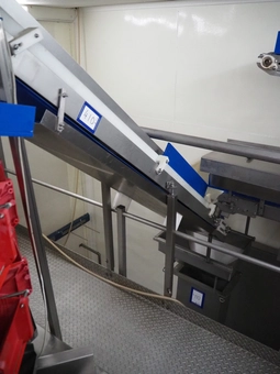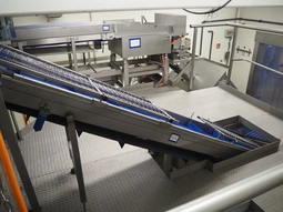 Mobile elevating belt, s/s frame, plastic belt with dividers, belt width: 500 mm, dividers height: 30 mm, distance between dividers…€ 420,001 bid03/03/2026 15:10