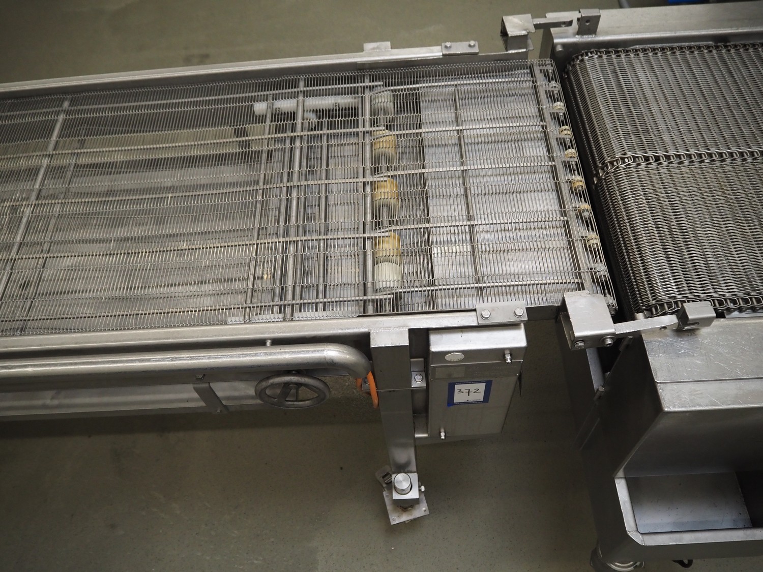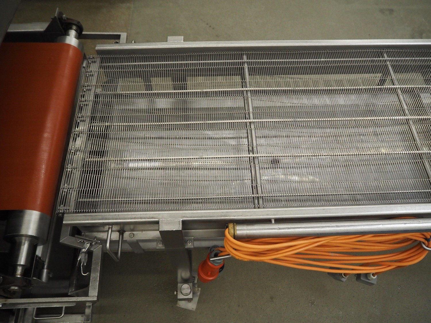 Koppens Machinefabriek B.V. mobile mesh belt, type: TG 3250/600R, machine number: 1078, 380 V, 3 Ph, 50 Hz, 0.18 kW, 120 kg, s/s mesh belt, belt width: 600 mm, total dimensions: 3150 mm x 800 mm x 1000 mm.