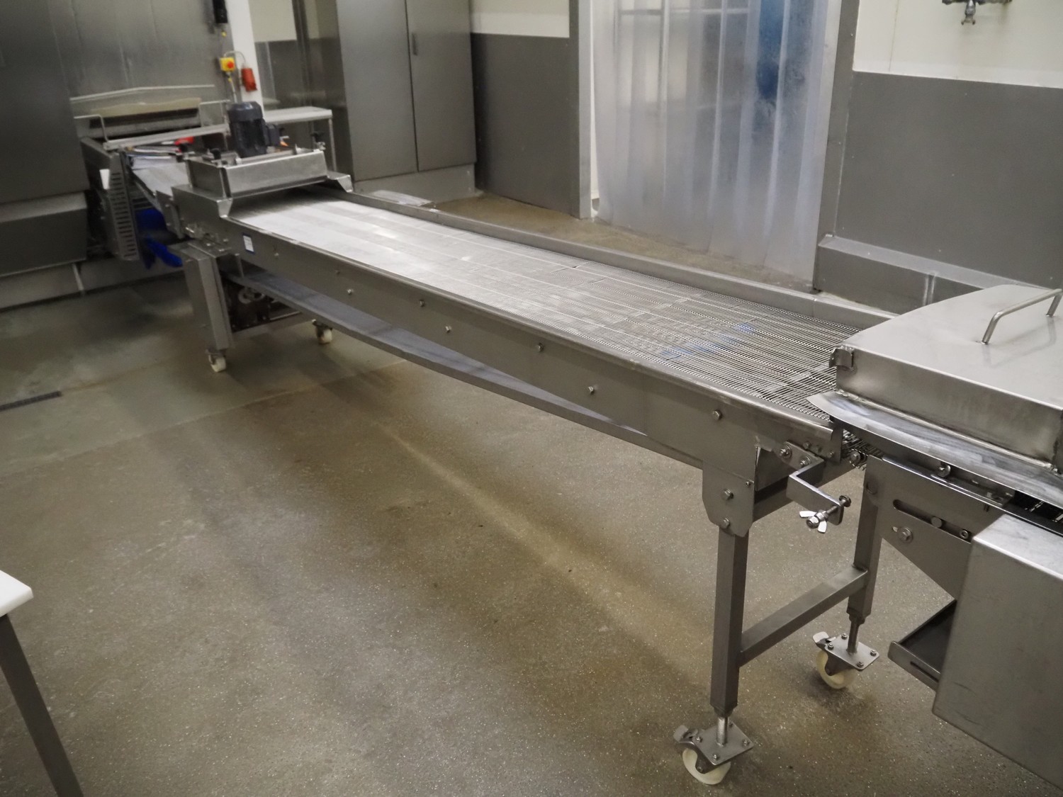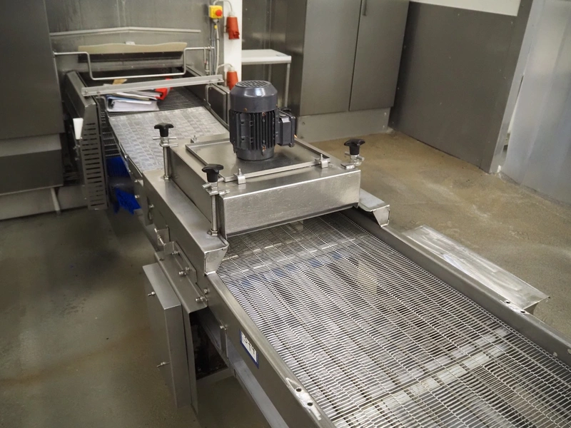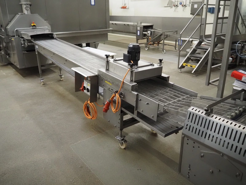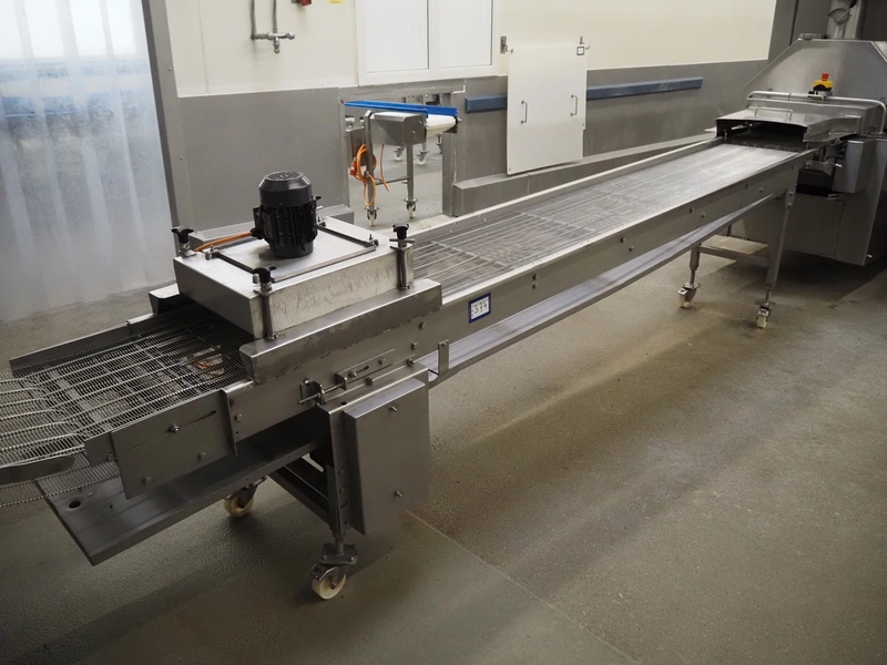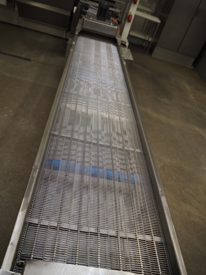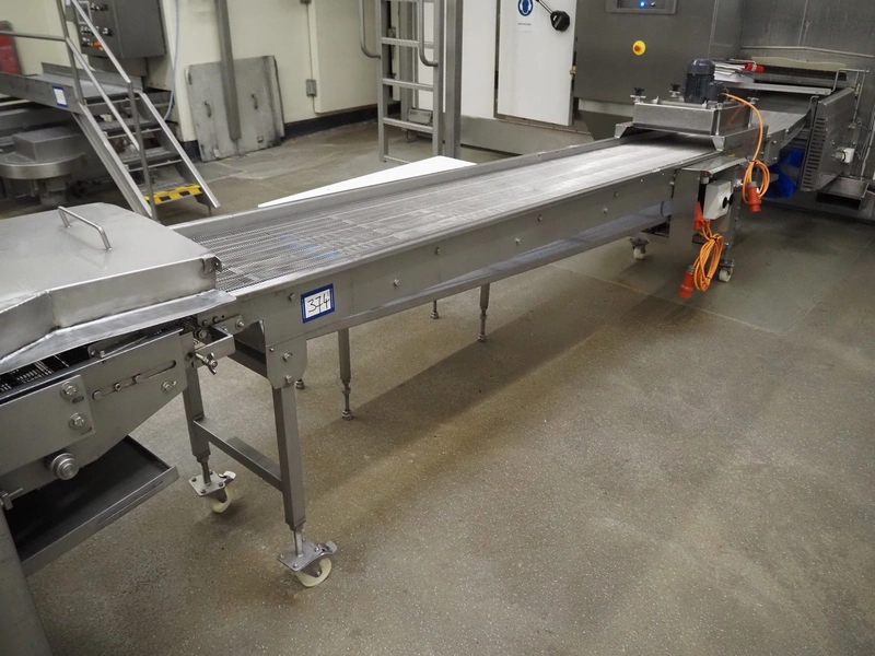 S/s mobile mesh belt with dryer, belt width: 500 mm, total dimensions: 4200 mm x 800 mm x 1250 mm.
