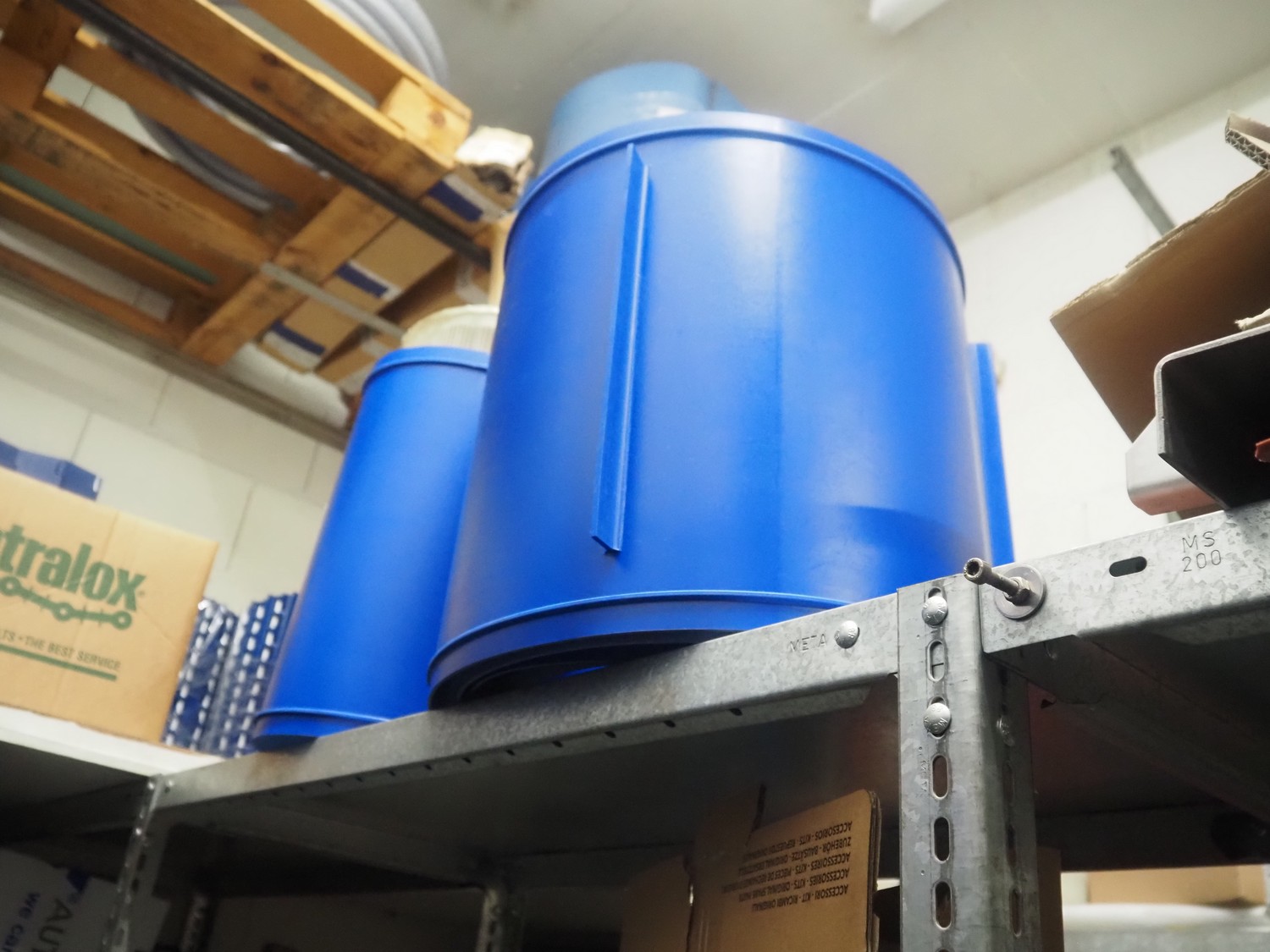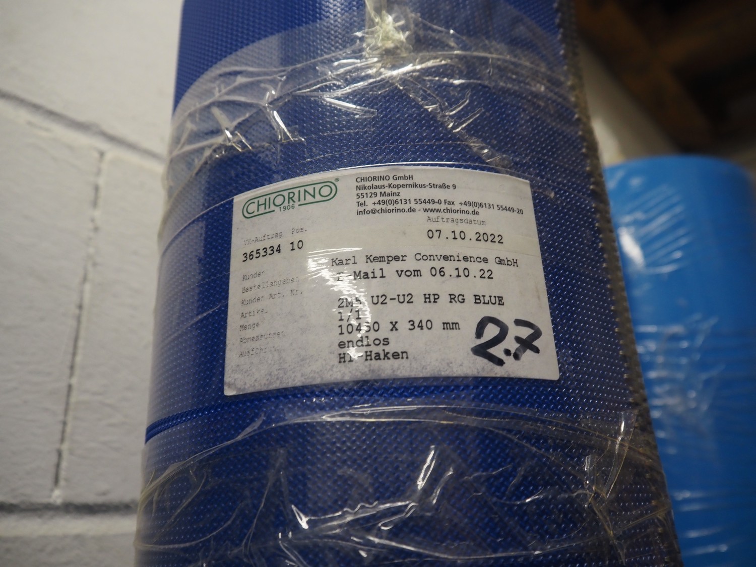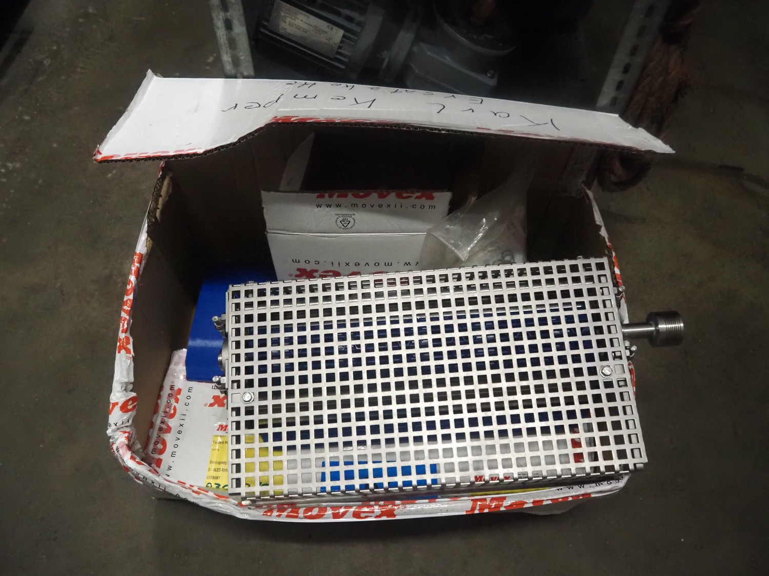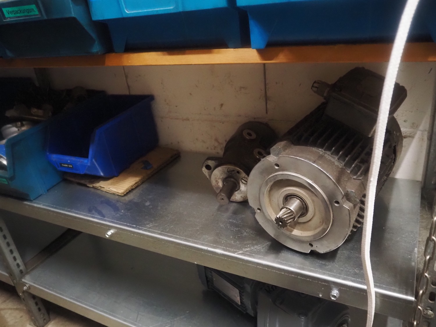 3 racks with large amount of parts, among others: s/s mesh belts, belt width: 620 mm / 600 mm / 500 mm / 400 mm / 320 mm, various electro motors, drum motors, plastic belts, belt width: 400 mm, wheels, gearings, dimensions racks: (2x) 4000 mm x 500 mm x 2000 mm and 4000 mm x 300 mm x 2000 mm.