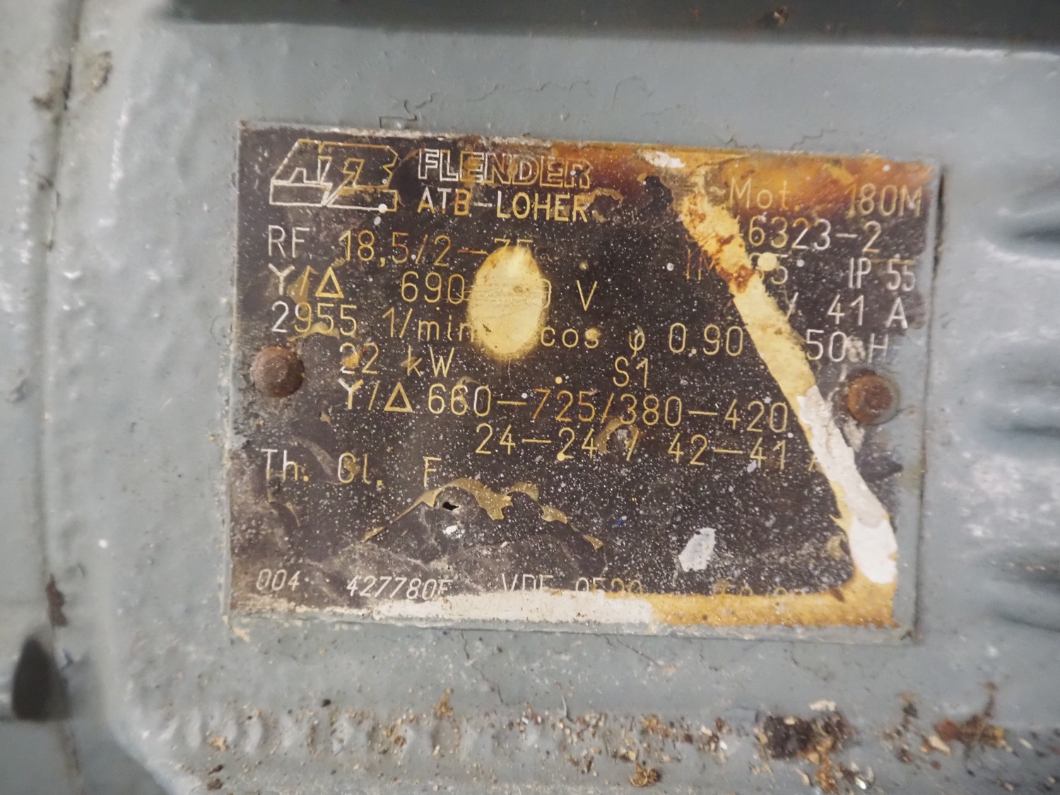 ATB electromotor, model: RF 18.5/2-75, 41 A, 22 kW, dimensions: 740 mm x 340 mm x 500 mm.