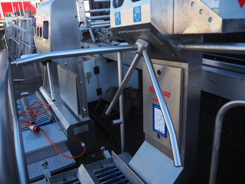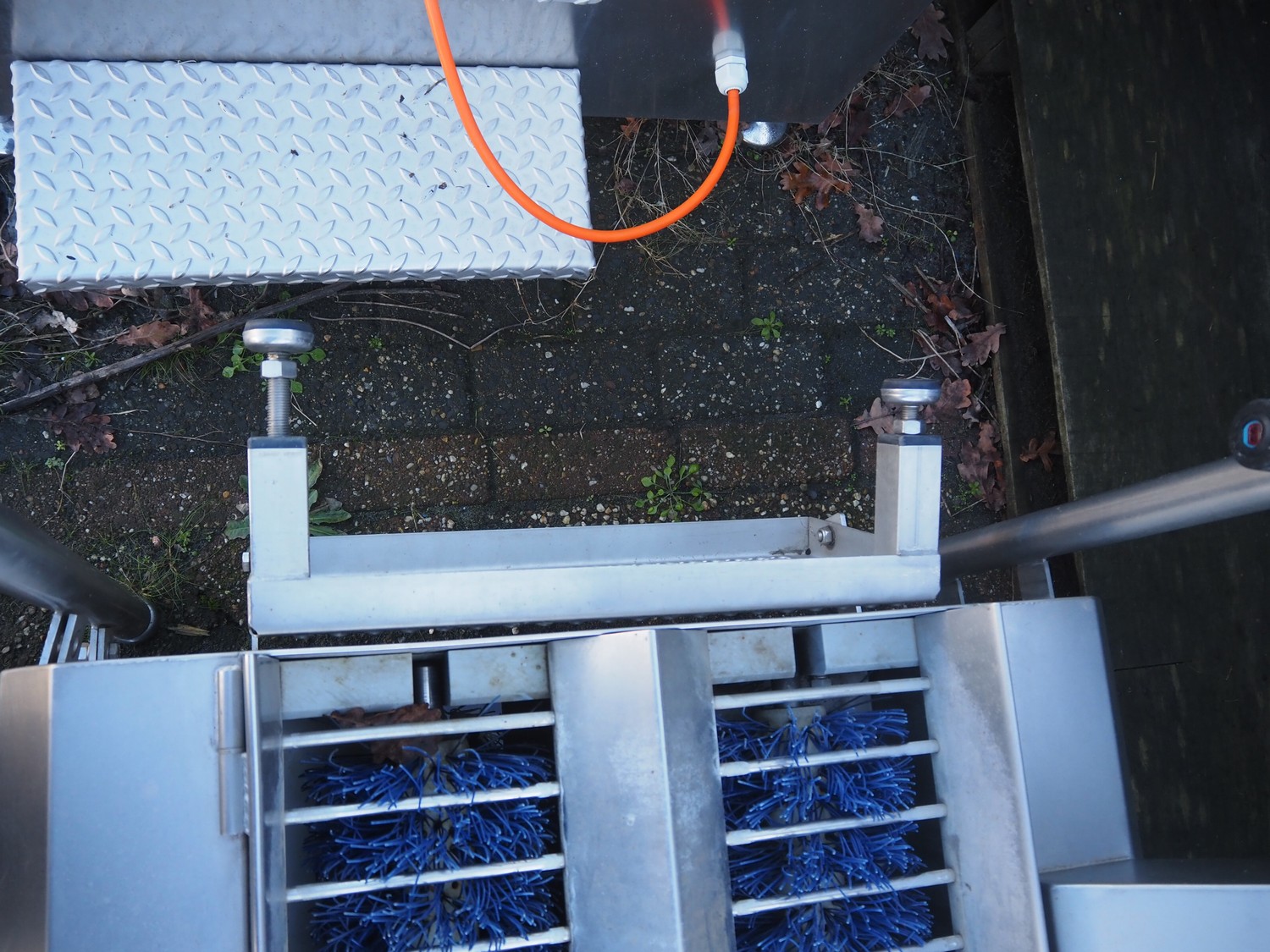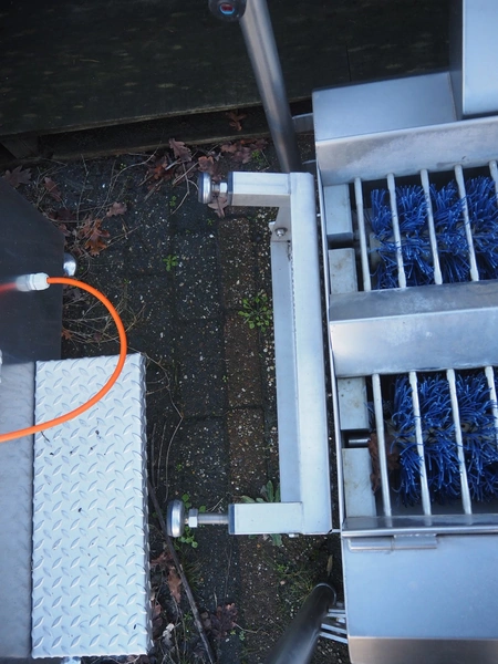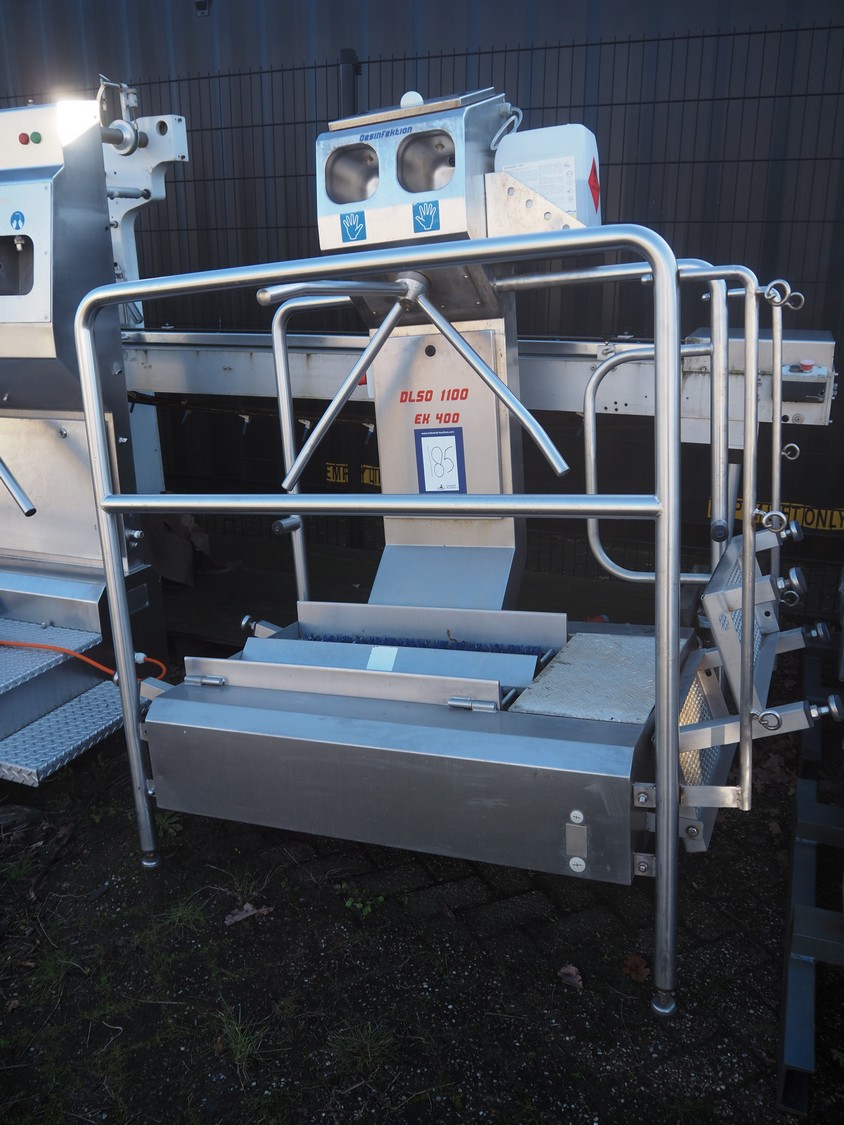Kohlhoff Hygienetechnik GmbH & Co. KG hygiene station, type: DLSO-SL1100+EK400, number: 801848, year of construction: 12/2012, 400 V, 3 Ph, 0.8 kW, brush length: (2x) 700 mm, total dimensions: 1650 mm x 1000 mm x 1880 mm.