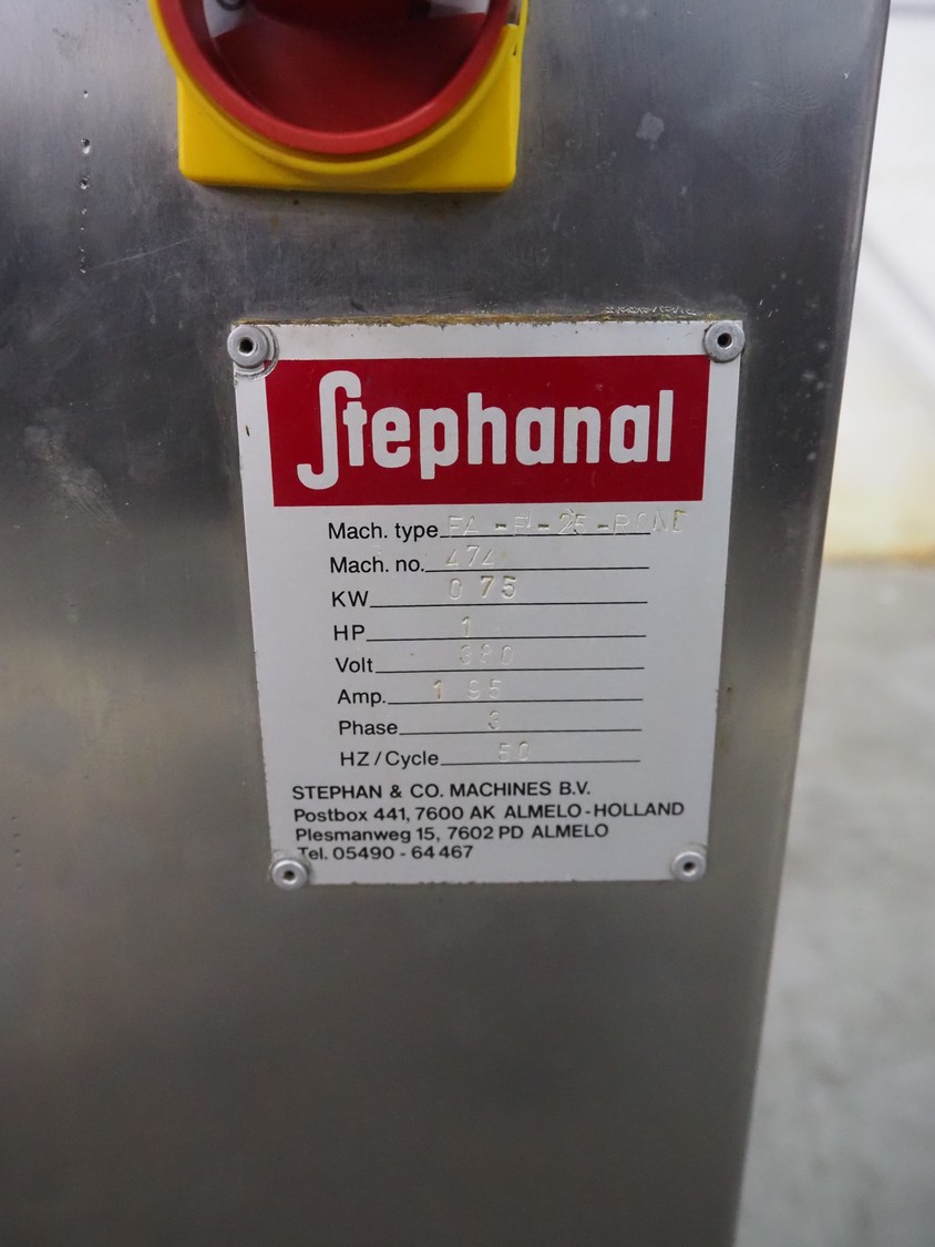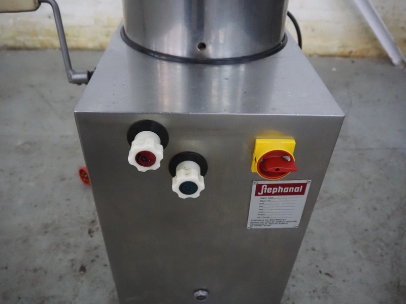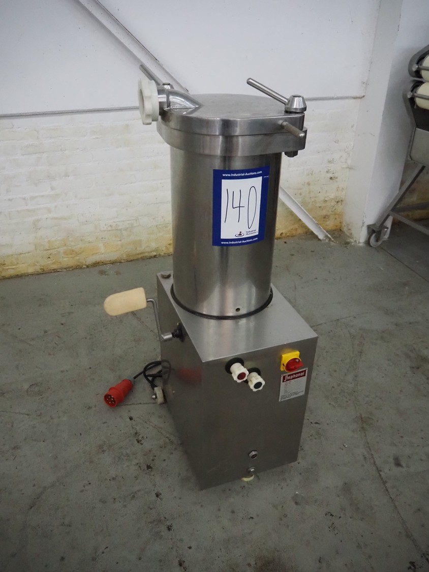 Stephanal mobile piston filler, type: FA-F-25-ROND, number: 474, 380 V, 3 Ph, 50 Hz, 1.95 A, 0.75 kW, volume: 25 liter, dimensions: 550 mm x 520 mm x 1200 mm.