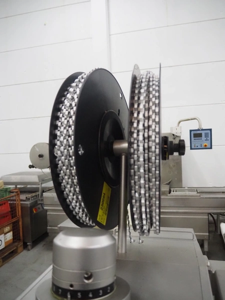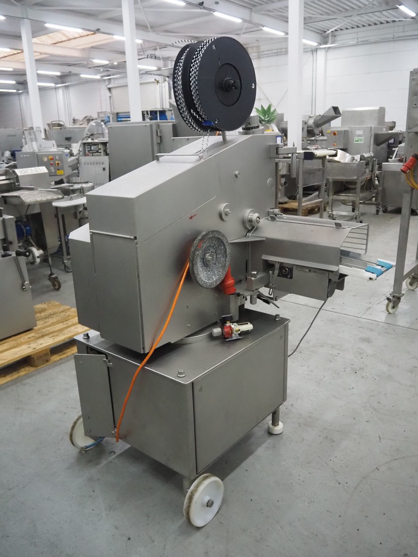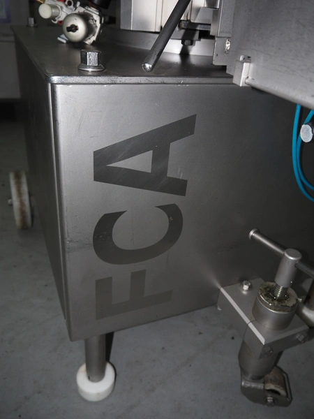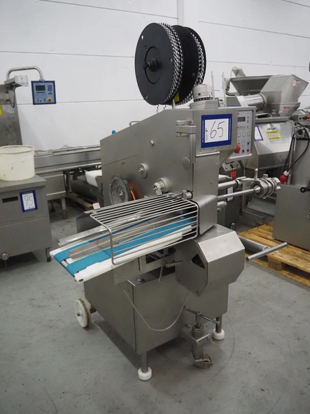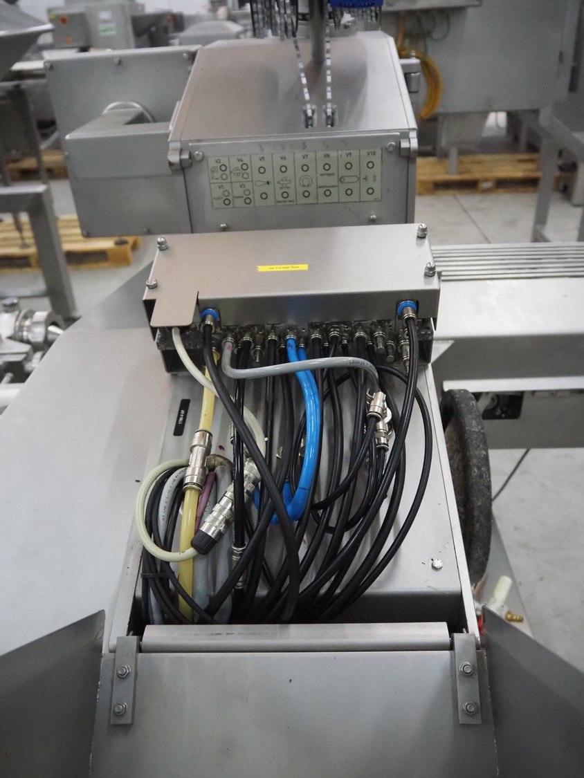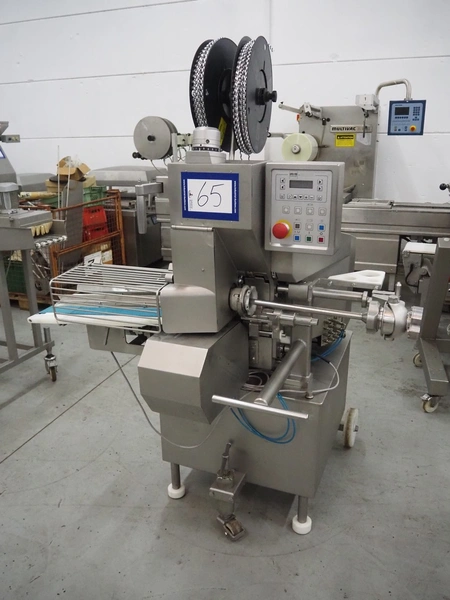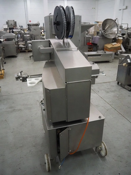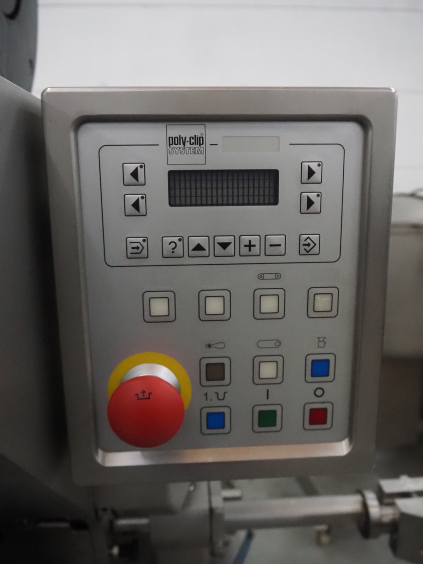 Poly-clip System GmbH & Co.KG mobile double automatic clipper, model: FCA, plastic belt, belt width: (2x) 75 mm, total dimensions: 1500 mm x 1200 mm x 2000 mm.