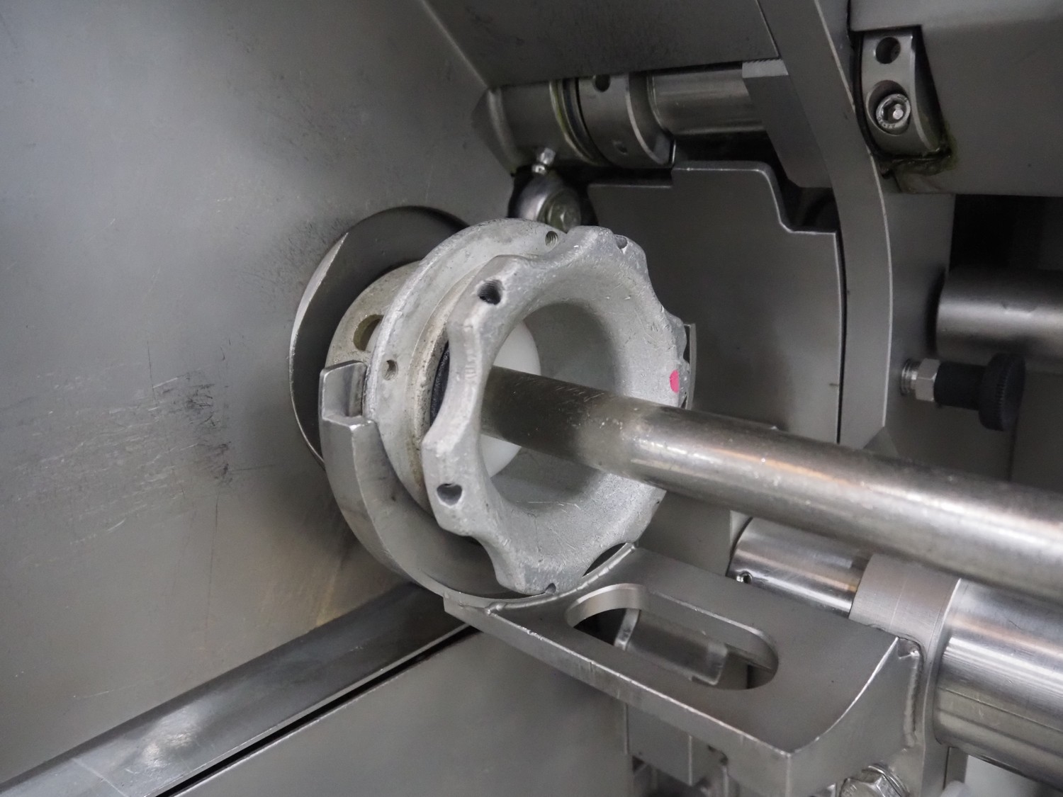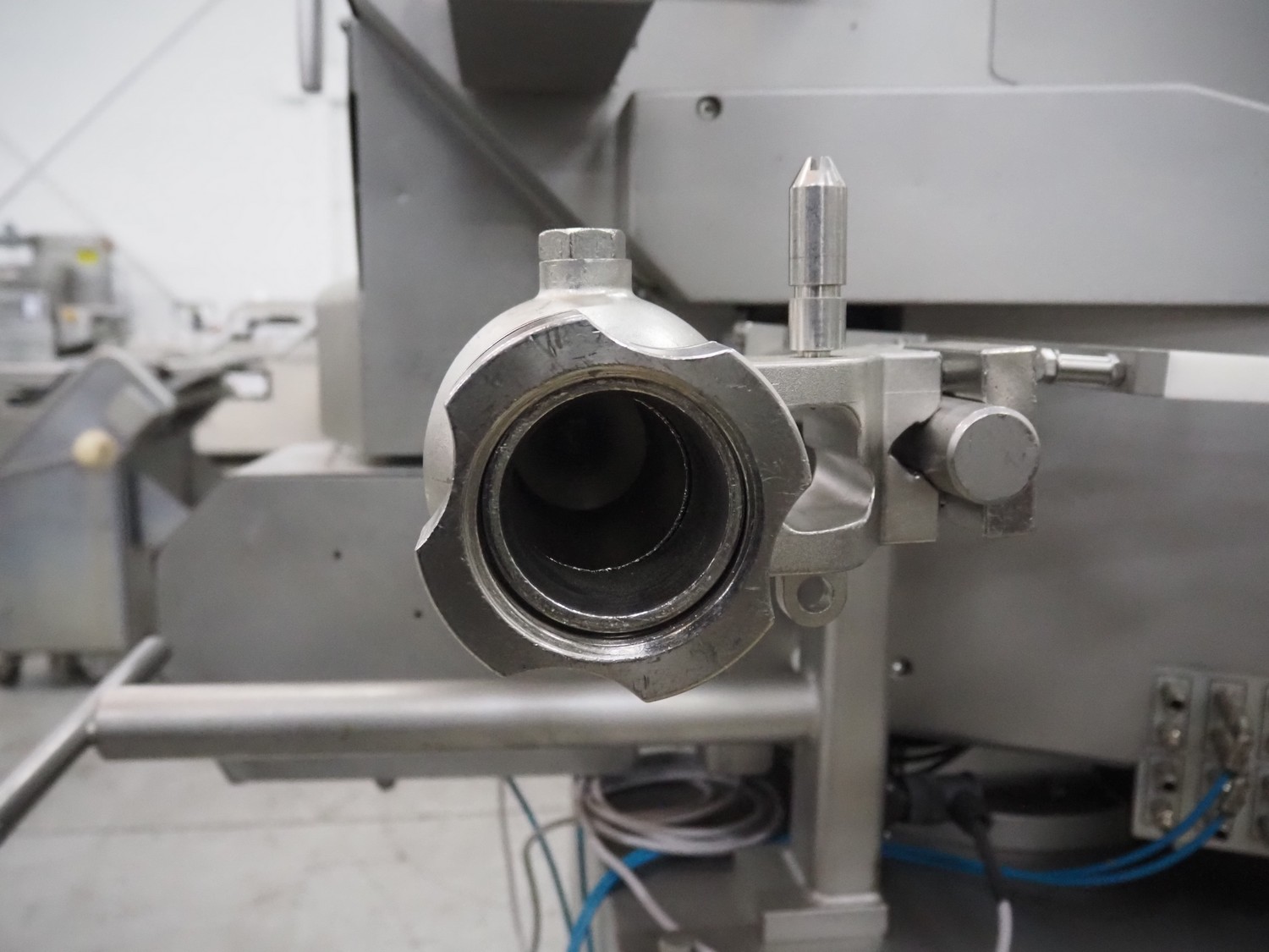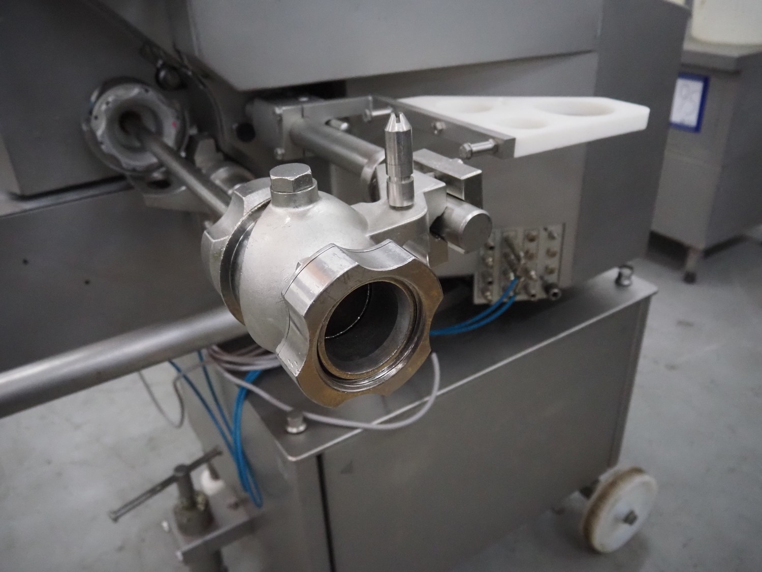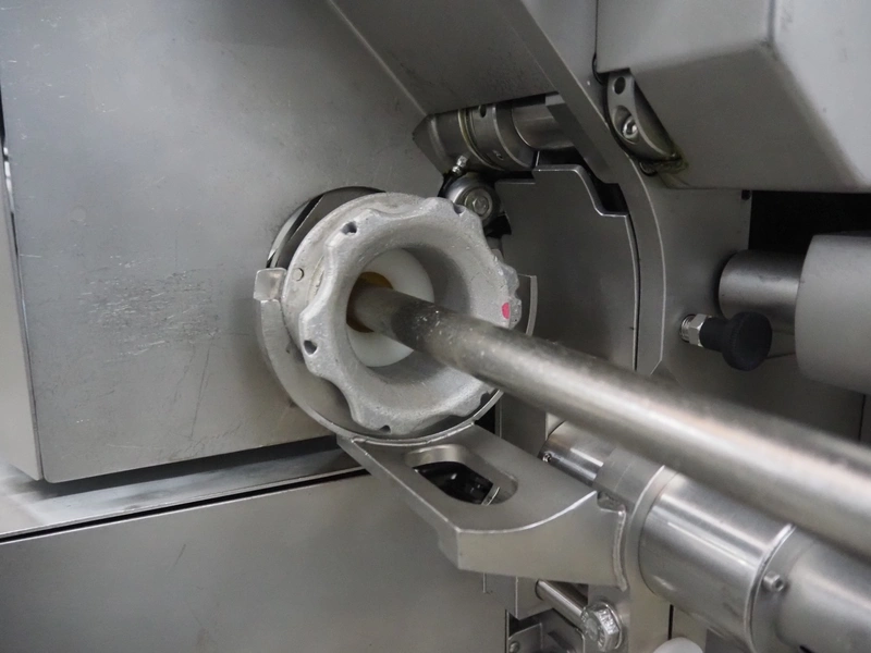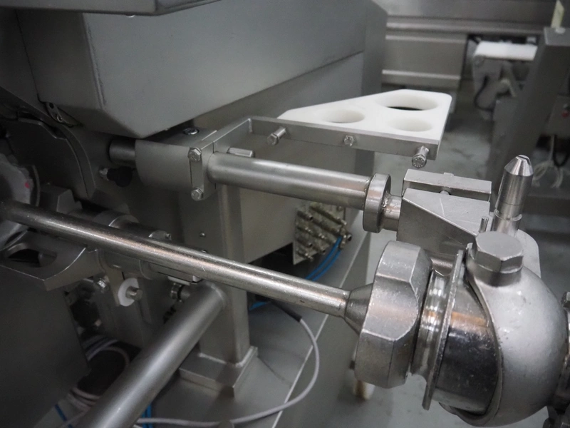 Poly-clip System GmbH & Co.KG mobile double automatic clipper, model: FCA, plastic belt, belt width: (2x) 75 mm, total dimensions: 1500 mm x 1200 mm x 2000 mm.
