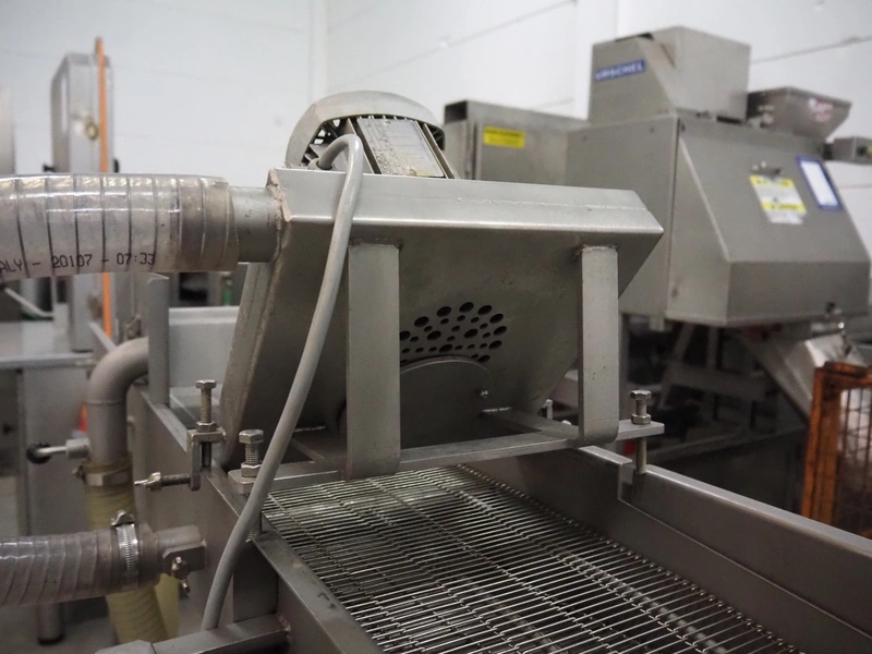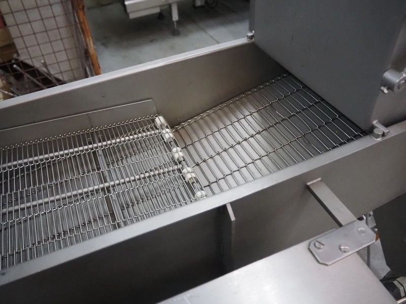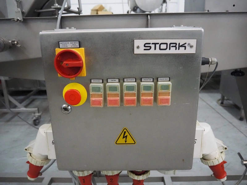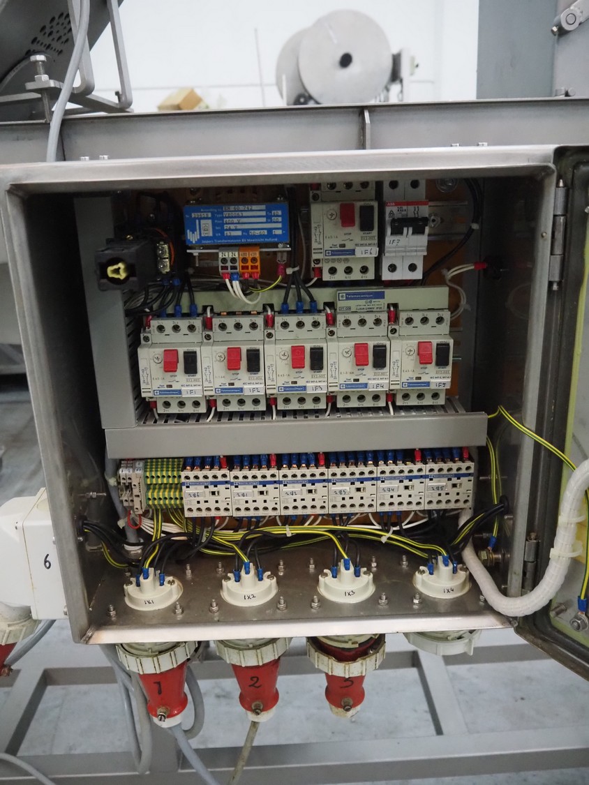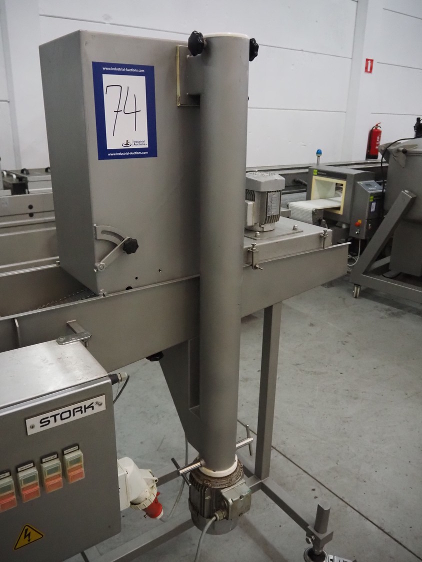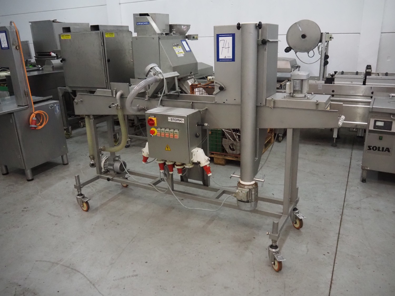 Stork Titan B.V. mobile breading machine, model: TEPM 250, machine number: 4T 211330, year of construction: 1998, 380 V, 3 Ph, 50 Hz, 1.5 kW, s/s mesh belt, belt width: 250 mm, total dimensions: 2500 mm x 700 mm x 1670 mm.