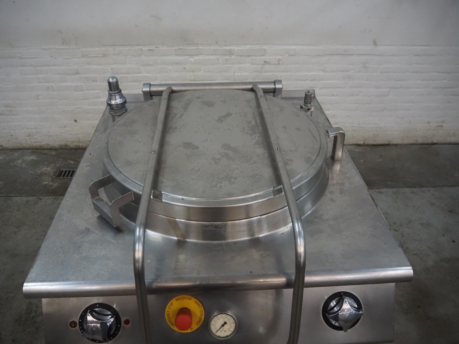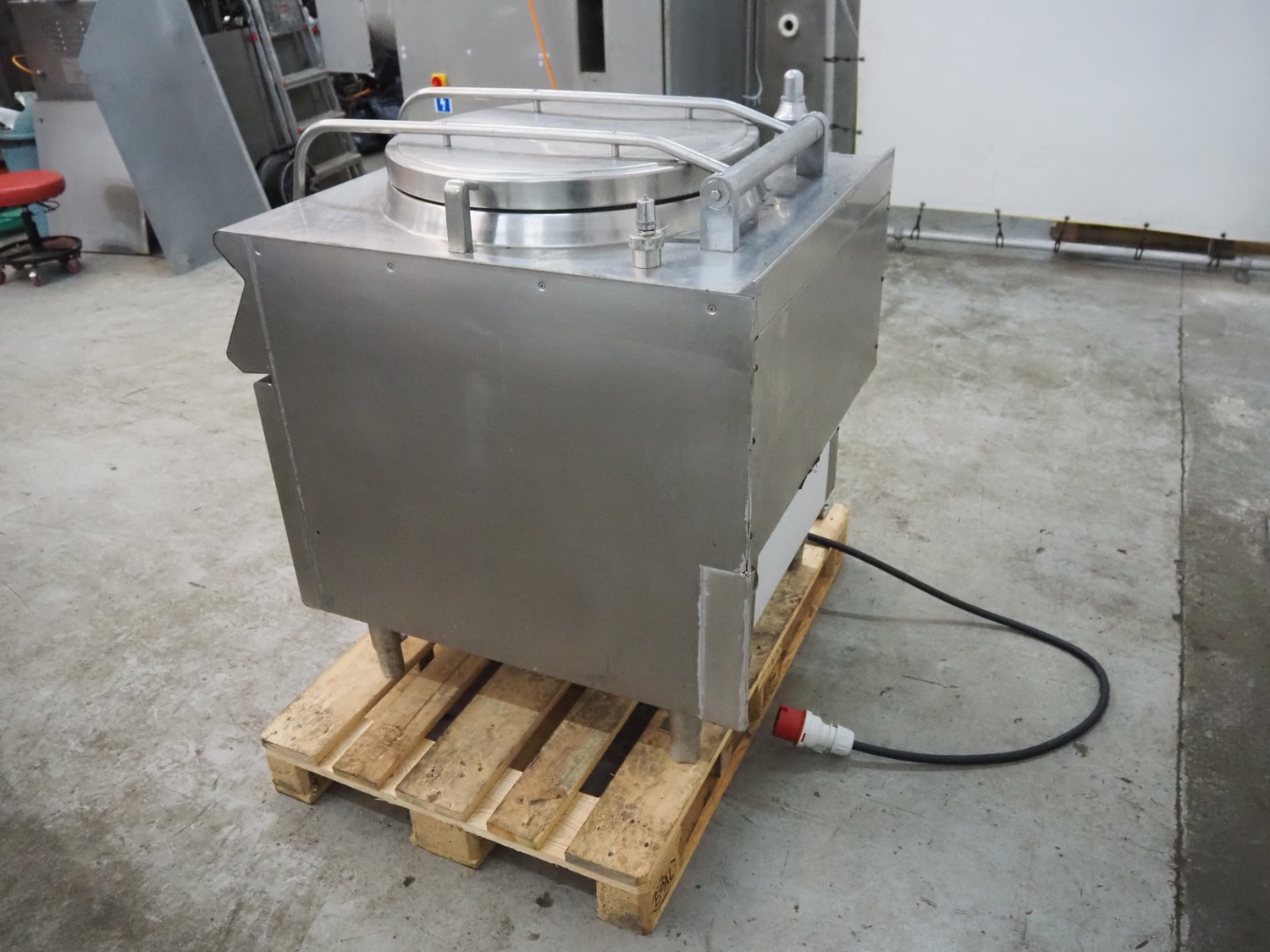 Mareno cooking vessel, 400 V, 3 Ph, 50/60 Hz, inside dimensions: Ø 600 mm x 430 mm, total dimensions: 1000 mm x 800 mm x 1000 mm.