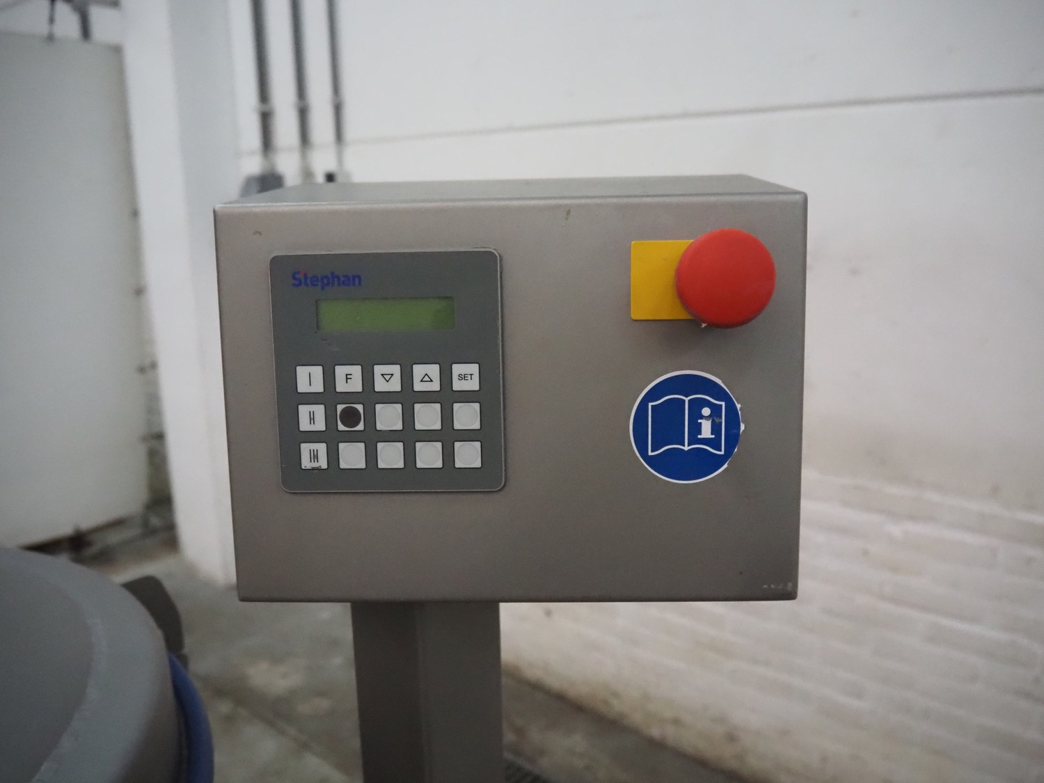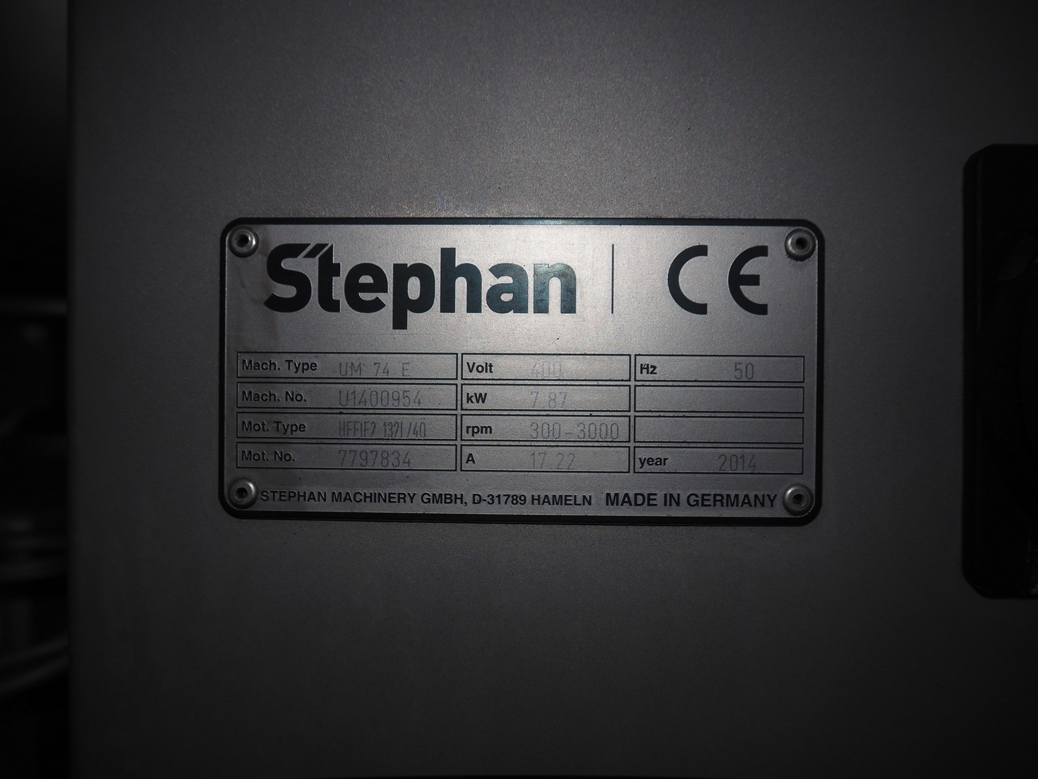 Stephan universal machine, type: UM 74 E, machine number: U1400954, year of construction: 2014, 400 V, 50 Hz, 17.22 A, 7.87 kW, volume: 70 liter, capacity: 55 liter, weight: 300 kg, dimensions: 900 mm x 900 mm x 1600 mm.