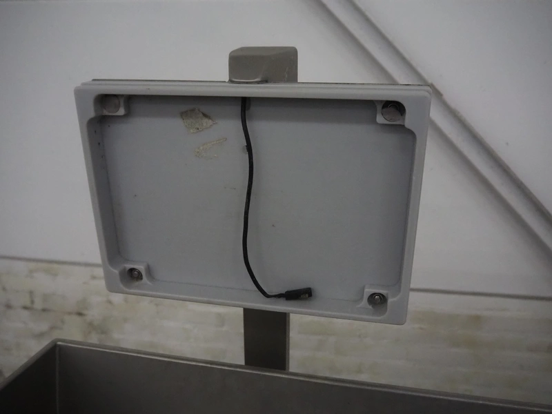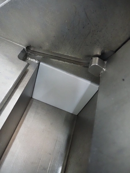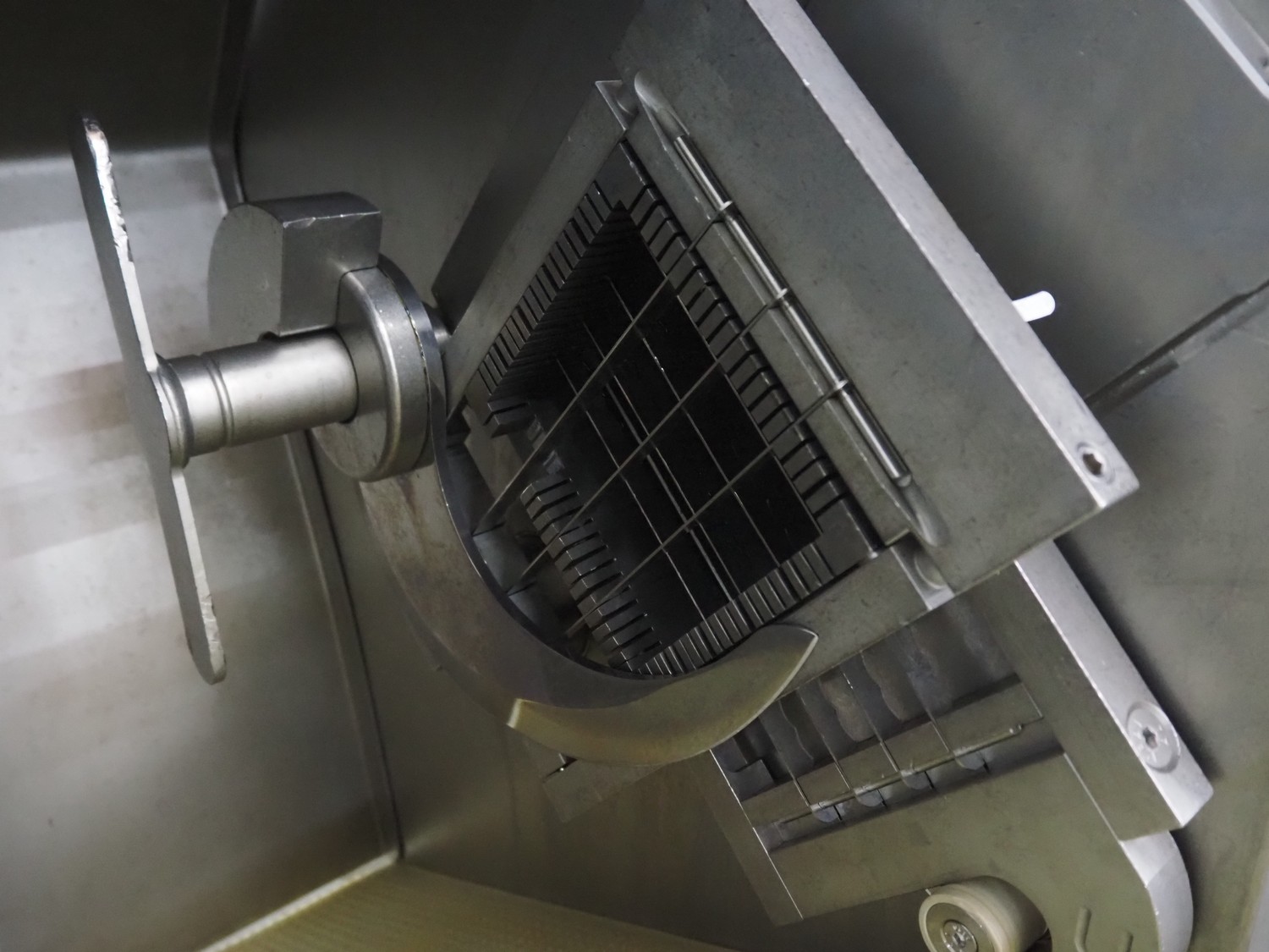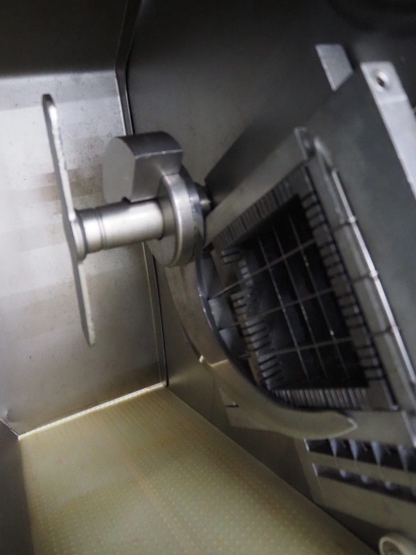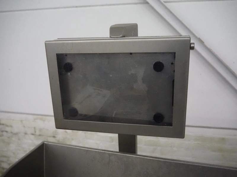 Rühle dicer, model: SR 2 BiTurbo, year of construction: 2018, dimensions chamber: 120 mm x 120 mm x 450 mm, plastic outfeed belt, belt width: 260 mm, total dimensions: 1600 mm x 1400 mm x 1500 mm. Including Doogee tablet.