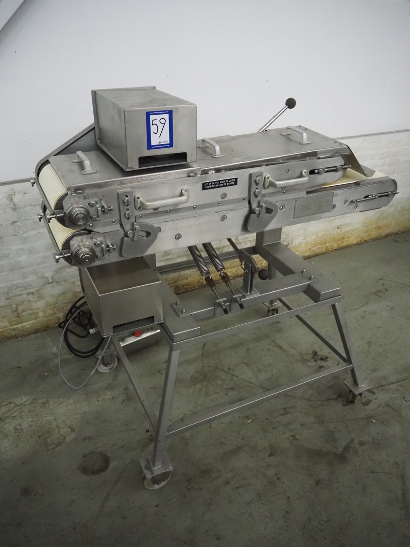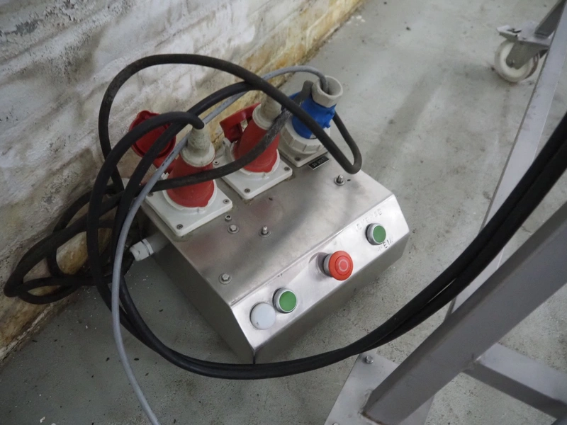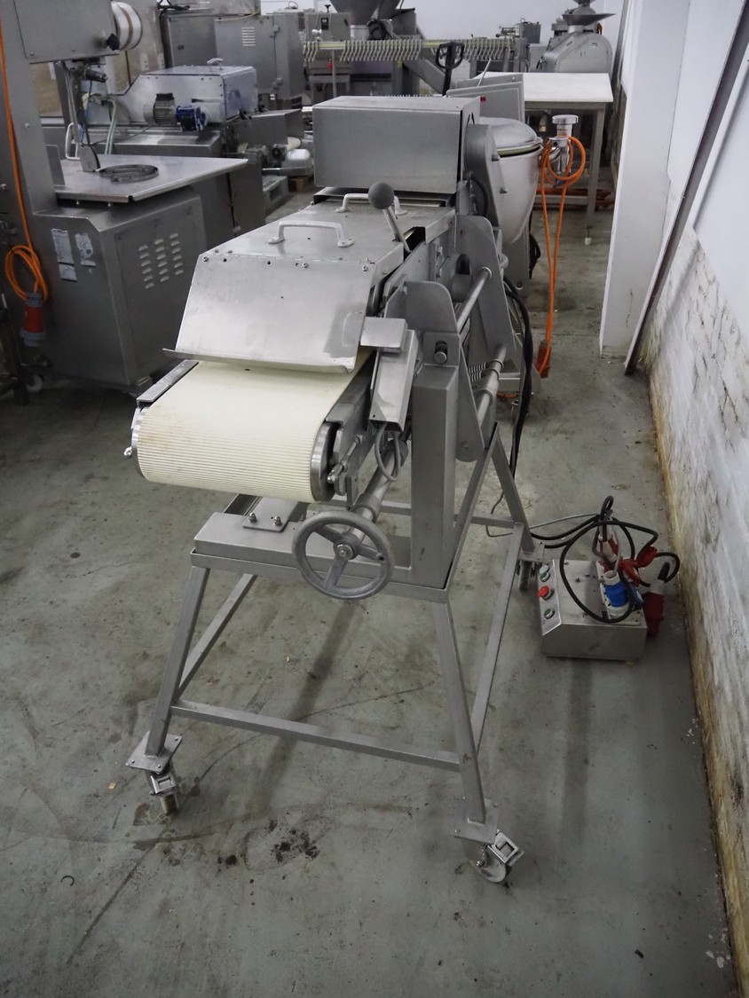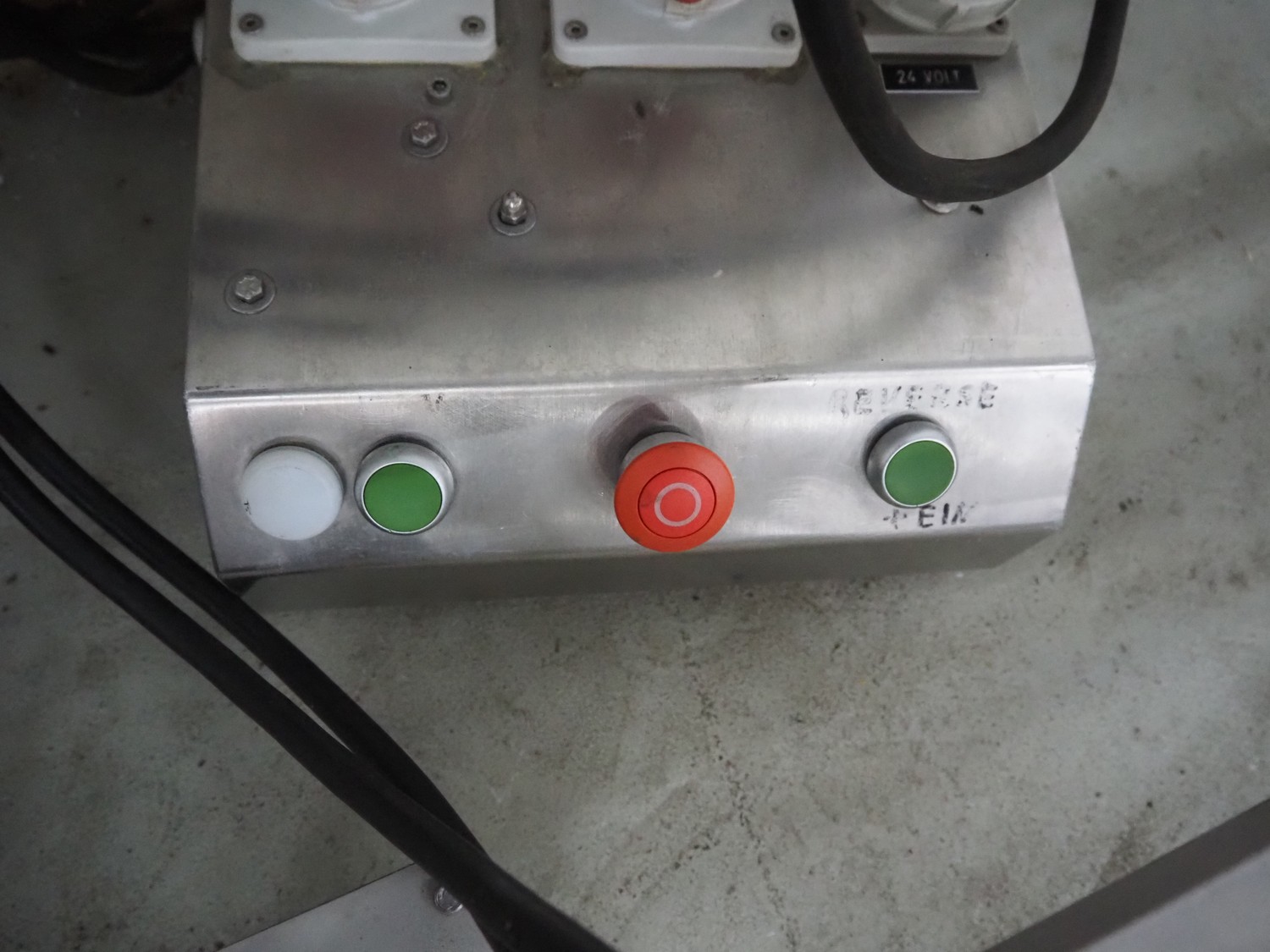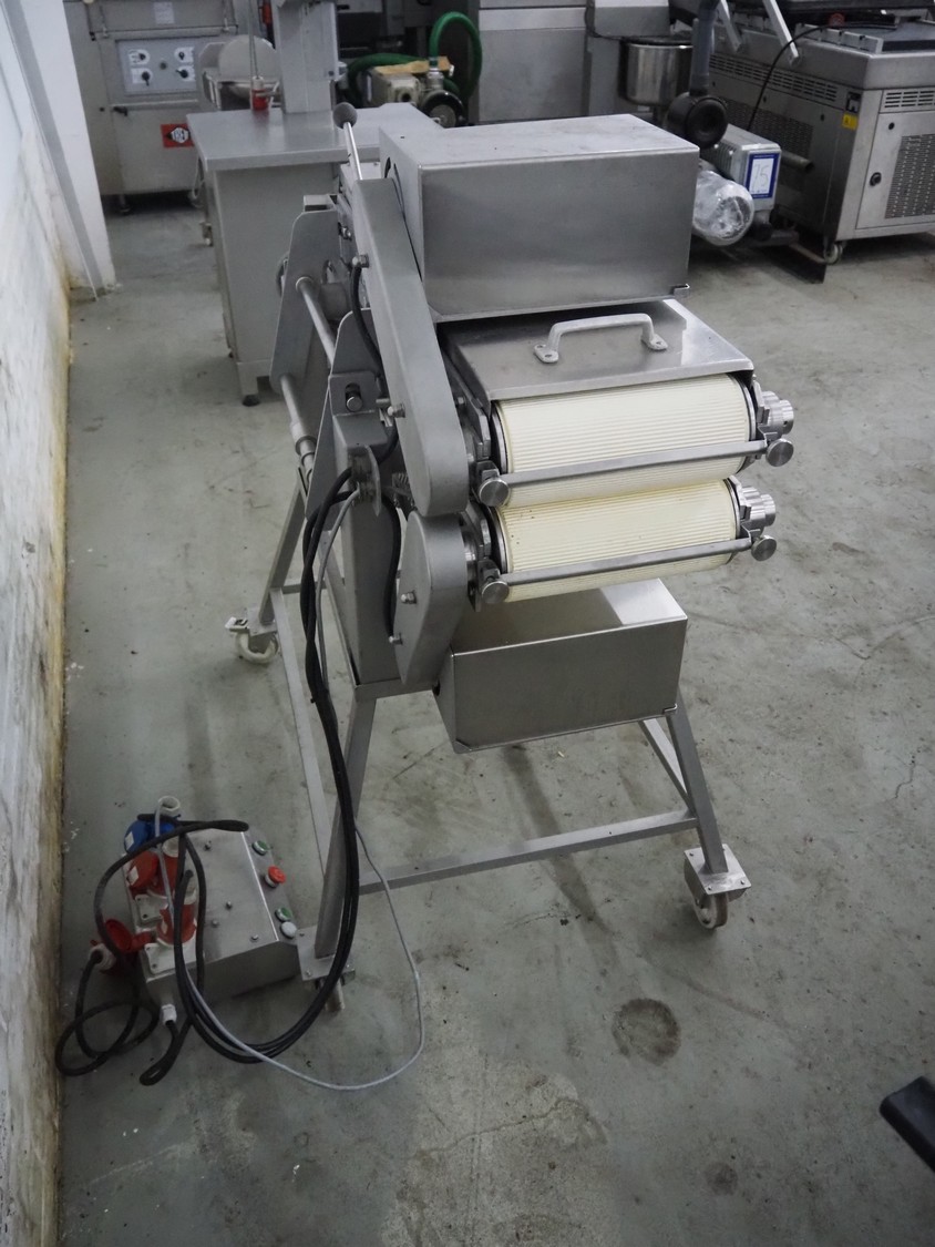 Selo Group mobile flattener, type: SP-250, number: SL250010, year of construction: 2000, 400 V, 3 Ph, 50 Hz, 1.4 A, 0.3 kW, coat belt, belt width: 250 mm, total dimensions: 1400 mm x 800 mm x 1400 mm.