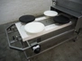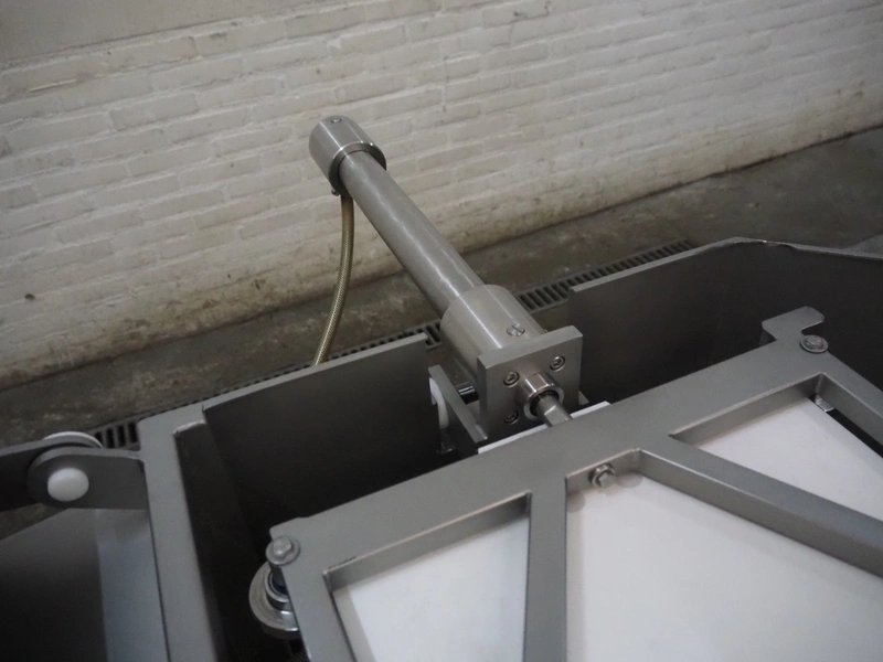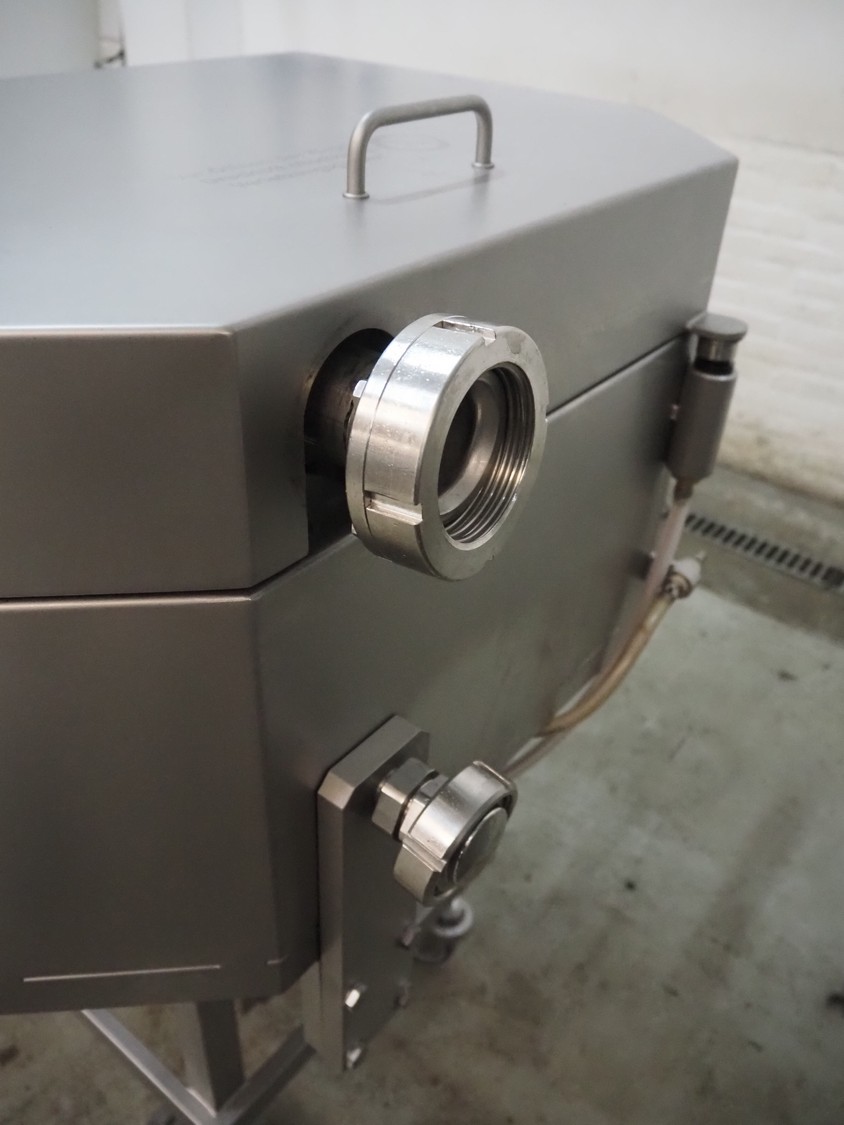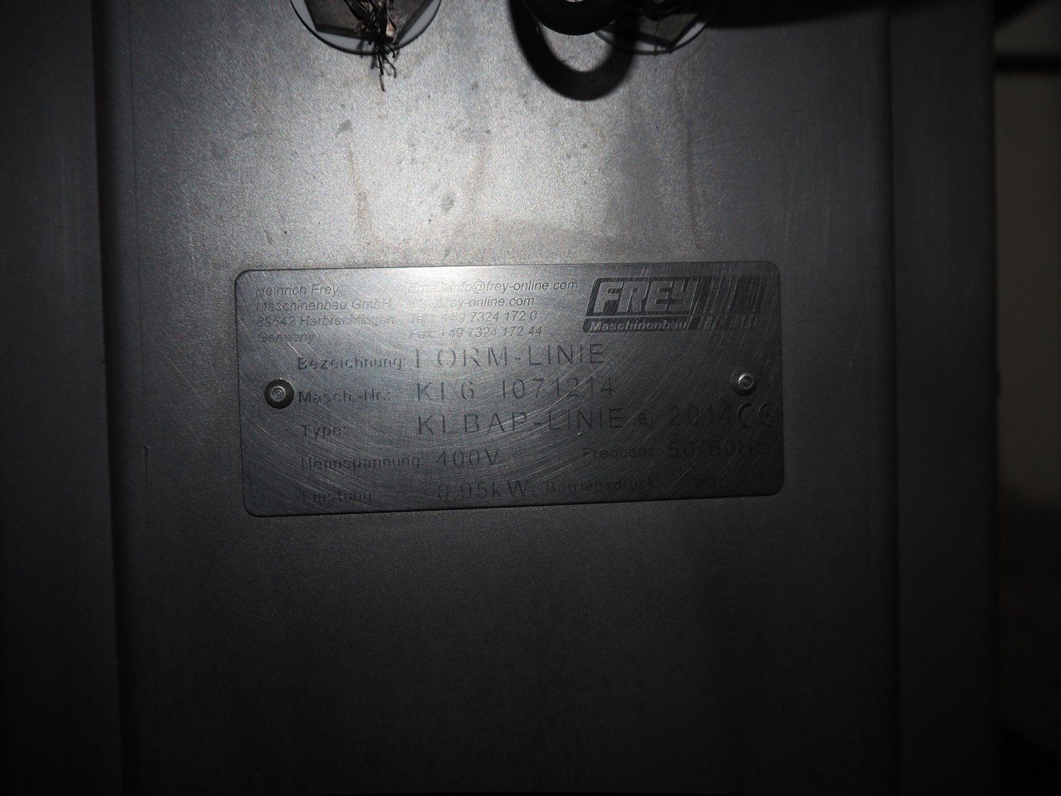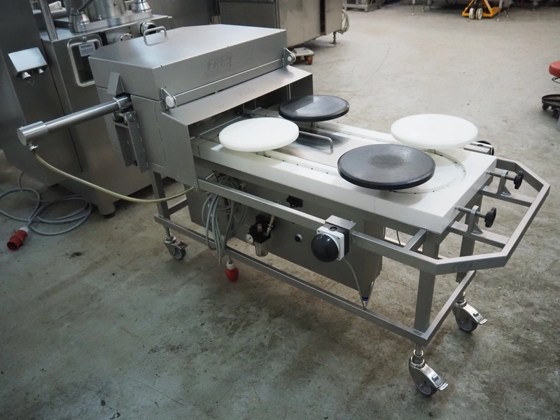 Frey Maschinenbau GmbH mobile kebab filling machine, type: Kebap-line, model: KL6, serial number: KL6 1071214, year of construction: 2014, 400 V, 50/60 Hz, 0.95 kW, 6 stations, station diameter: Ø 300 mm, total dimensions: 2000 mm x 950 mm x 1180 mm.