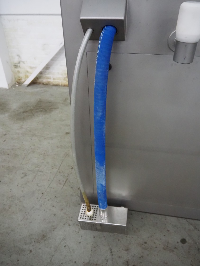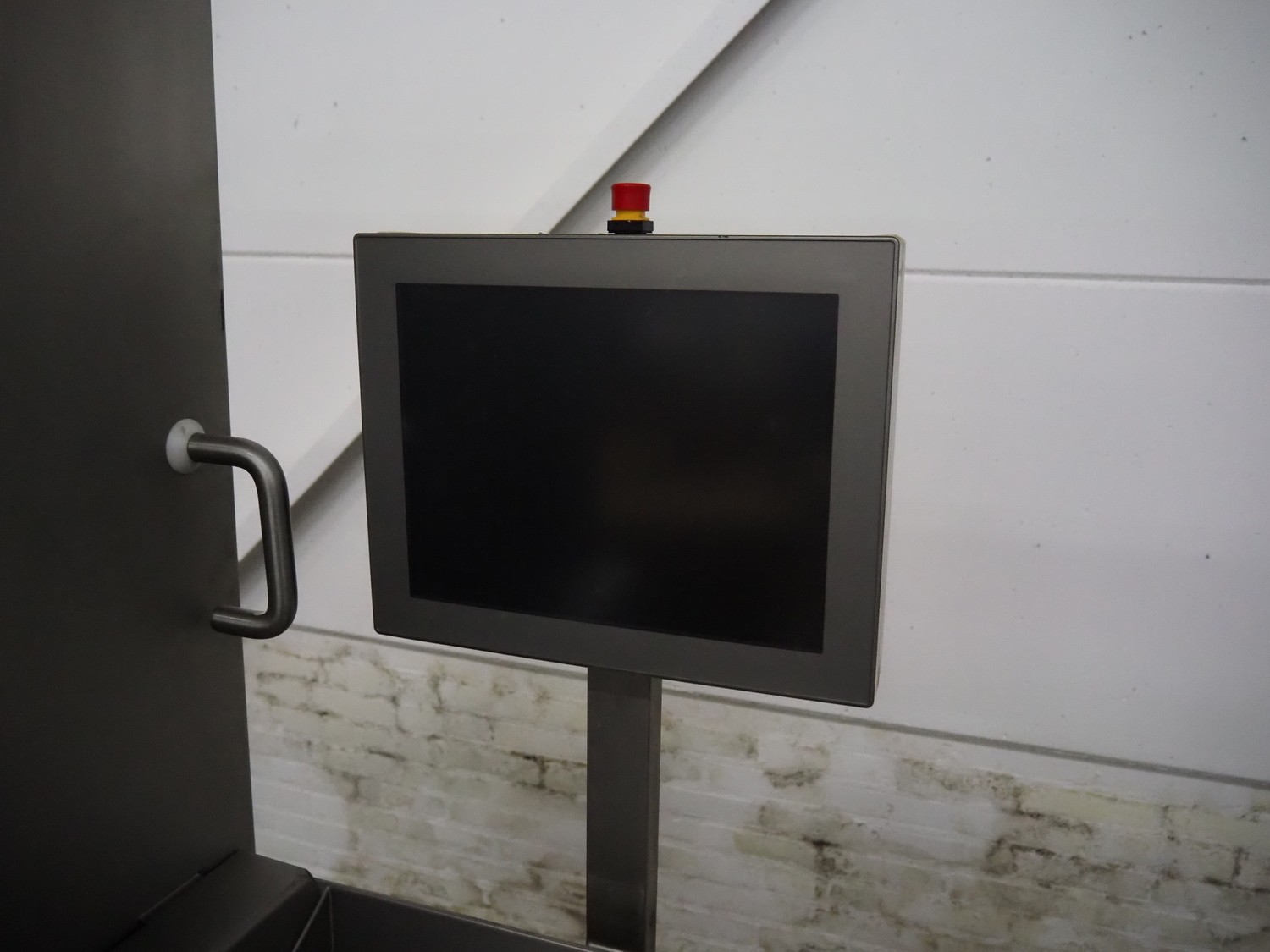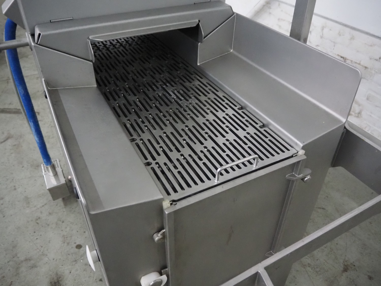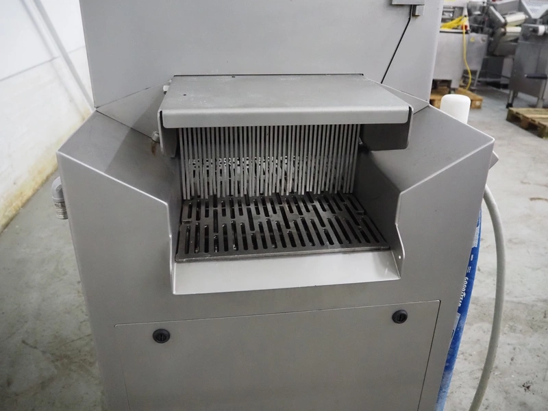 Rühle injector with lifter for E2 crates, type: IR 56, number: 0586, year of construction: 2014, 400 V, 3 Ph, 50 Hz, 7.5 kW, 16 A, 56 needles, s/s walking beam, width: 350 mm, clearance: 350 mm x 170 mm, total dimensions: 1800 mm x 1000 mm x 2050 mm.