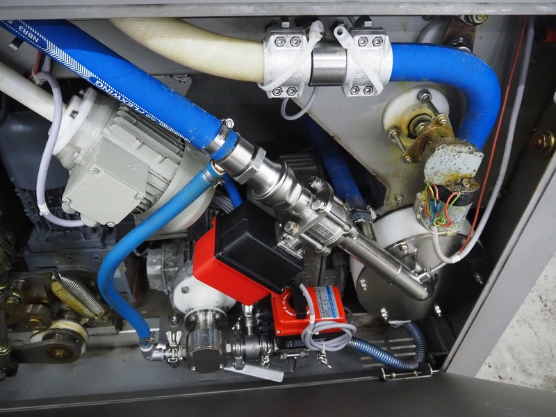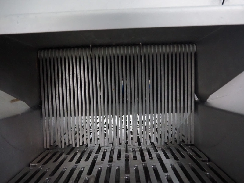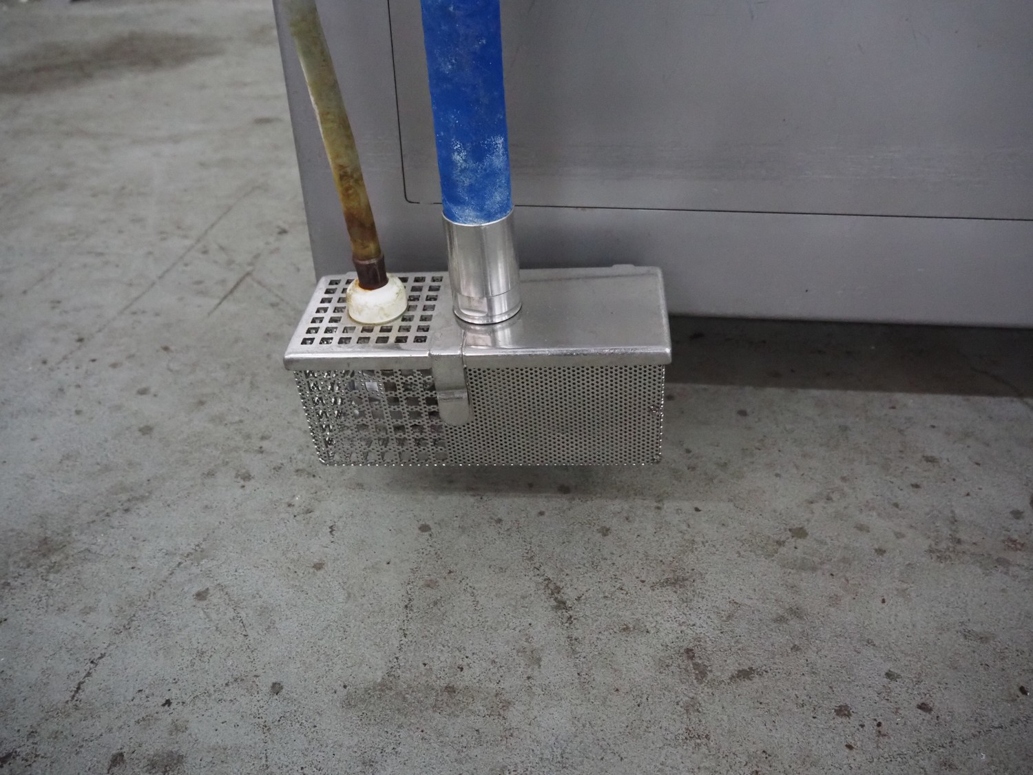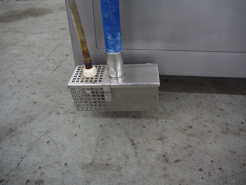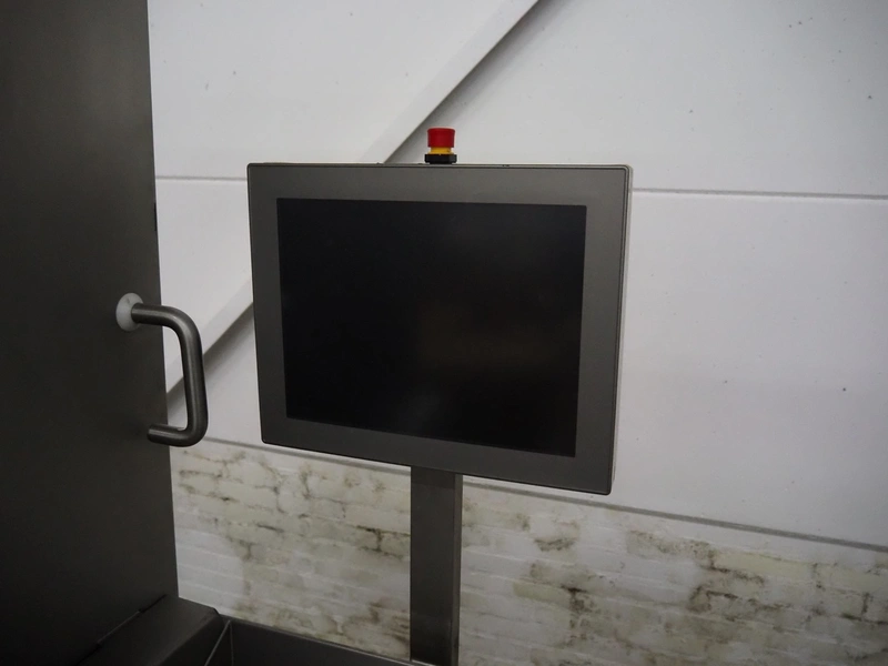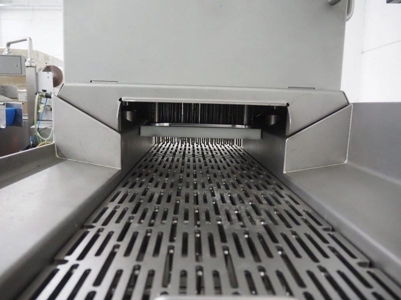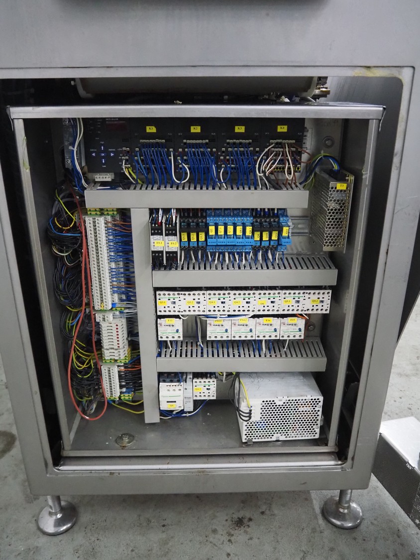 Rühle injector with lifter for E2 crates, type: IR 56, number: 0586, year of construction: 2014, 400 V, 3 Ph, 50 Hz, 7.5 kW, 16 A, 56 needles, s/s walking beam, width: 350 mm, clearance: 350 mm x 170 mm, total dimensions: 1800 mm x 1000 mm x 2050 mm.
