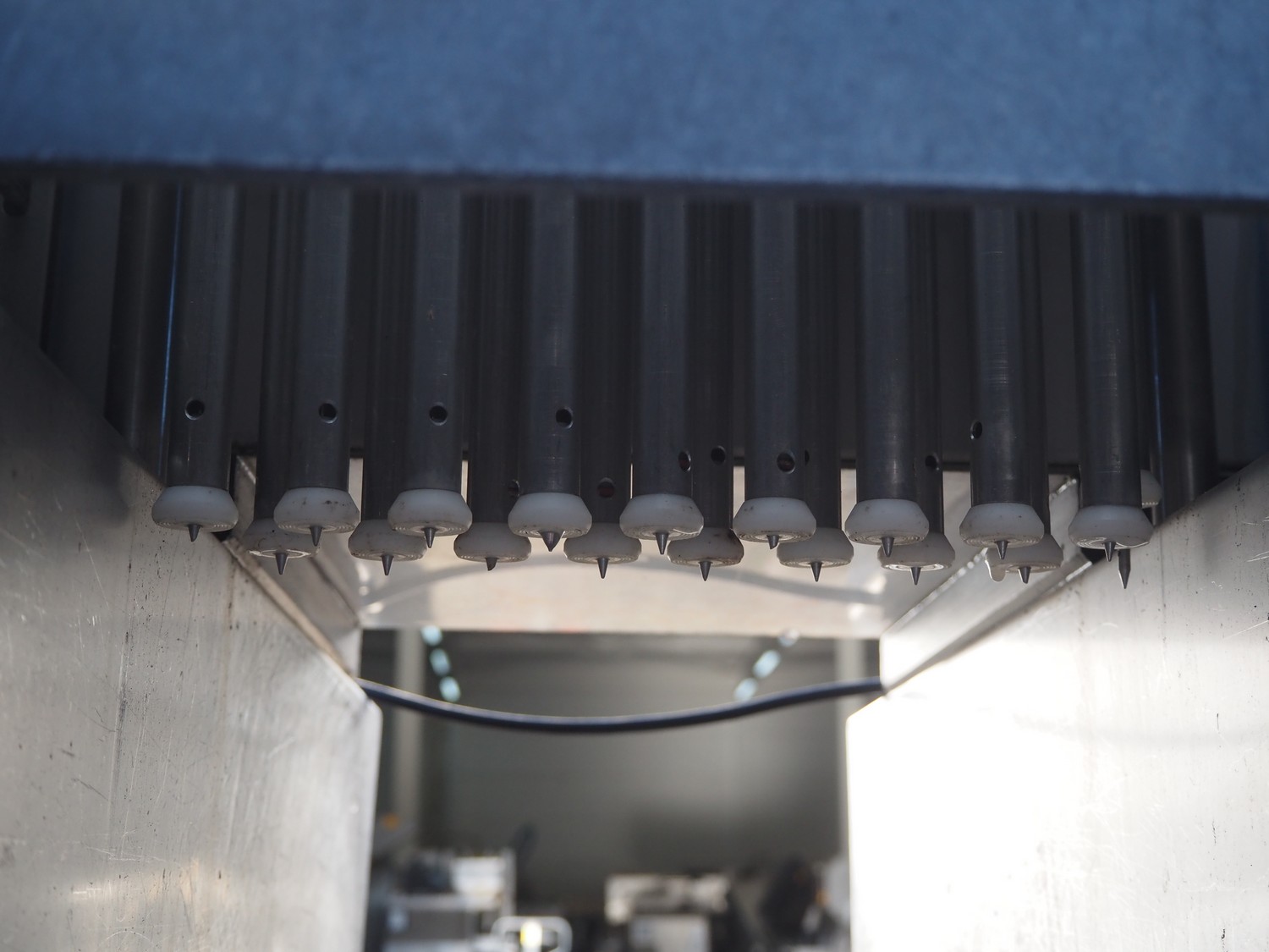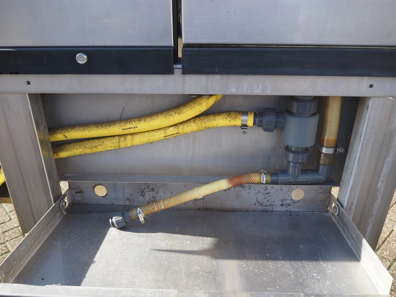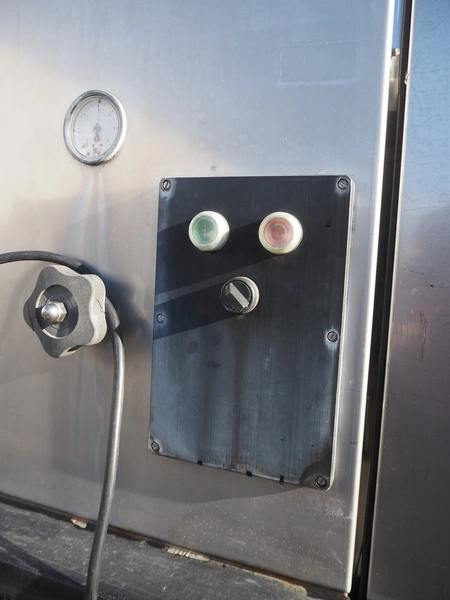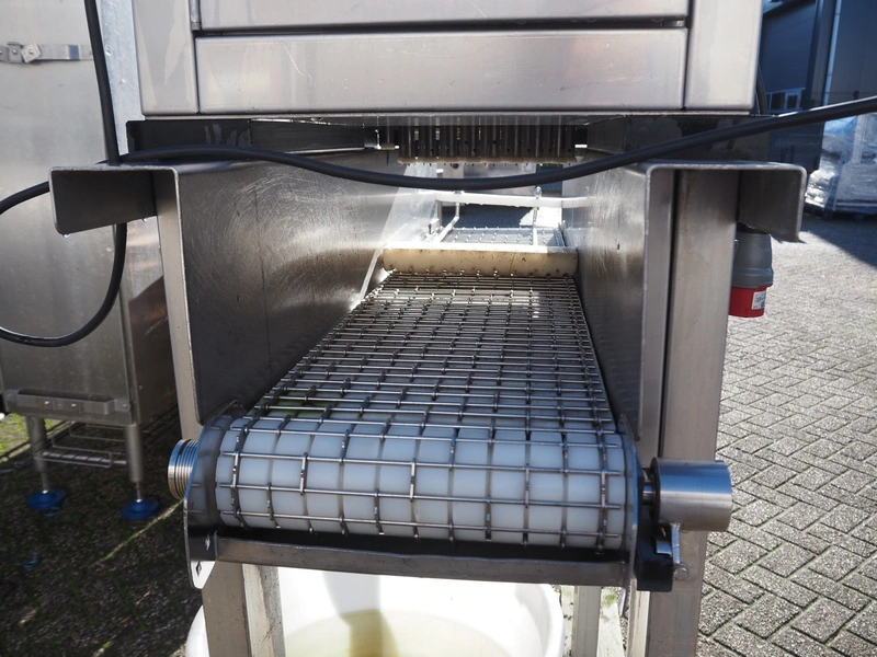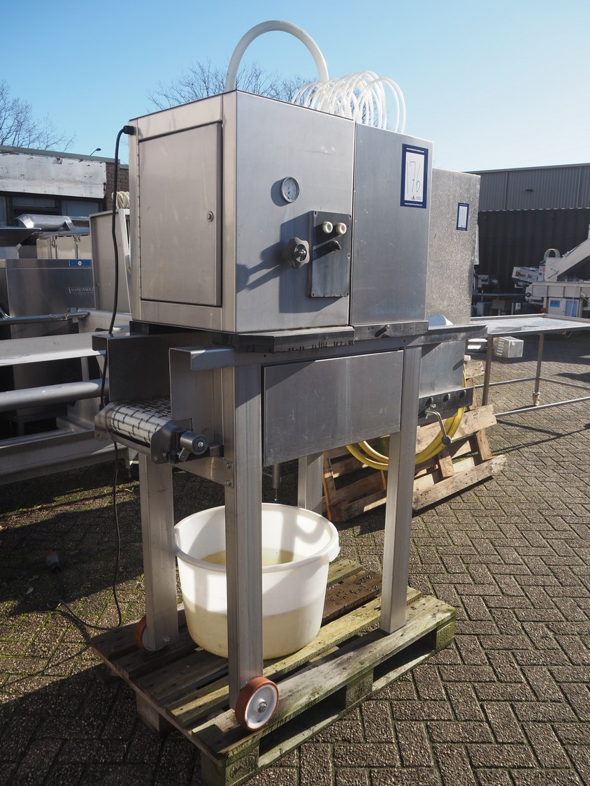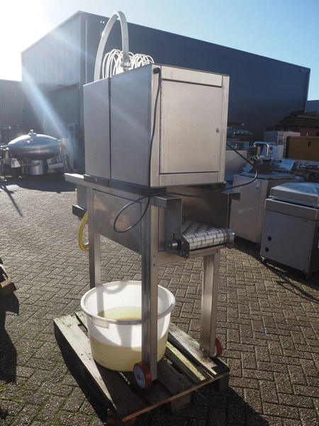Pökomat mobile injector, 18 needles, s/s belt, belt width: 300 mm, total dimensions: 1550 mm x 800 mm x 2000 mm.