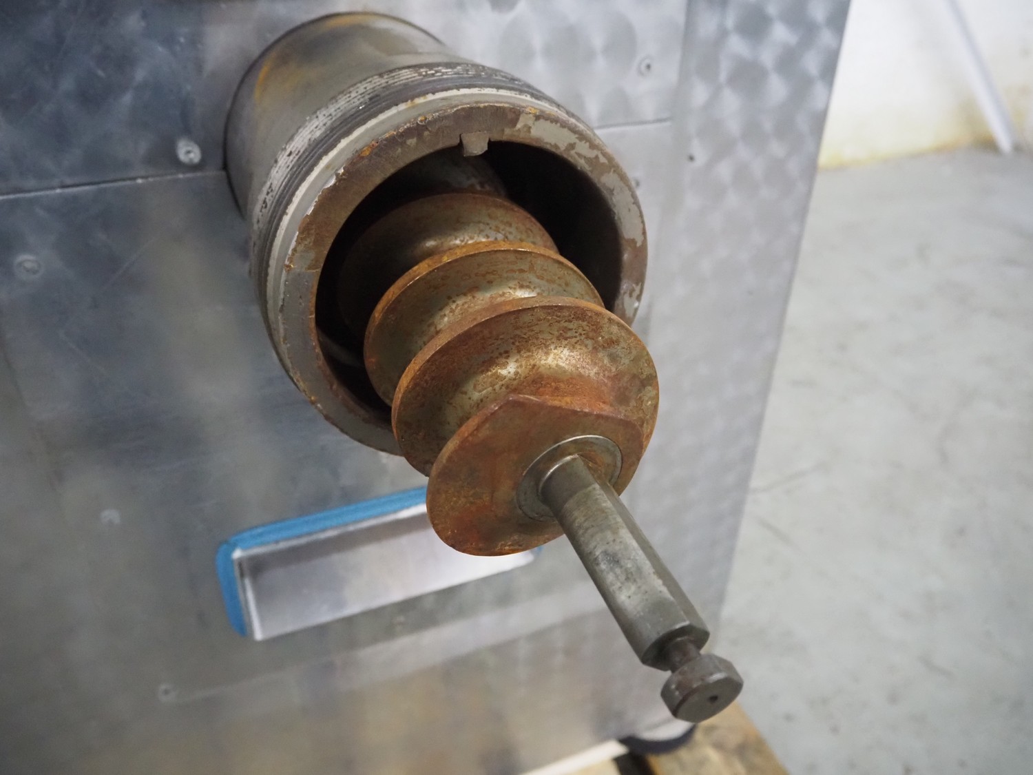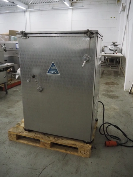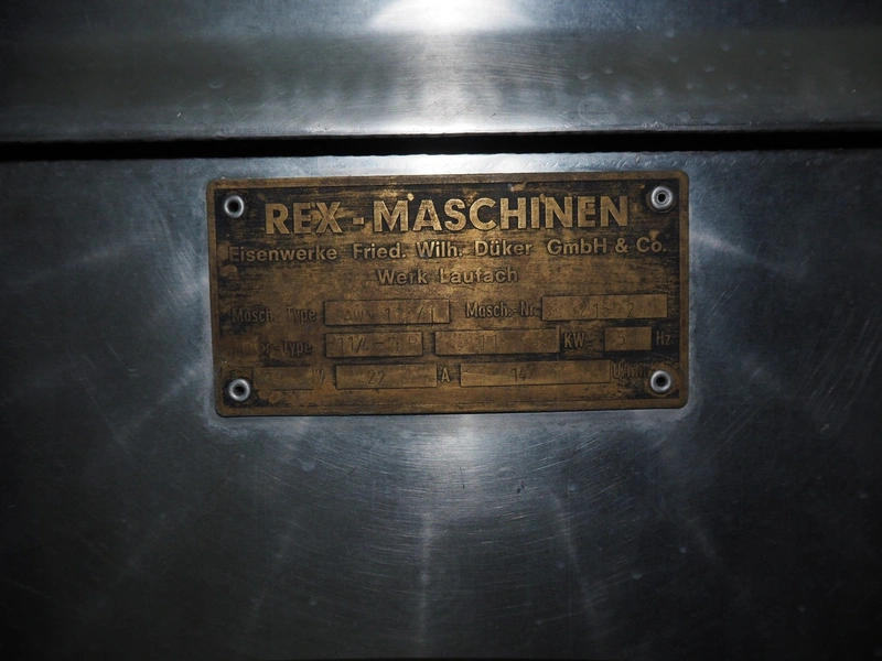 REX grinder, type: AWN 130/1, number: 21532380, 380 V, 50 Hz, 22 A, 11 kW, plate diameter: 130 mm, total dimensions: 1200 mm x 750 mm x 1700 mm.