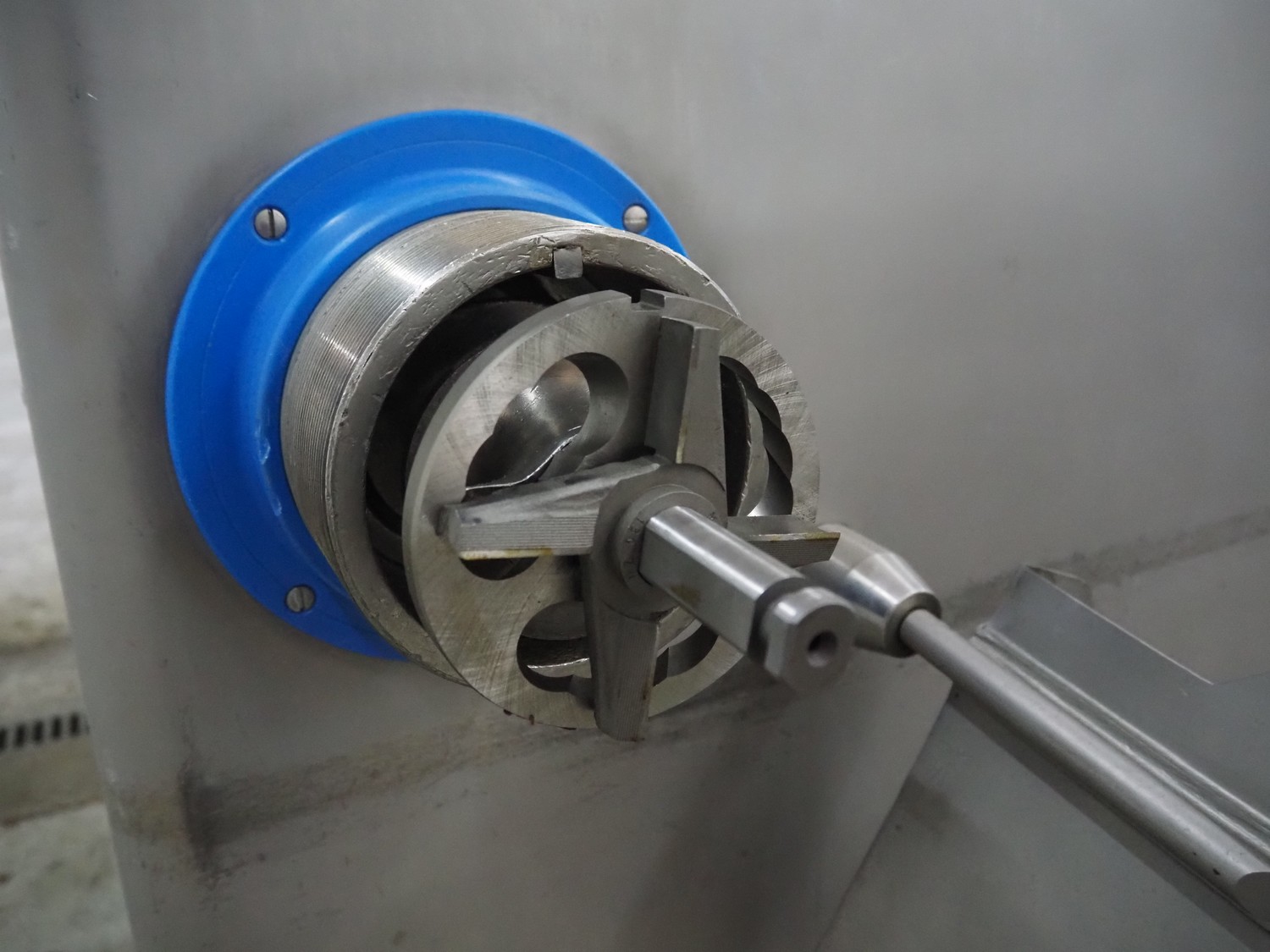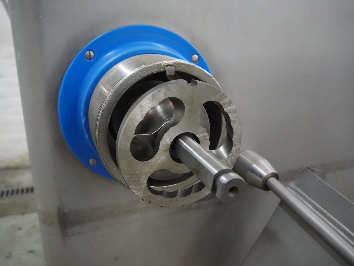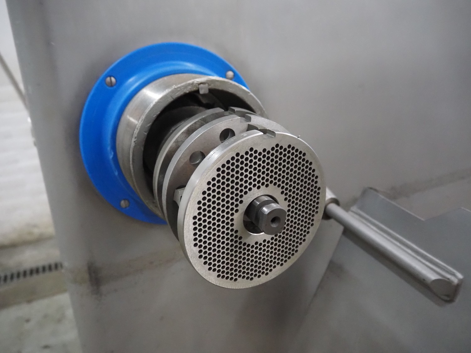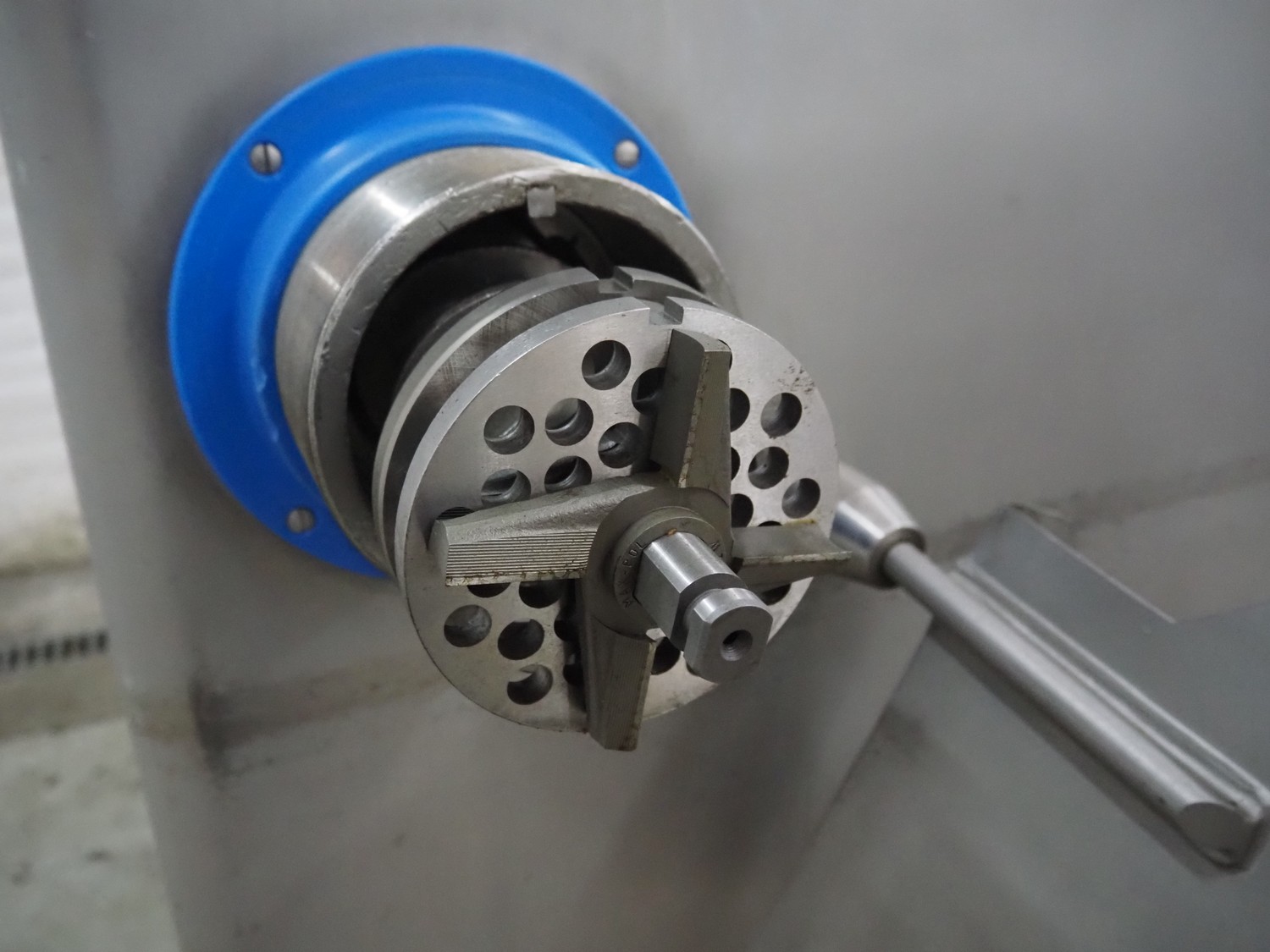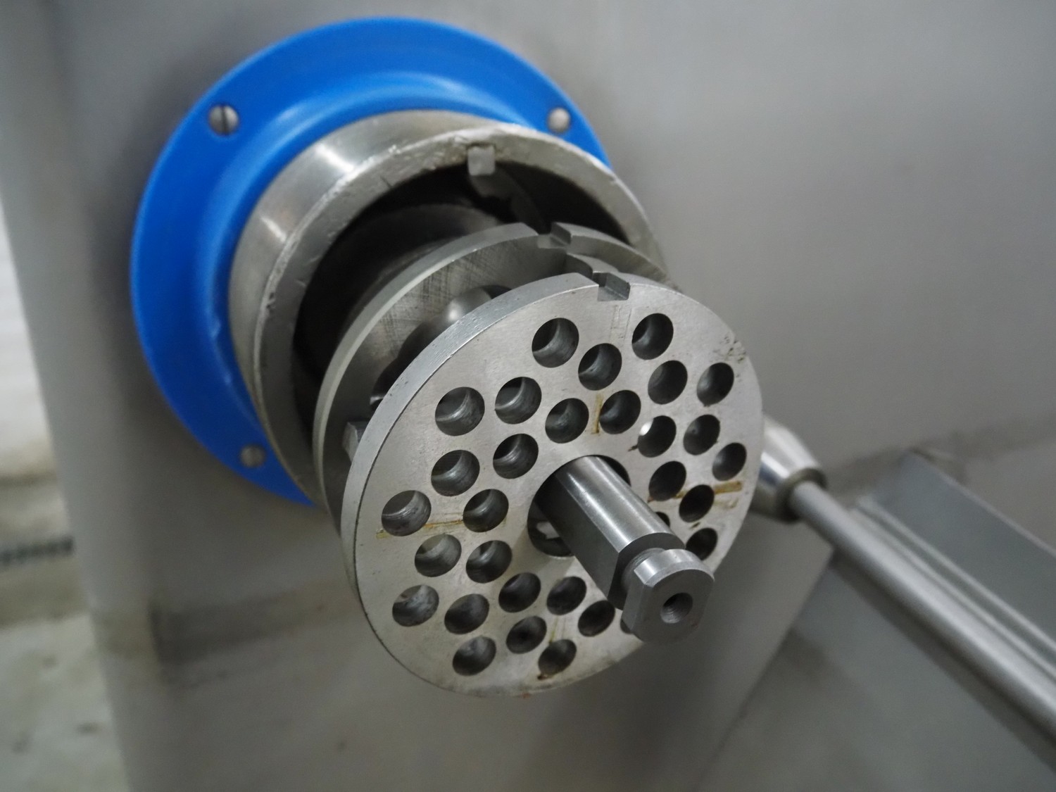 TEC MAQ grinder, model: Alimat 130, number: 53006031, year of construction: 11/06, 380 V, 38 A, 11 kW, plate diameter: 130 mm, total dimensions: 1100 mm x 950 mm x 1500 mm.