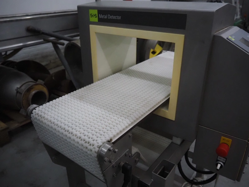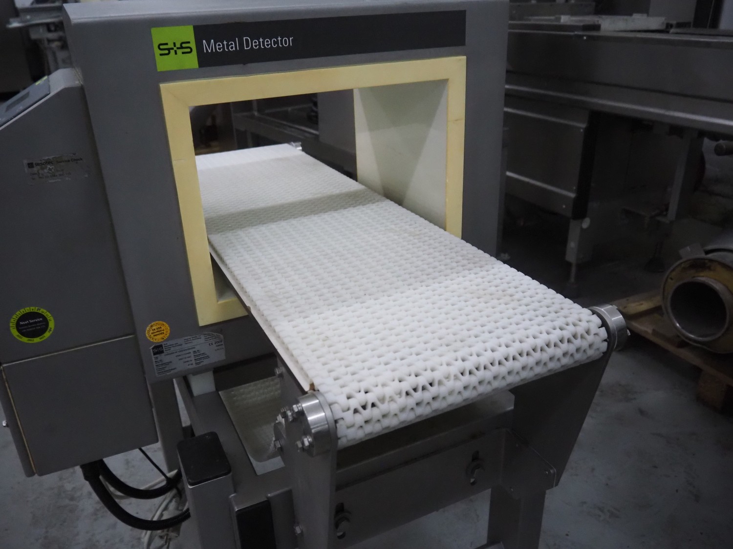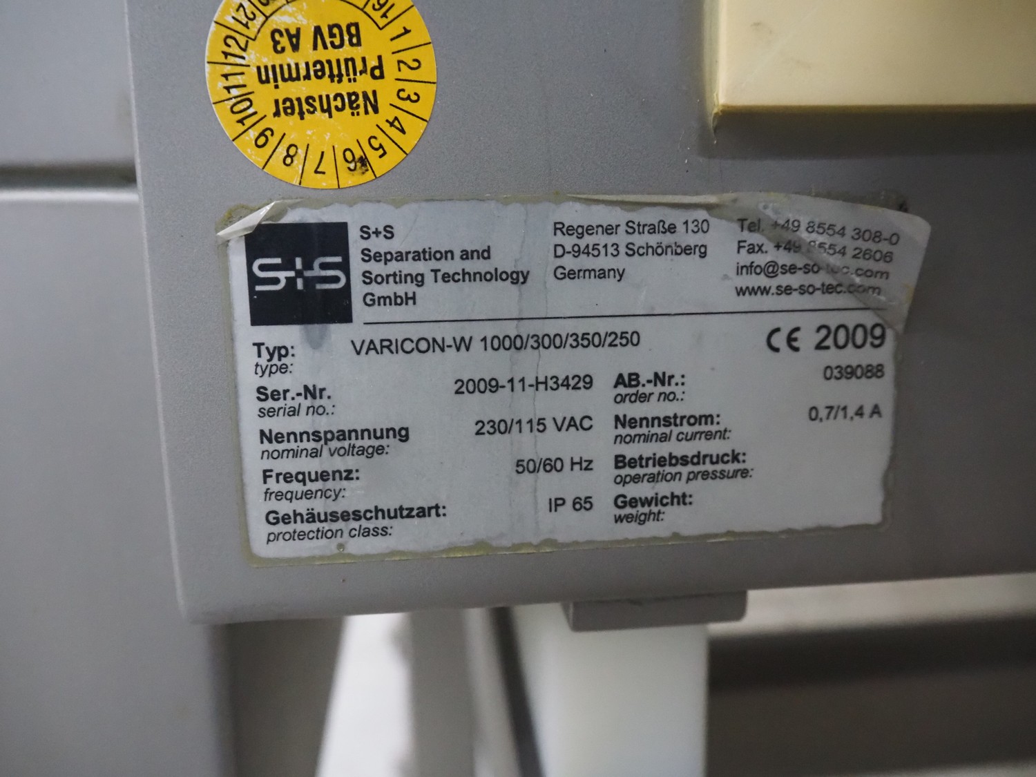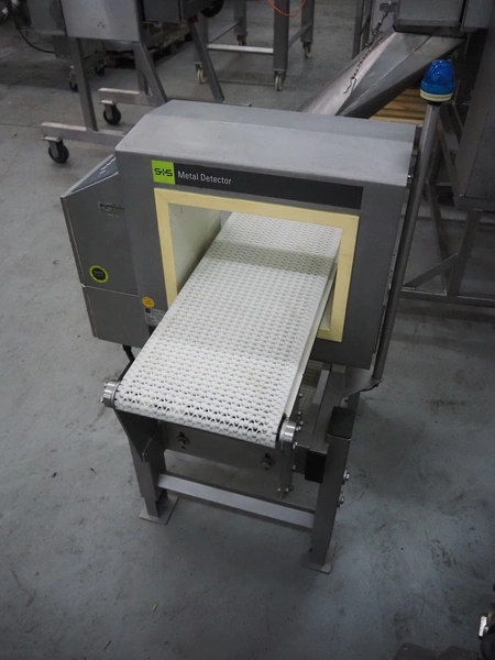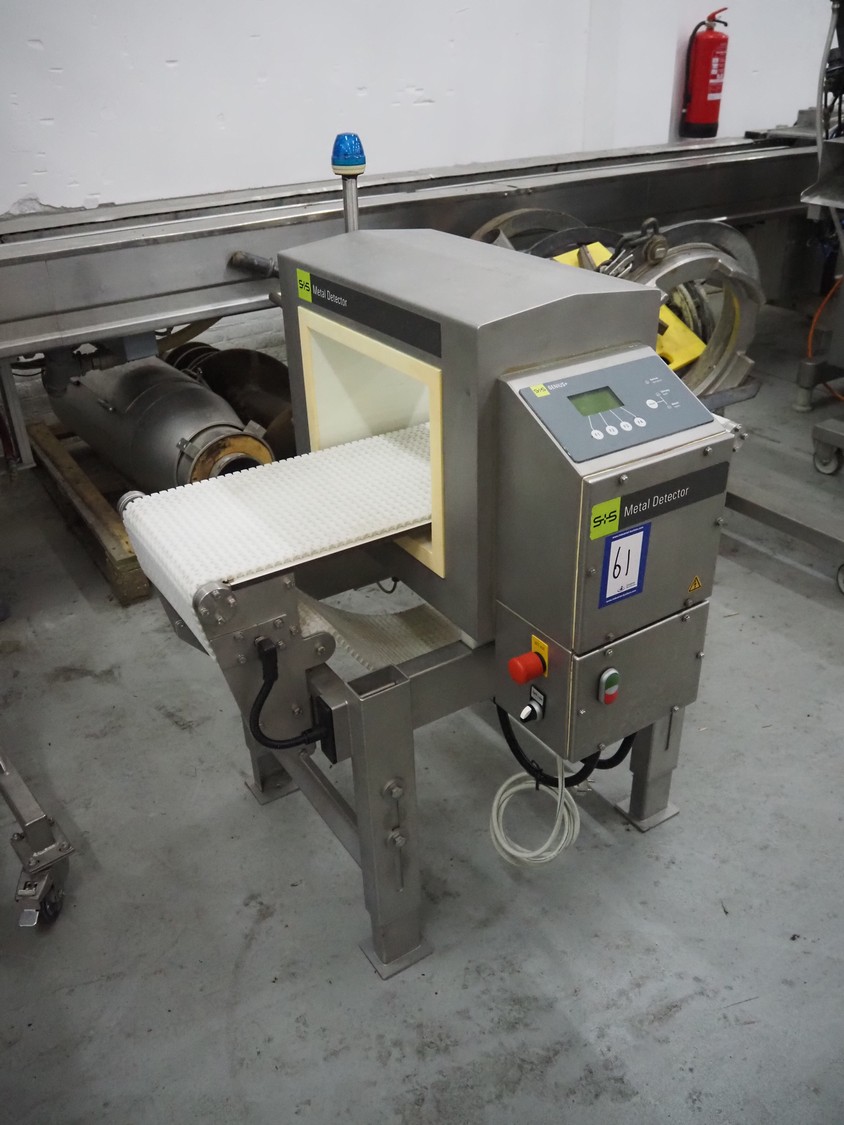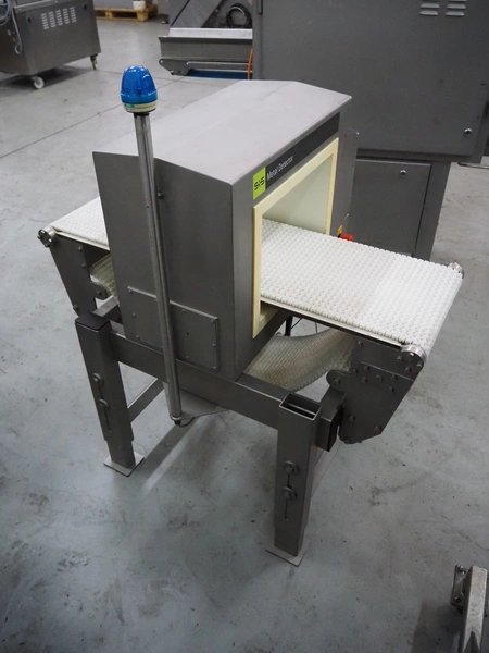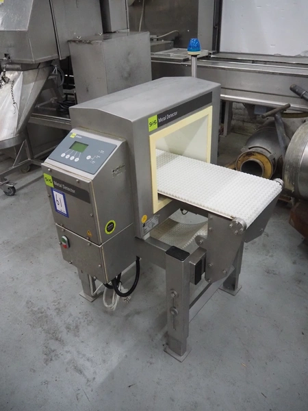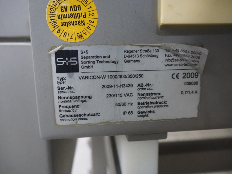 S+S Separation and Sorting Technology GmbH metal detector, type: VARICON-W 1000/300/350/250, serial number: 2009-11-H3429, year of construction: 2009, 230/115 V, 50/60 Hz, 0.7/1.4 A, plastic mesh belt, belt width: 300 mm, clearance: 350 mm x 200 mm, total dimensions: 1000 mm x 740 mm x 1210 mm.