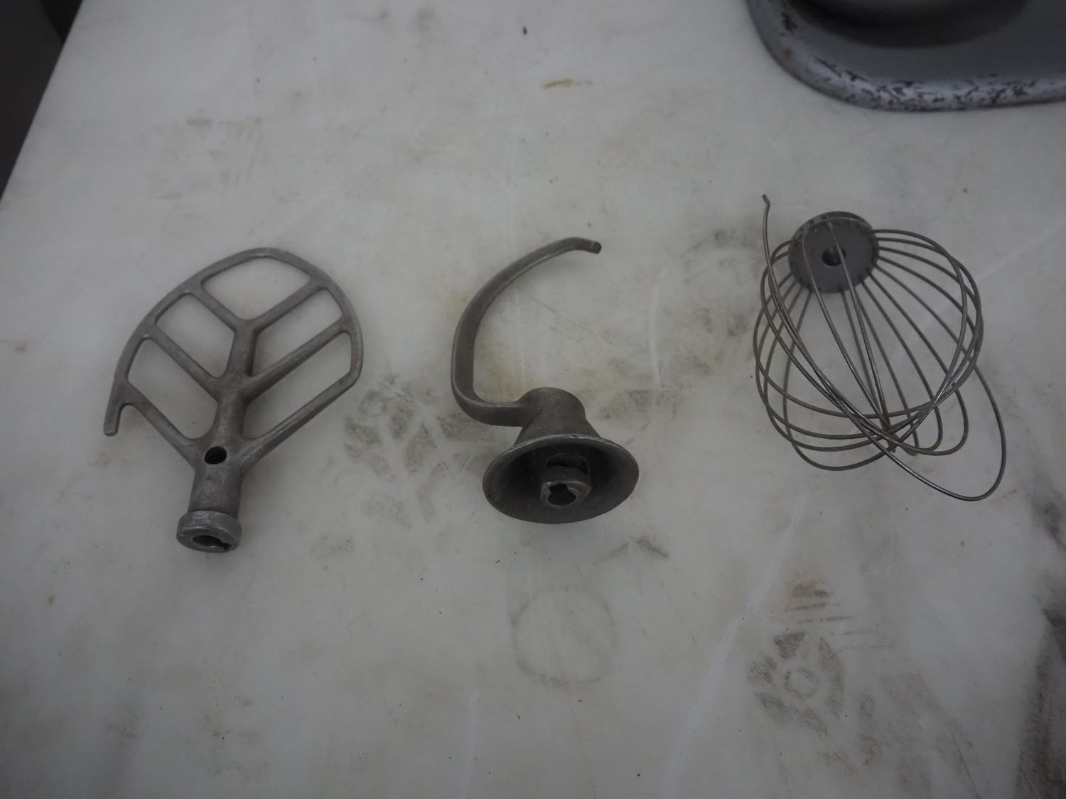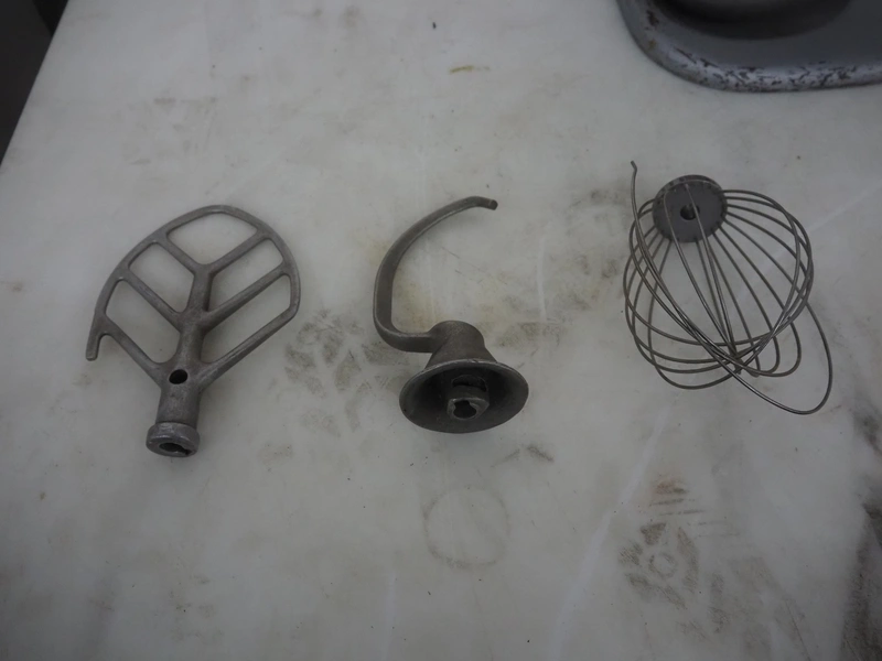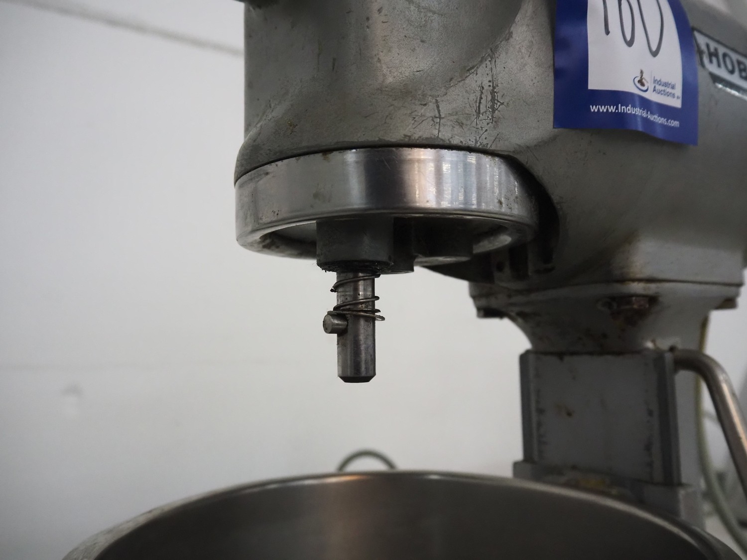 Hobart mixer, model: N-50G, serial number: 14048579, 220 V, 1 Ph, 50 hz, 1.67 A, s/s bowl, dimensions bowl: Ø 200 mm x 170 mm, total dimensions: 350 mm x 250 mm x 430 mm. Including flat beater, hook and whisk.