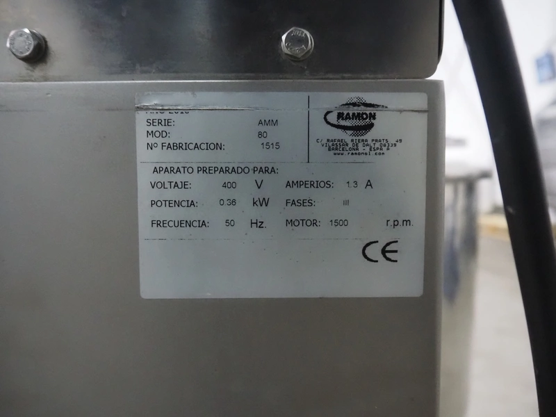 Ramon mobile mixer, serie: AMM, model: 80, number: 1515, 400 V, 50 Hz, 0.36 kW, 1.3 A, 1500 rpm, dimensions: 850 mm x 600 mm x 1050 mm. Plastic lid is broken.