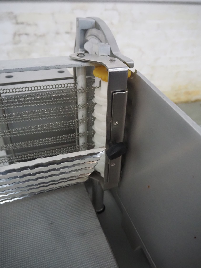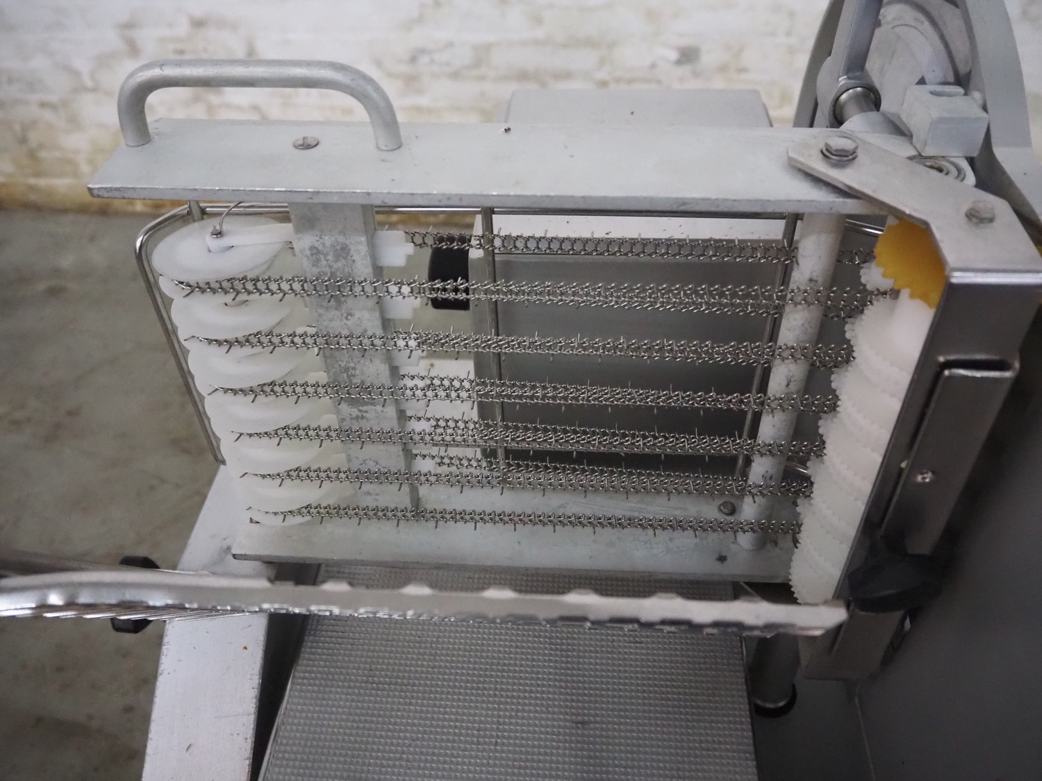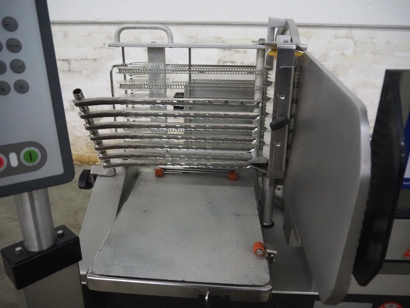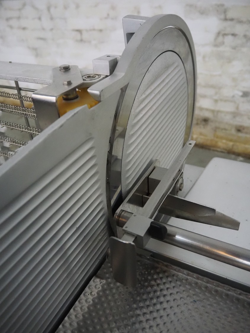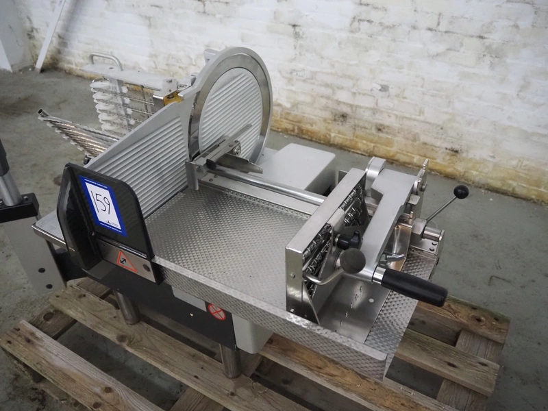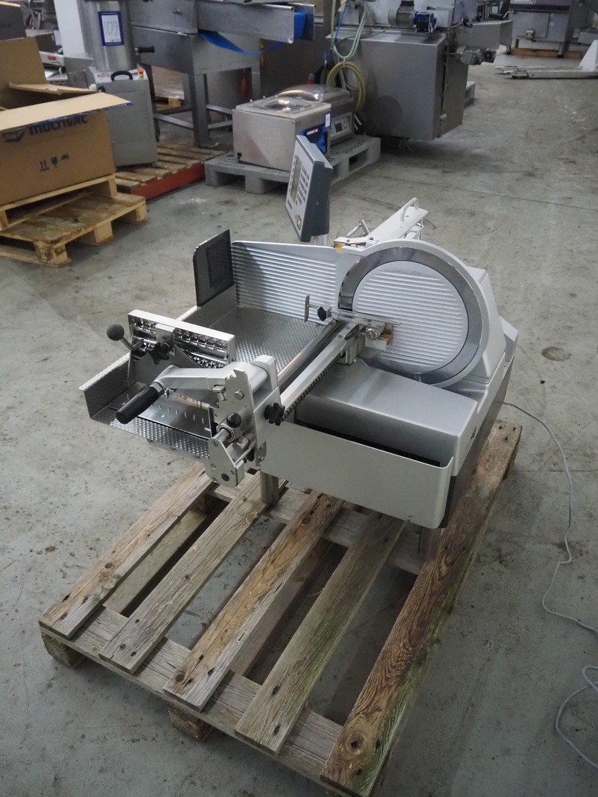 Bizerba automatic slicer, type: A 404, number: 10699653, year of construction: 2010, 230 V, 1 Ph, 50 Hz, 3.1 A, dimensions: 1160 mm x 850 mm x 760 mm.