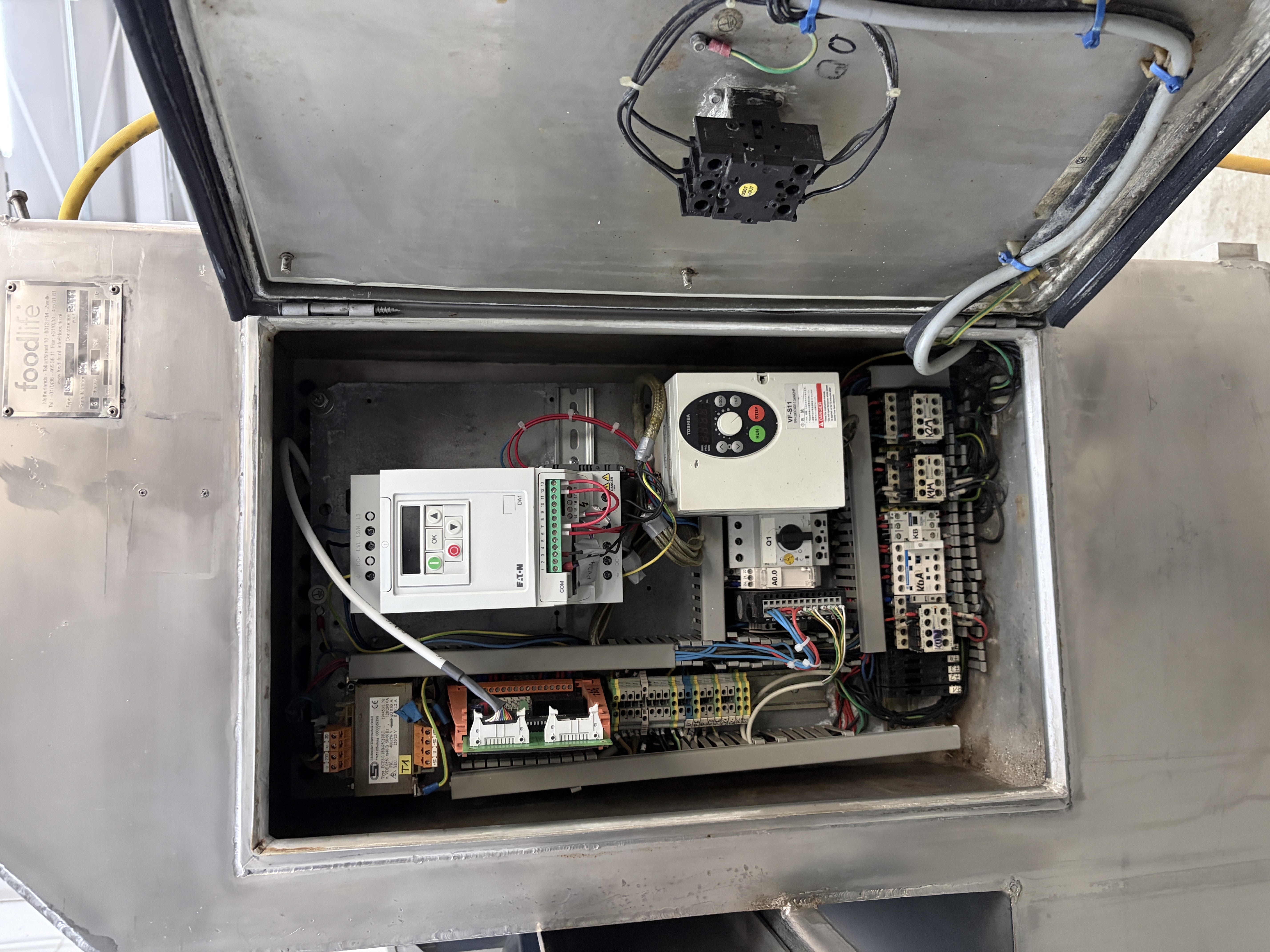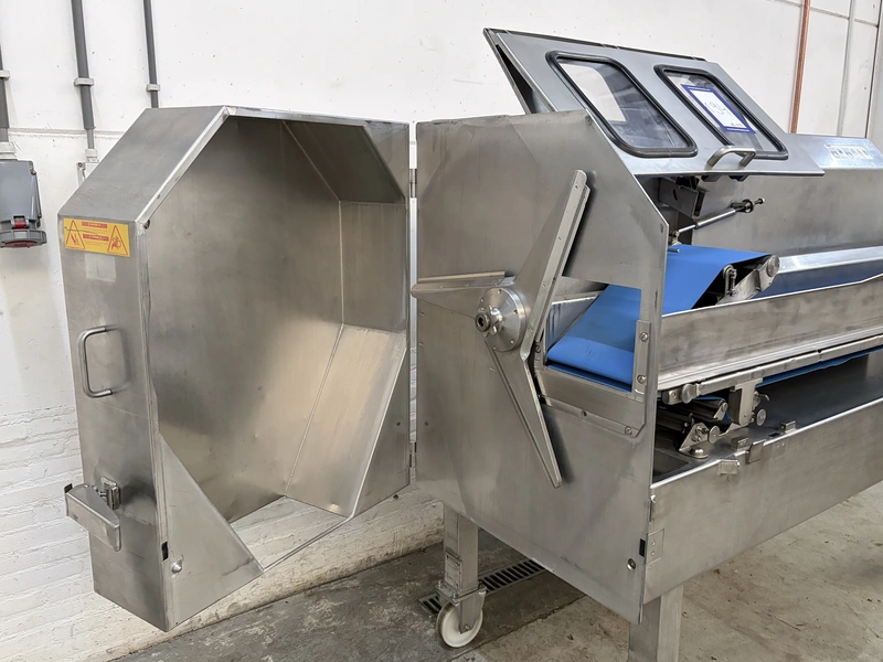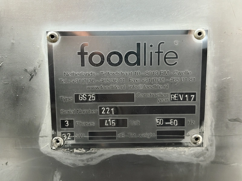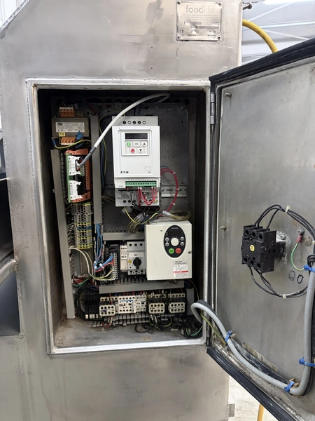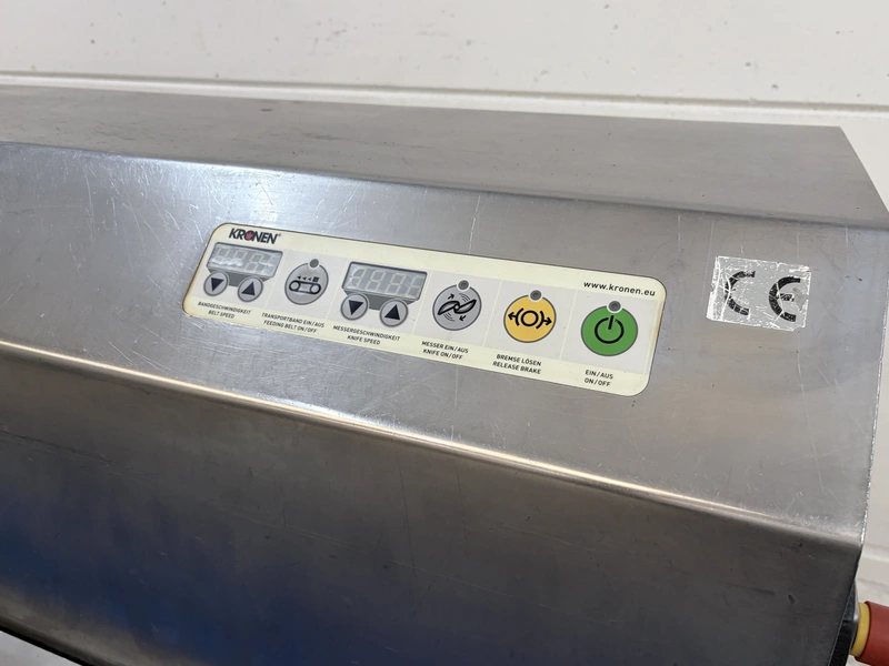 Kronen slicer, type: GS 25, serial number: 221, overhauled in 2017, 415 V, 3 Ph, 50-60 Hz, 3.2 kW, weight: 635 kg, working width: 250 mm, cutting range: 1-50 mm, total dimensions: 3100 mm x 930 mm x 1620 mm.