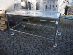 Mobile s/s table with drain, dimensions: 1900 mm x 890 mm x 1000 mm.€ 250,000 bids04/03/2026 15:30