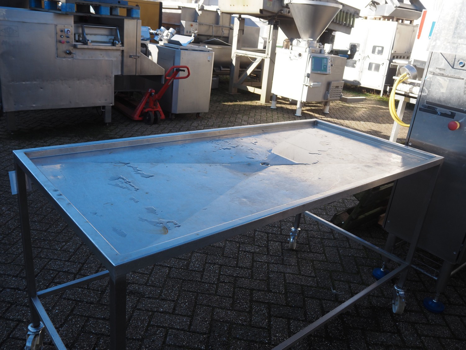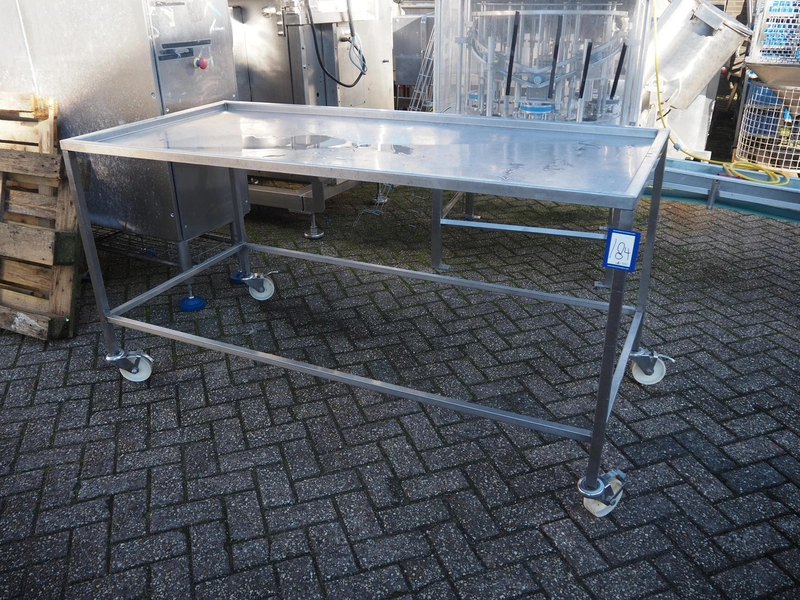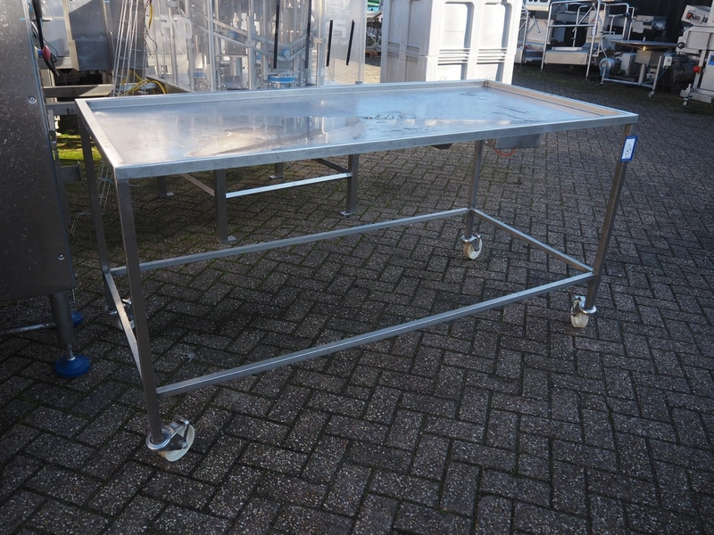 Mobile s/s table with drain, dimensions: 1900 mm x 890 mm x 1000 mm.