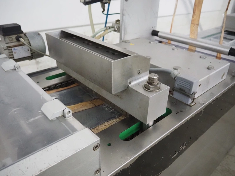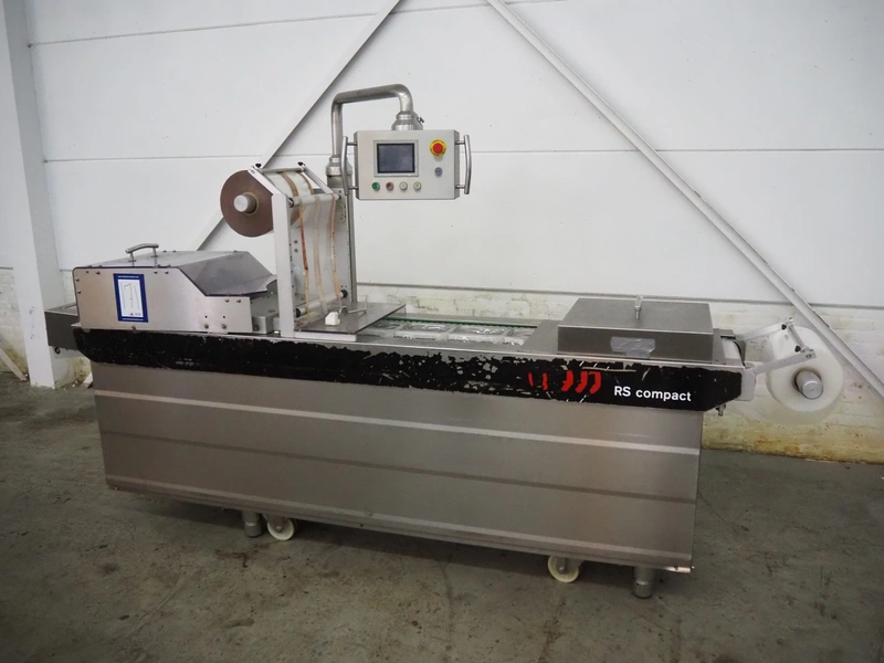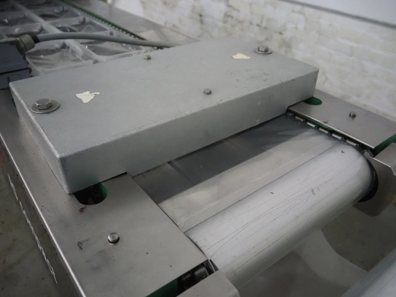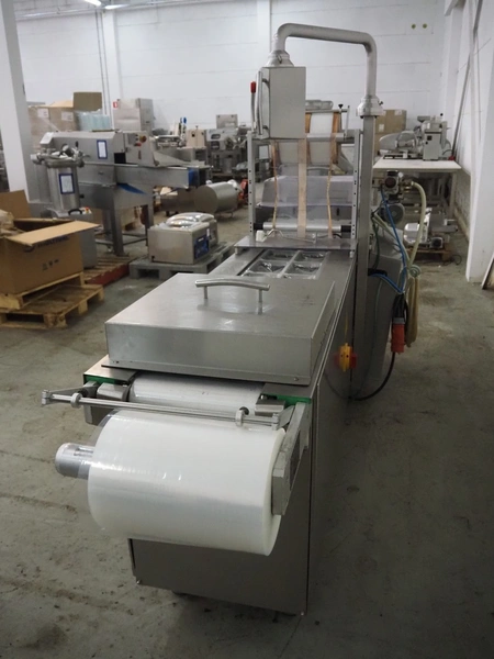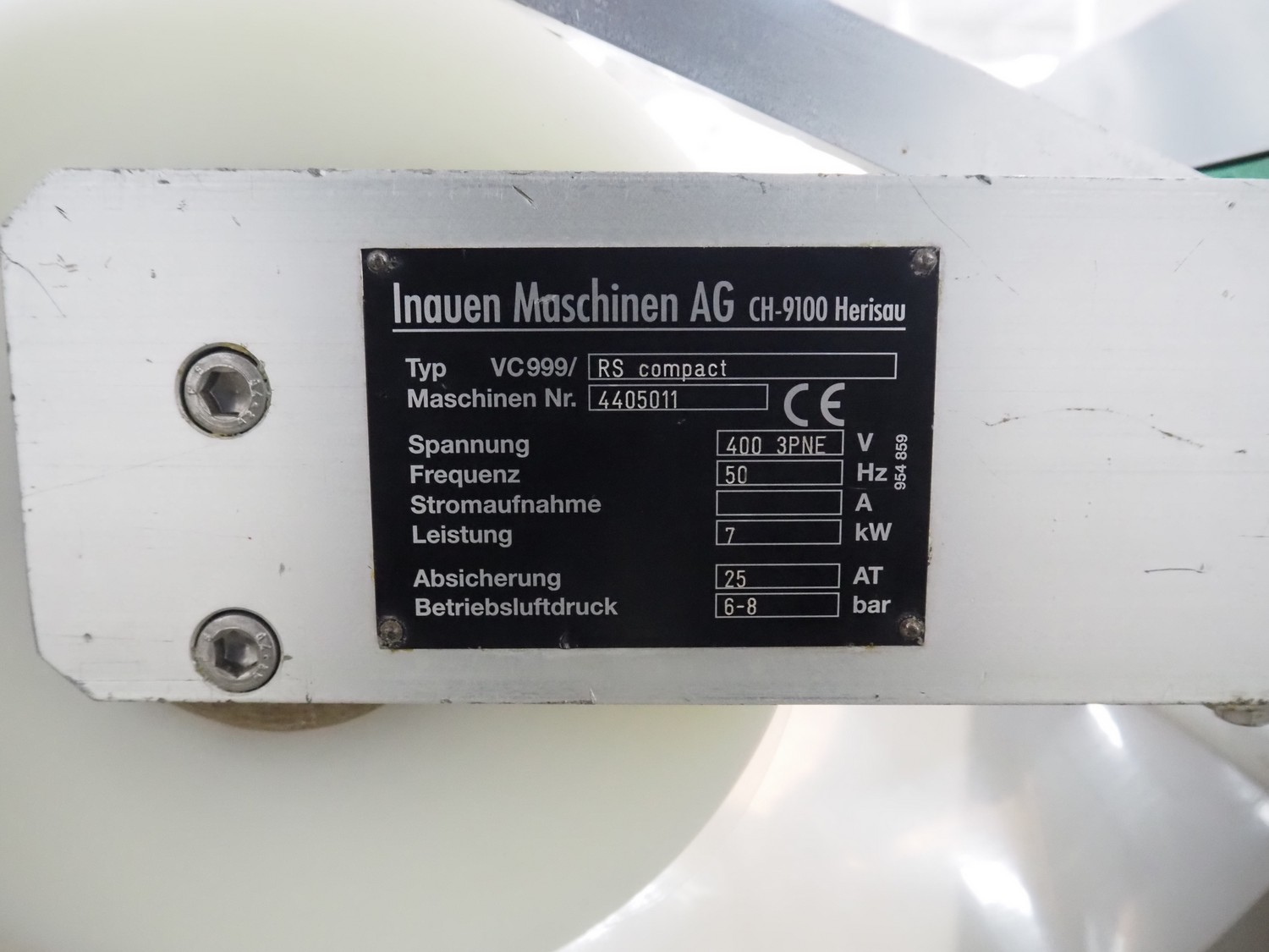 Inauen Maschinen AG mobile thermoformer, type: RS compact, machine number: 4405011, 400 V, 3 Ph, 50 Hz, 7 kW, 6-8 bar, film width: 325 mm, dye: (2x) 215 mm x 140 mm, outfeed belt width: 260 mm, Gardner Denver vacuum pump, type: VC 100 (75), number: 2670038, year of construction: 2006, capacity: 100 m³ per hour, total dimensions: 3300 mm x 950 mm x 1850 mm.