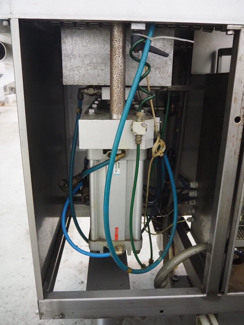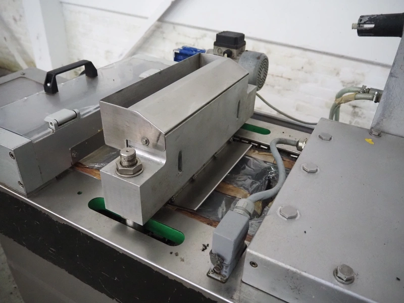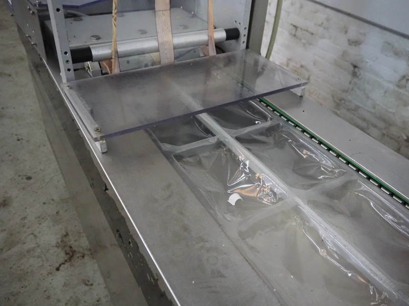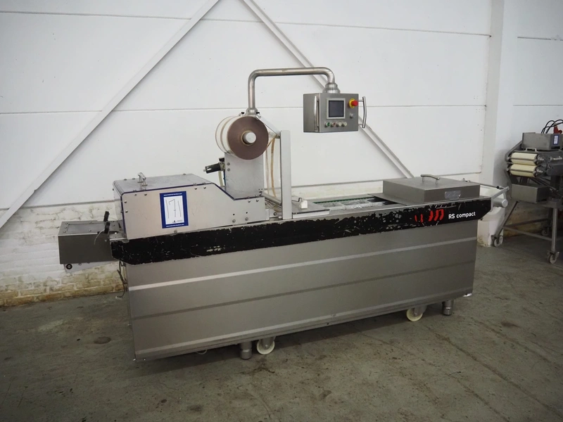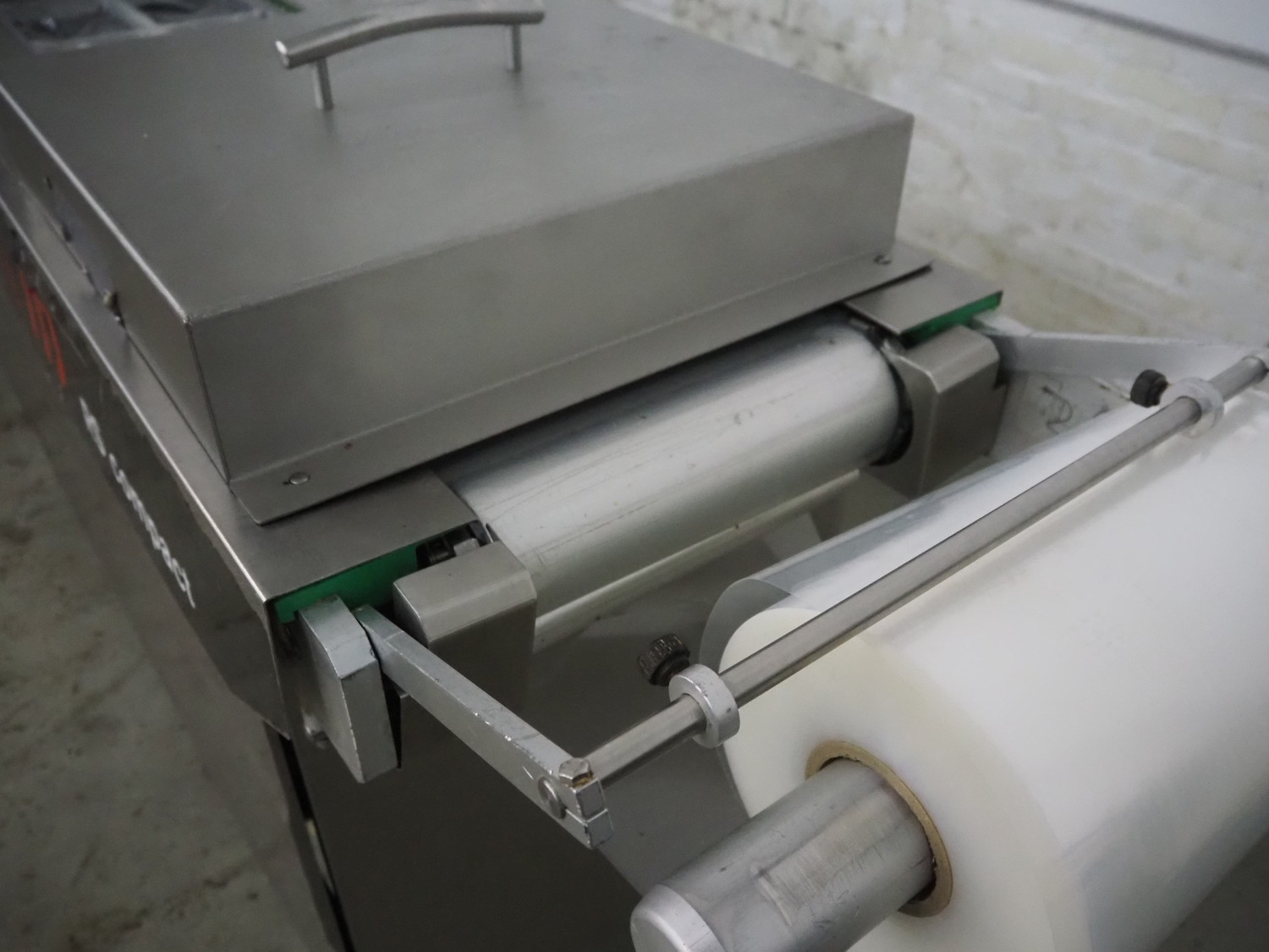 Inauen Maschinen AG mobile thermoformer, type: RS compact, machine number: 4405011, 400 V, 3 Ph, 50 Hz, 7 kW, 6-8 bar, film width: 325 mm, dye: (2x) 215 mm x 140 mm, outfeed belt width: 260 mm, Gardner Denver vacuum pump, type: VC 100 (75), number: 2670038, year of construction: 2006, capacity: 100 m³ per hour, total dimensions: 3300 mm x 950 mm x 1850 mm.