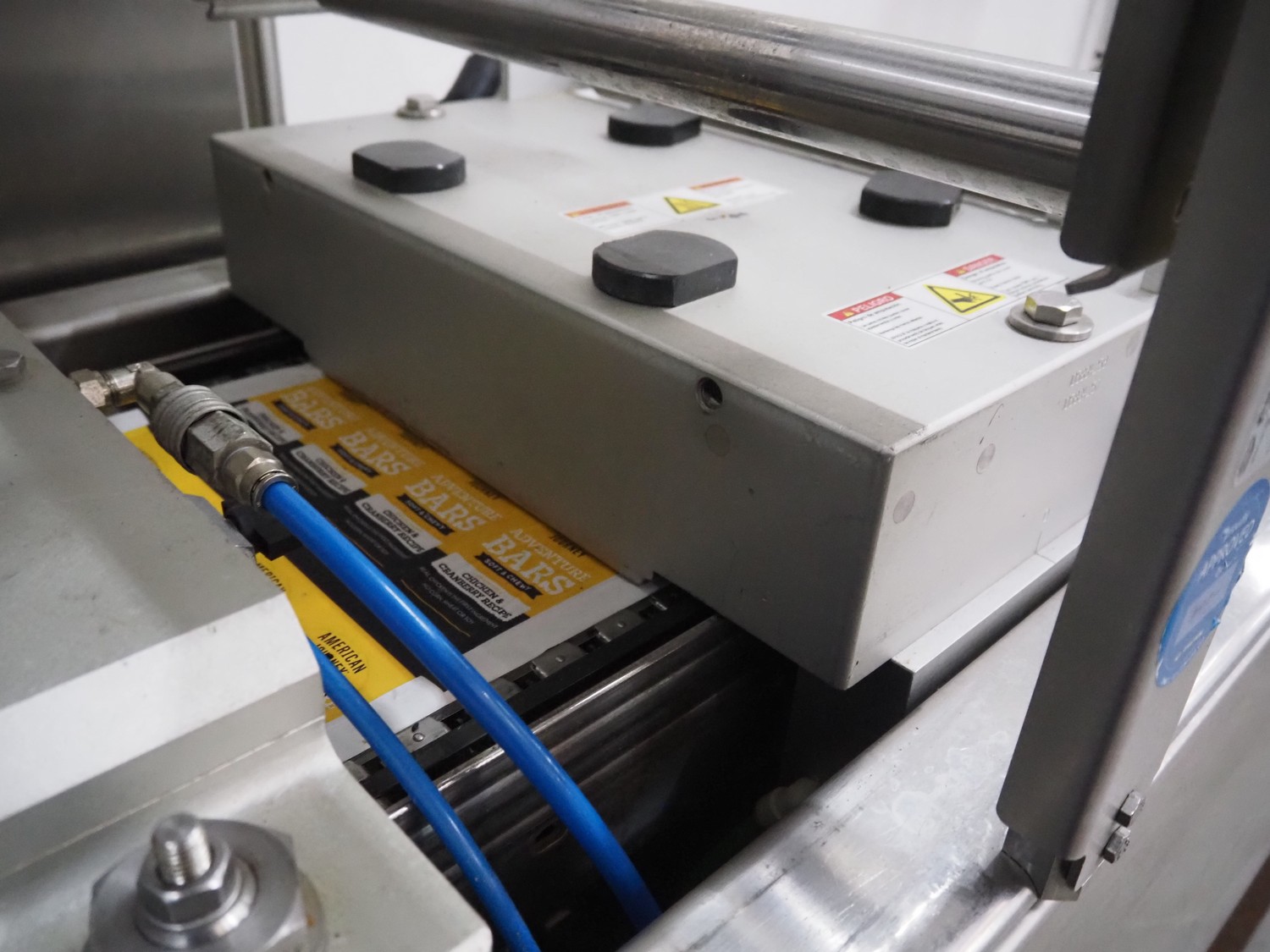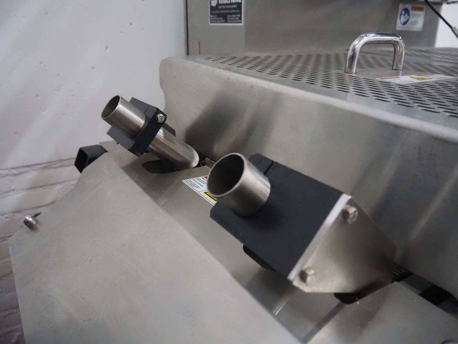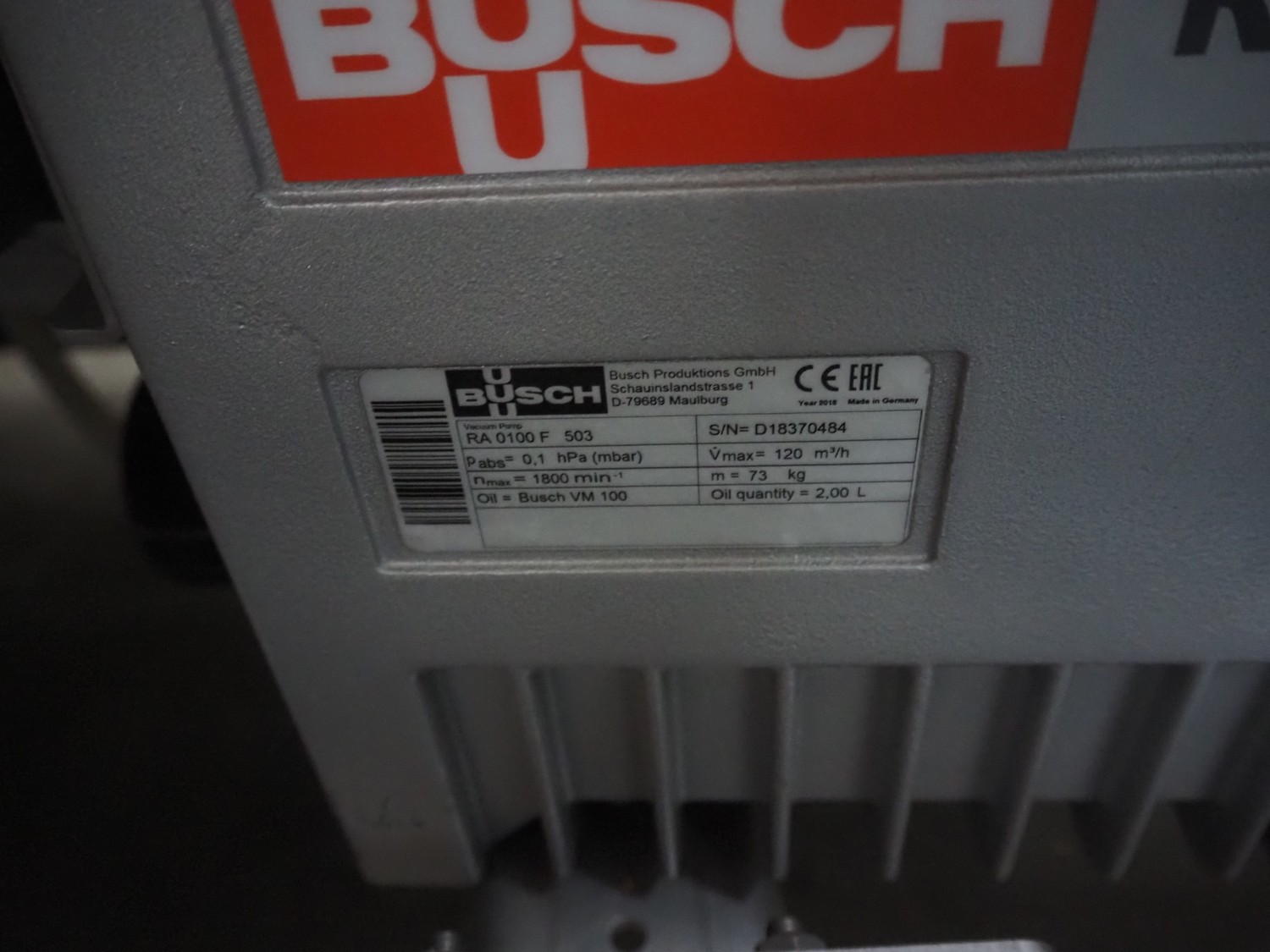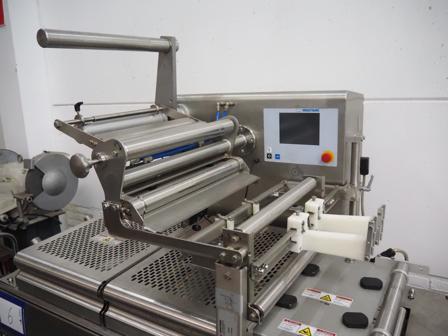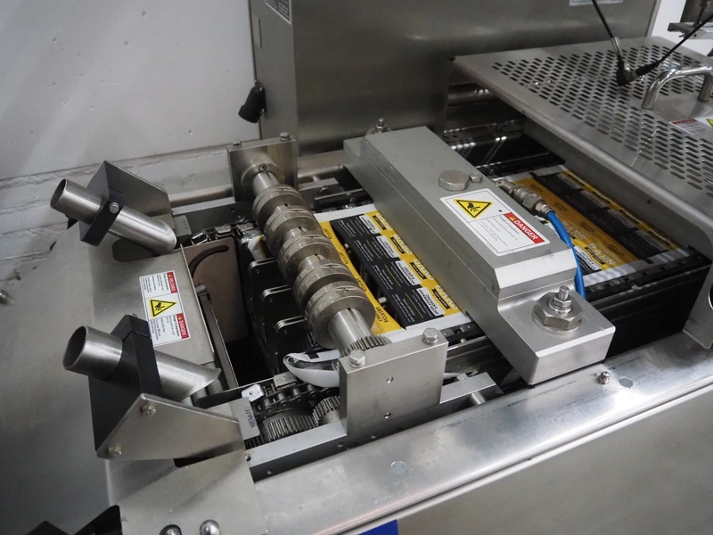 Multivac thermoformer, model: R105, serial number: 128952, year of construction: 04/2009, 220 V, 3 Ph, 60 Hz, 35 A, 6 kW, film width: 380 mm, dye dimensions: (8x) 100 mm x 47 mm x 30 mm, with Busch vacuum pump, type: RA 0100 F 503, capacity: 120 m³ per hour, total dimensions: 3250 mm x 1000 mm x 1880 mm.