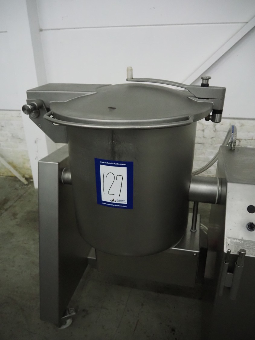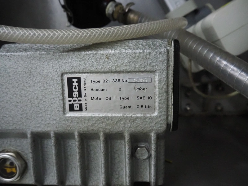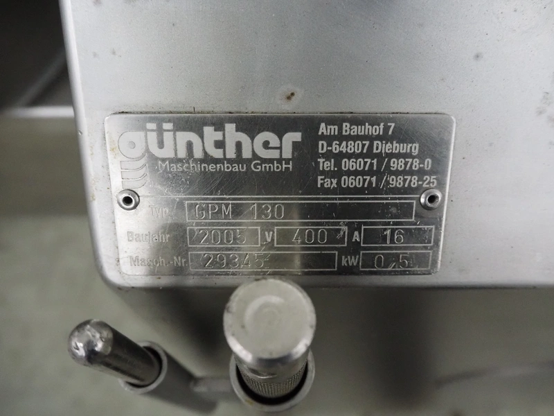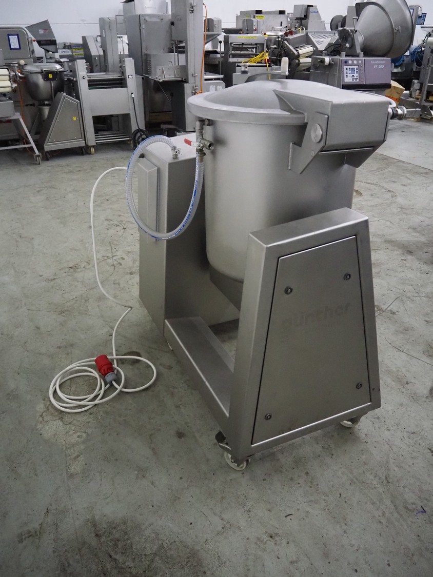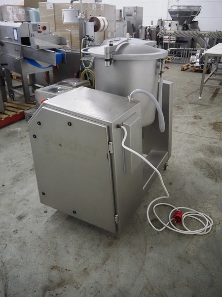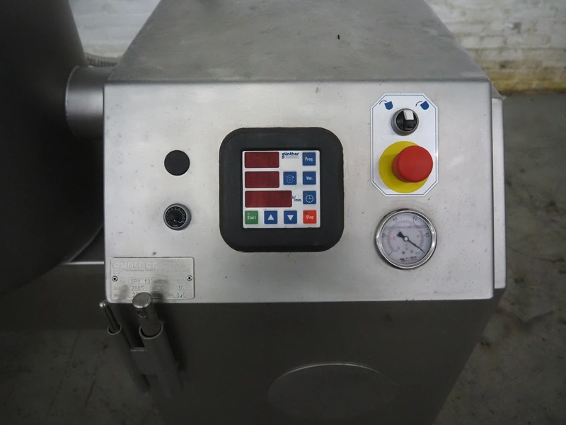 Günther Maschinenbau GmbH mobile double jacketed vacuum tumbler, type: GPM 130, machine number: 29345, year of construction: 2005, 400 V, 16 A, 0.5 kW, volume: 130 liter, Busch vacuum pump, type: 021-336, capacity: 21 m³ per hour, total dimensions: 1400 mm x 700 mm x 1400 mm.
