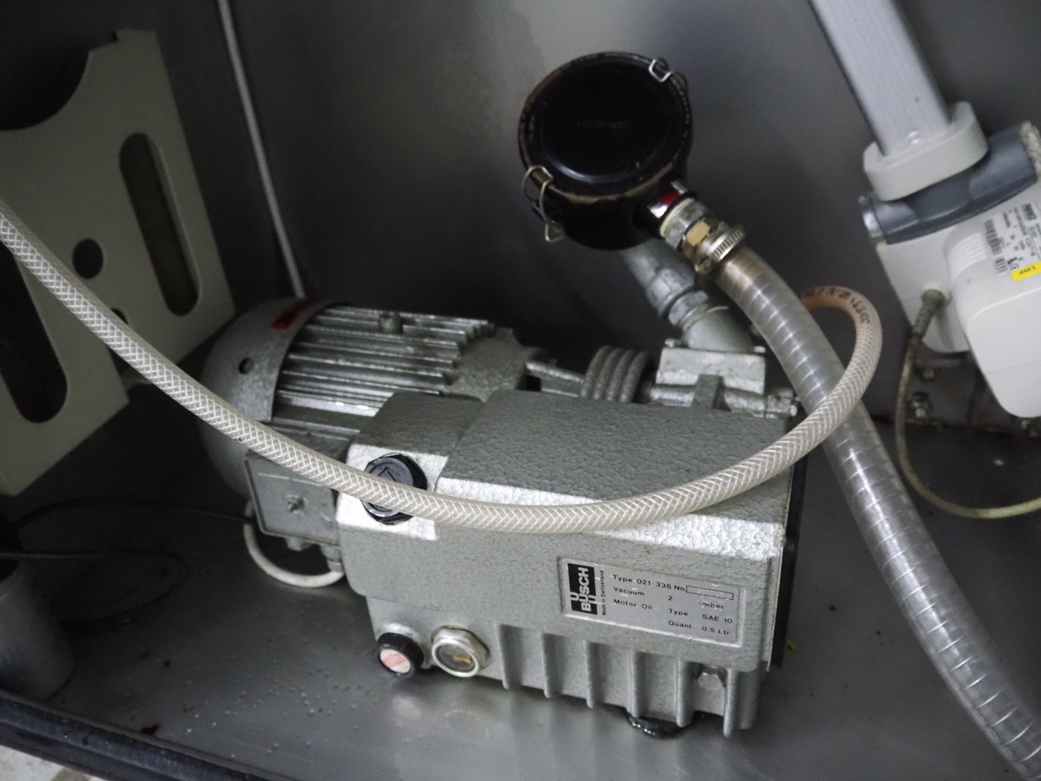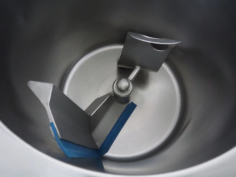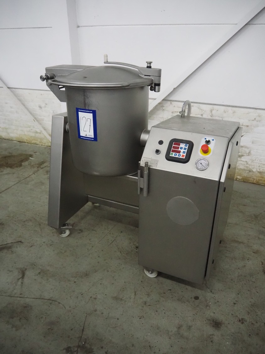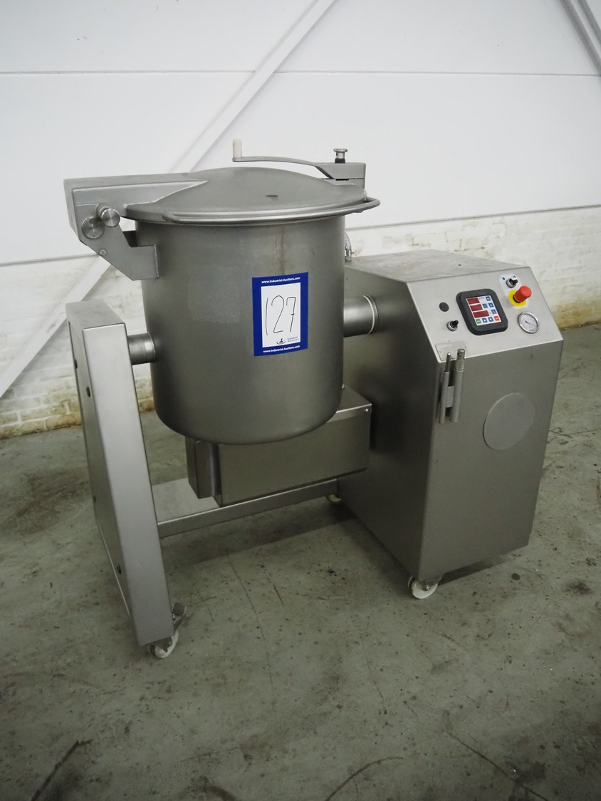 Günther Maschinenbau GmbH mobile double jacketed vacuum tumbler, type: GPM 130, machine number: 29345, year of construction: 2005, 400 V, 16 A, 0.5 kW, volume: 130 liter, Busch vacuum pump, type: 021-336, capacity: 21 m³ per hour, total dimensions: 1400 mm x 700 mm x 1400 mm.