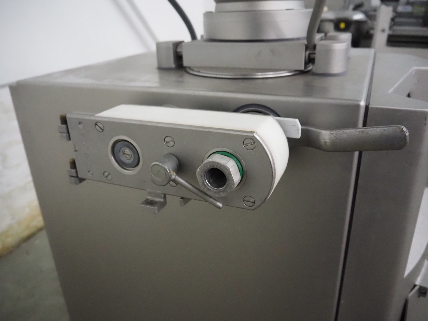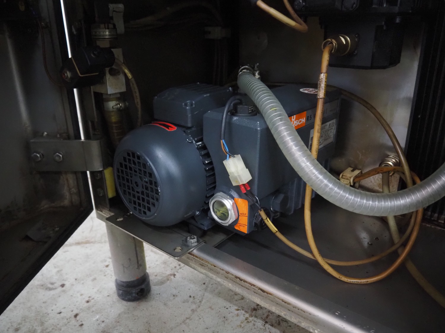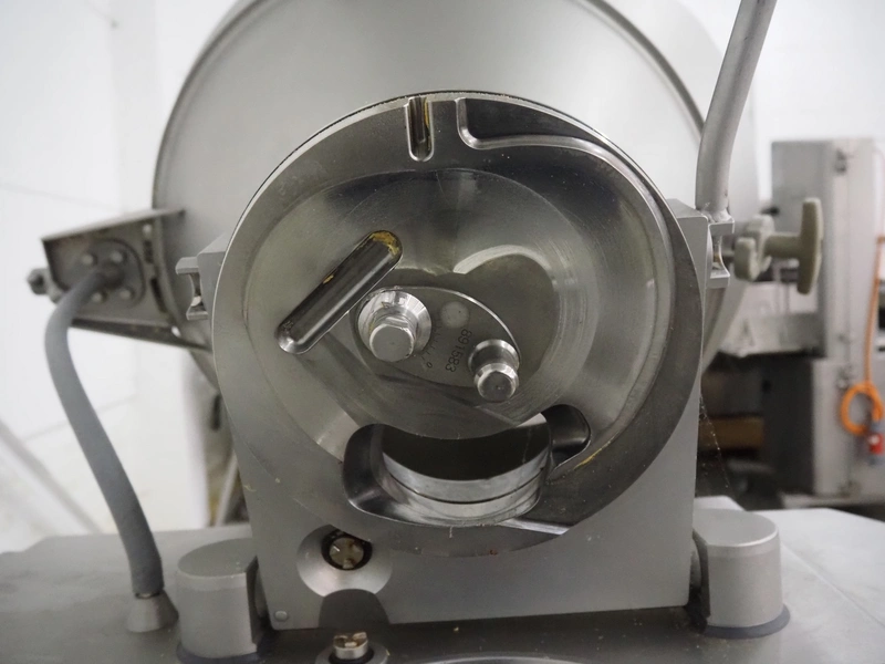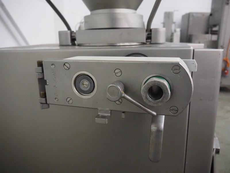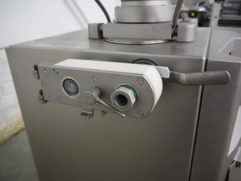 Handtmann vacuum filling machine with linking attachment, type: VF610, number: 20307, year of construction: 2005, 400 V, 3 Ph, 50 Hz, 3.5 kW, 5.1 A, linking attachment type: 34-5, number: 14137, Busch vacuum pump, model: KC 0016 E, capacity: 16 m³per hour, dimensions: 1150 mm x 950 mm x 1730 mm.