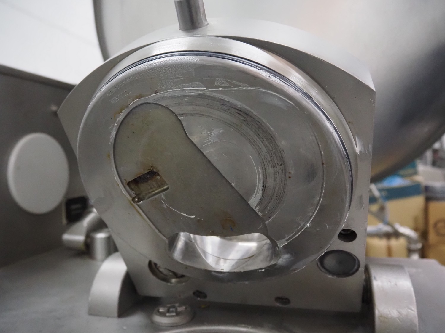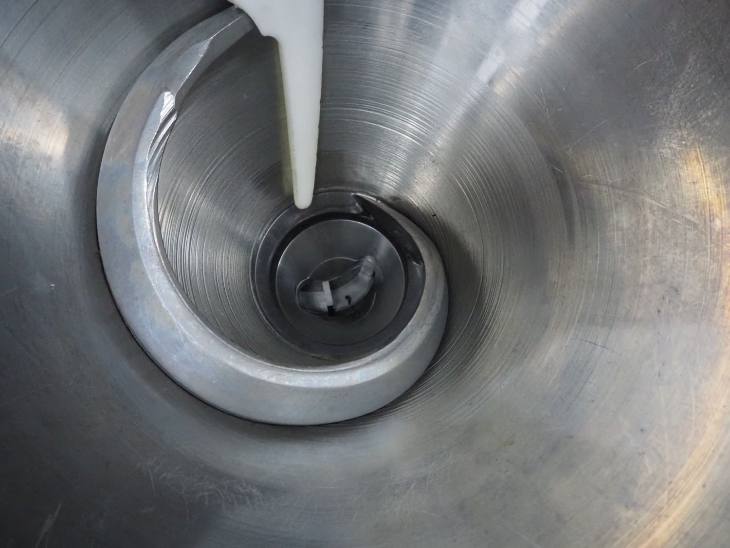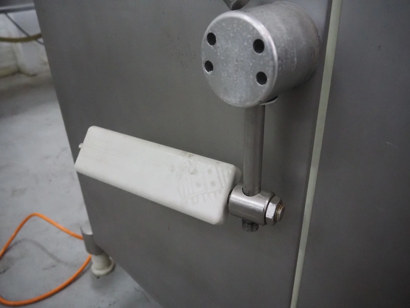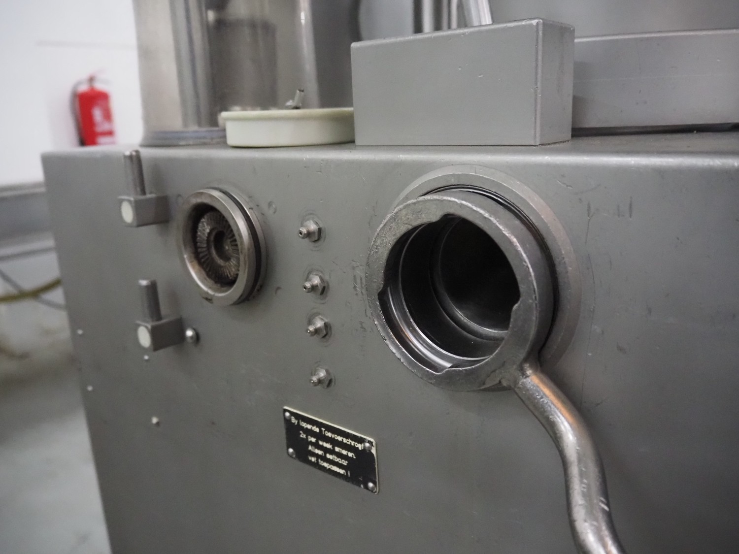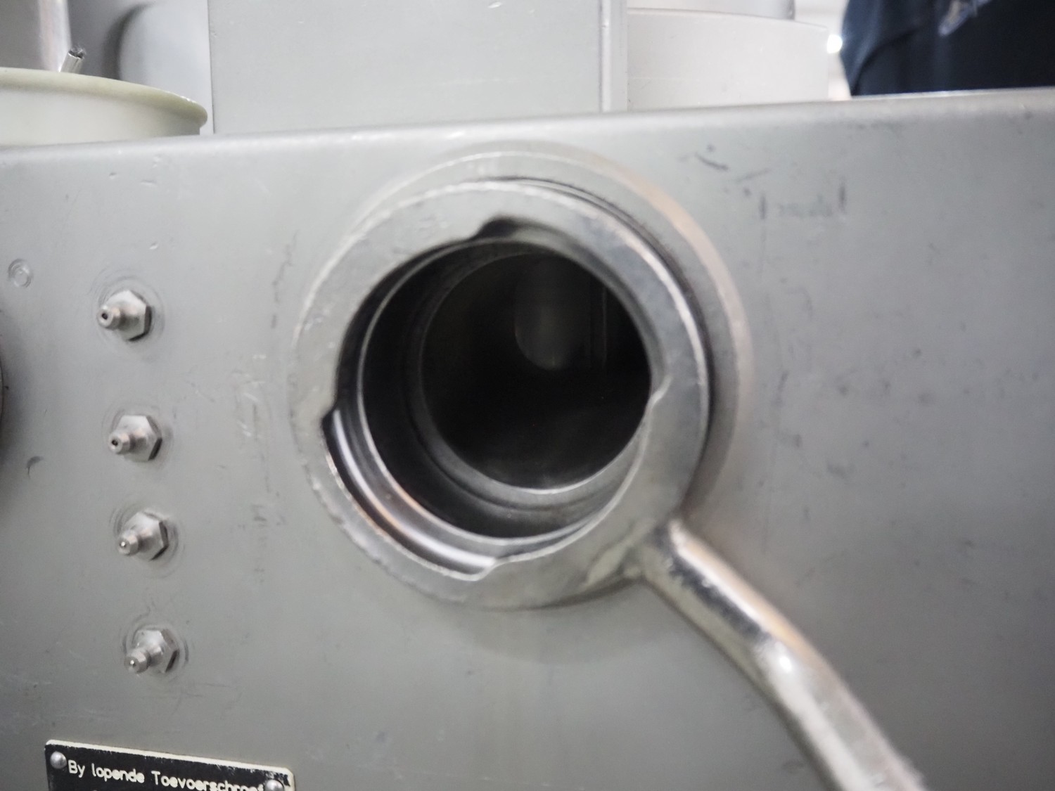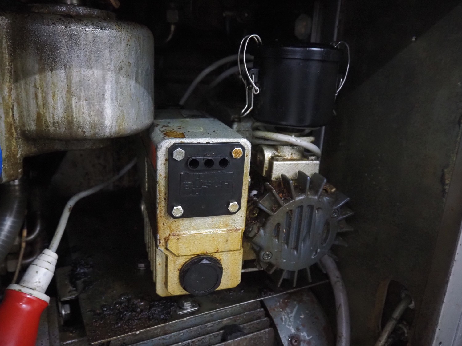 Vemag vacuum filling machine with lifter for 200 liter meat bins, model: Robby 2, type: 135, number: 1350478, year of construction: 2000, Busch vacuum pump, type: KC 0016 E 320, number: 140020158, year of construction: 2014, capacity: 16/19 m³ per hour, dimensions: 1800 mm x 1300 mm x 2000 mm.