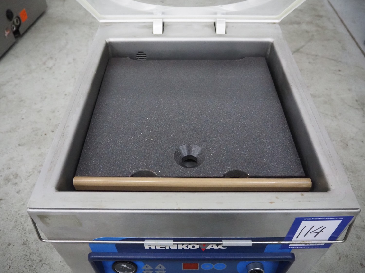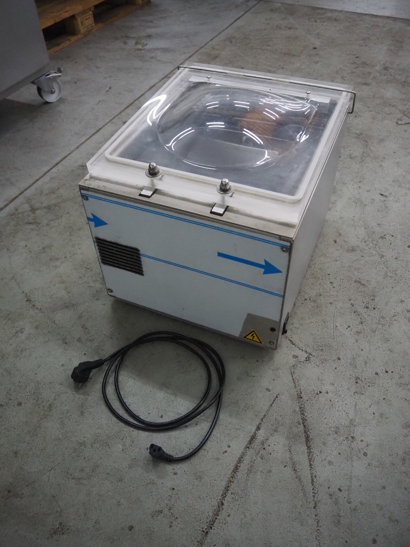 HFE vacuum systems BV vacuum machine, type: GASTRO ECO, serial number: 20091114, year of construction: 2009, 220-240 V, 1 Ph, 50 Hz, 4 A, seal length: 350 mm, chamber dimensions: 360 mm x 380 mm, total dimensions: 500 mm x 420 mm x 330 mm.