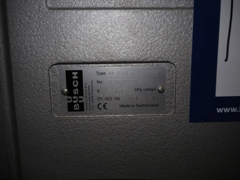 Busch vacuum pump, type: RA 0250 D 5ZI QMXX, number: C0235000200, year of construction: 2002, capacity: 250 m³ per hour, dimensions: 1050 mm x 600 mm x 520 mm.