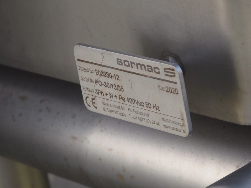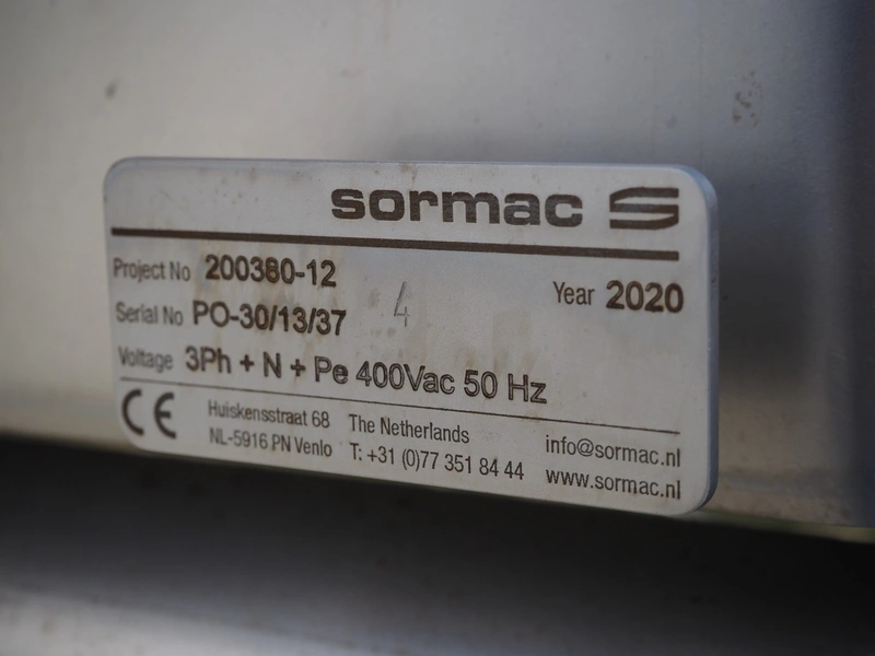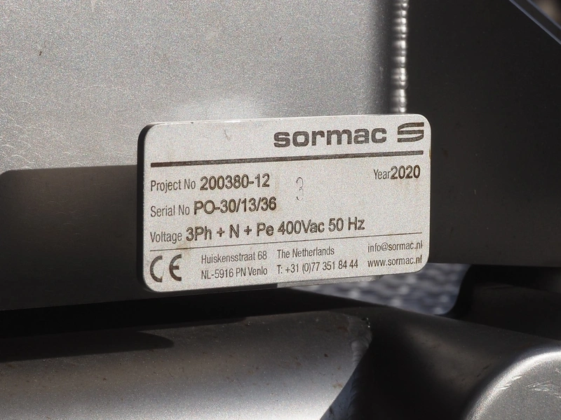 - (4x) Sormac decoring machine, type: PO-30, serial numbers: PO-30/13/35, PO-30/13/34, PO-30/13/36, PO-30/13/37, year of construction: 2020, 400 V, 3 Ph, 50 Hz, 10 stations, station working width: Ø 130 mm each, total dimensions: (4x) 2400 mm x 2200 mm x 2600 mm.
