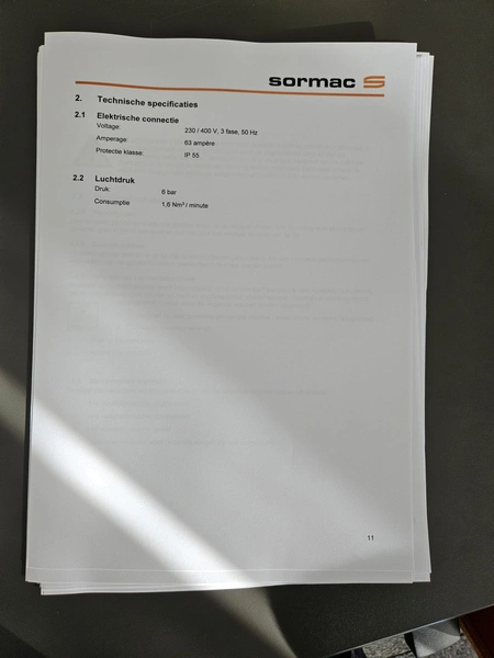 - (4x) Sormac suction device for pit removing, dimensions: (4x) 2500 mm x 1100 mm x 1000 mm.