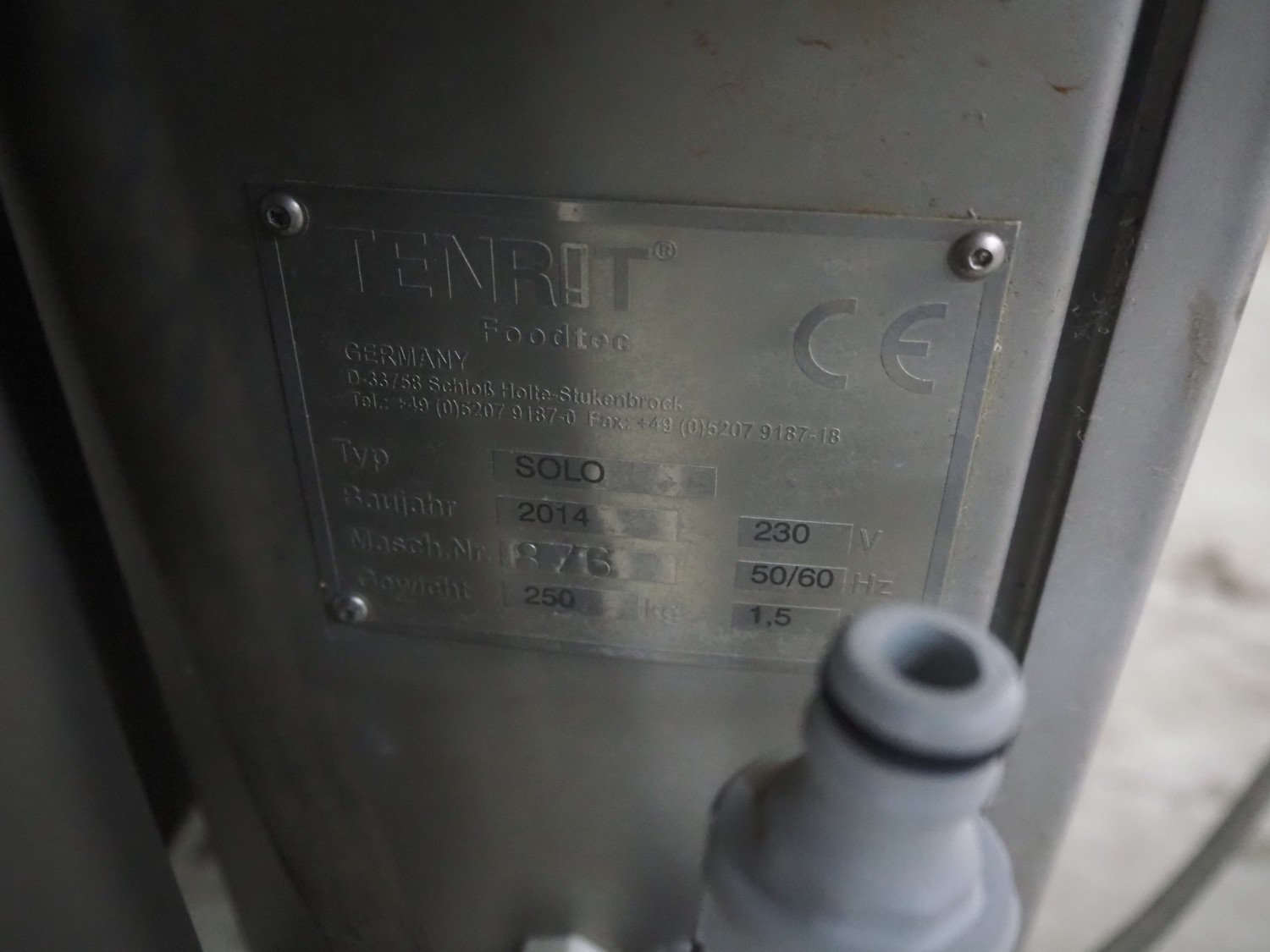 Tenrit Foodtec mobile asparagus peeler, type: SOLO, serial number: 876, year of construction: 2014, 230 V, 50/60 Hz, 1.5 kW, weight: 250 kg, dimensions: 1380 mm x 700 mm x 1450 mm.