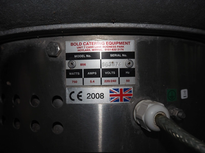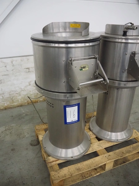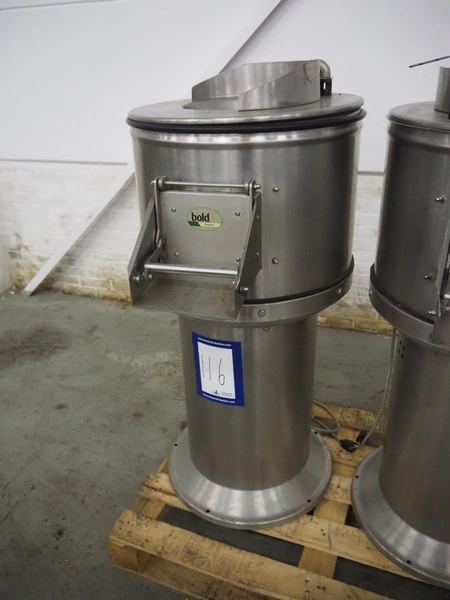 Bold Catering Equipment drum peeler, model: B56, serial number: 563874, year of construction: 2008, 220-240 V, 50 Hz, 5.4 A, 750 W, diameter infeed: 230 mm, dimensions drum: ø 530 mm x 150 mm, total dimensions: 700 mm x 550 mm x 1250 mm.