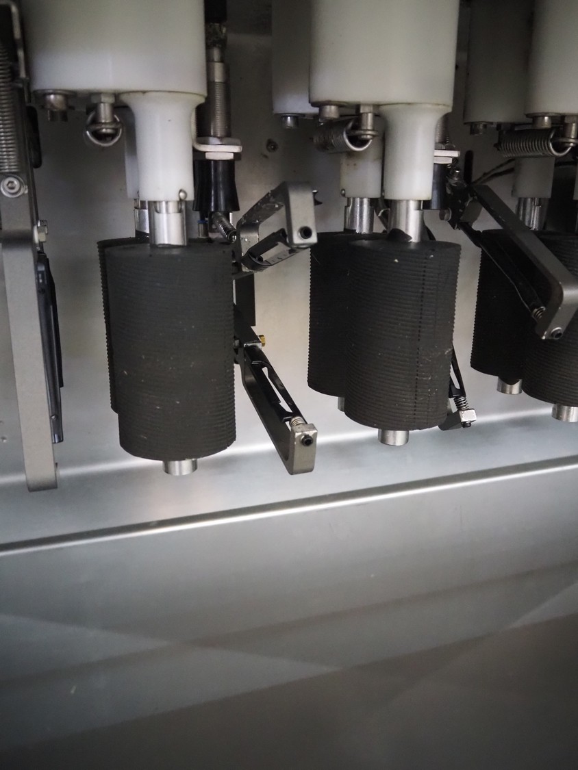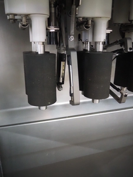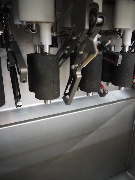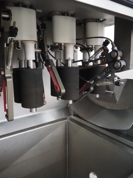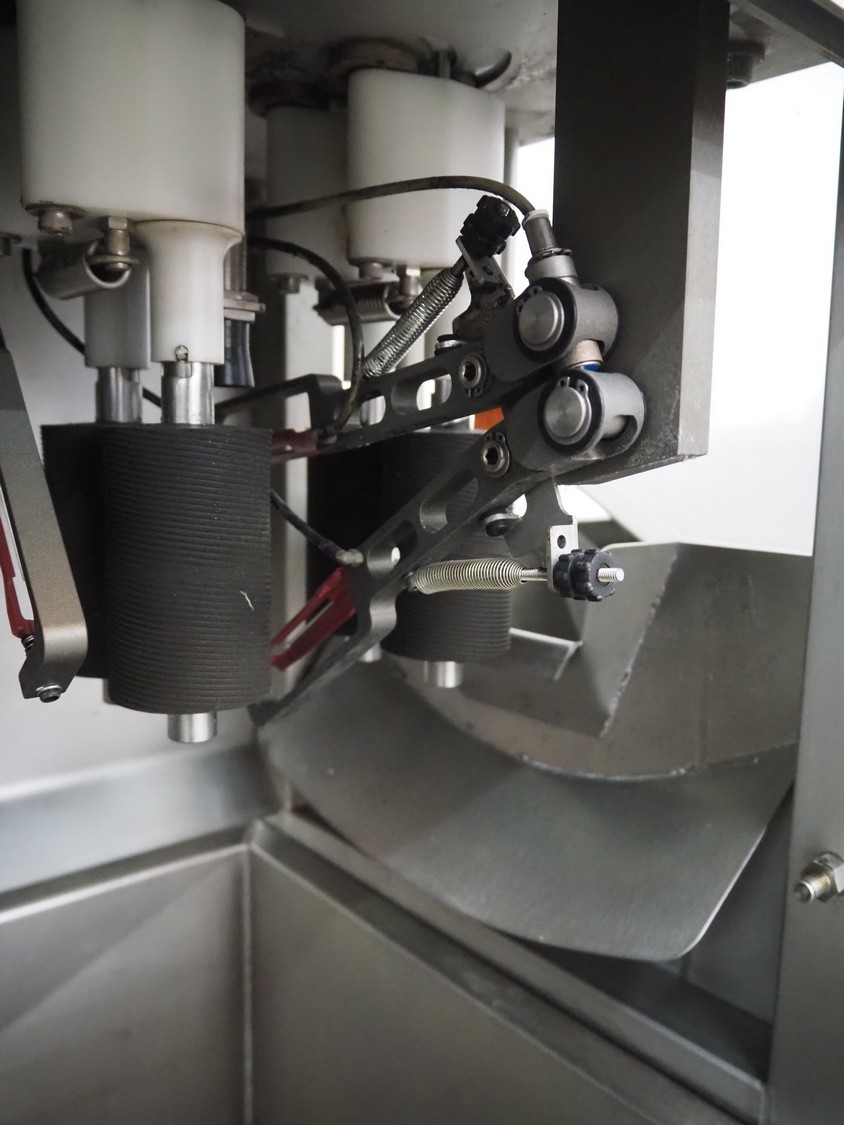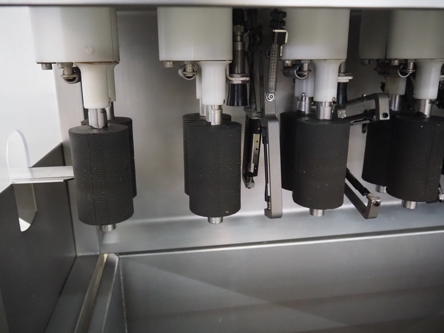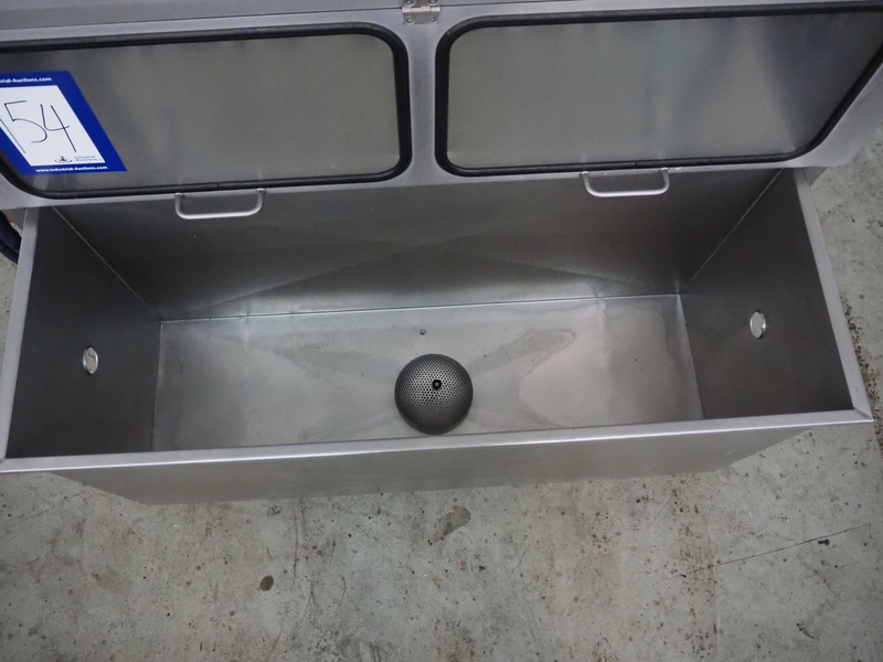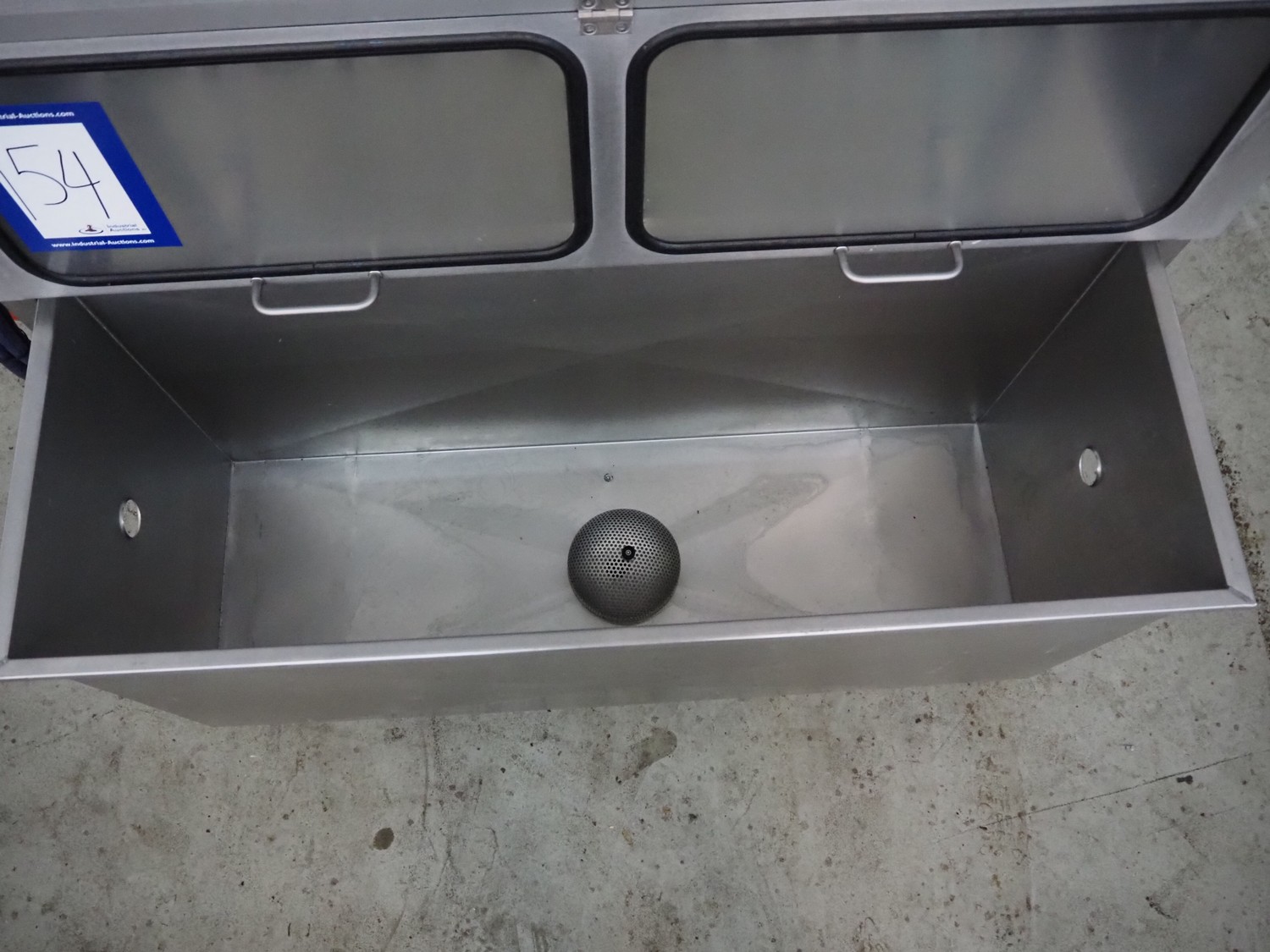 Hepro GmbH mobile industrial asparagus peeling machine, type: HSM-180/SAP, machine number: 0049-0902-1048, year of construction: 2009, 400 V, 3 Ph, 50 Hz, 0.5 kW, clearance: 60 mm x 55 mm, total dimensions: 2550 mm x 600 mm x 1420 mm.