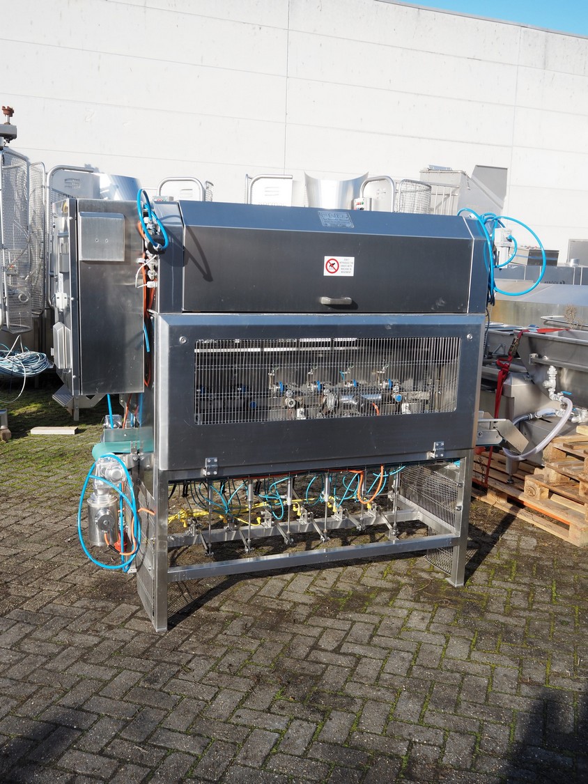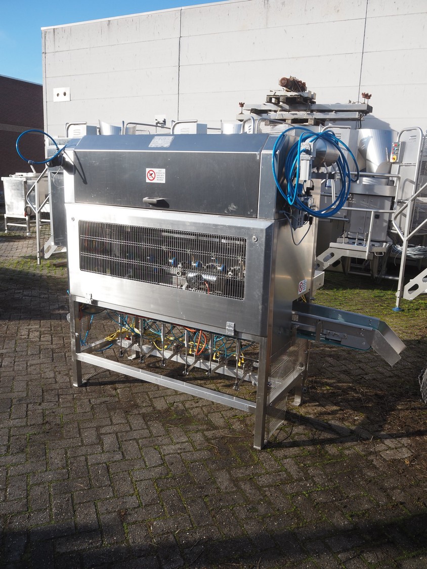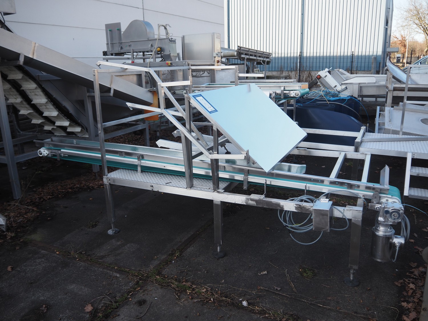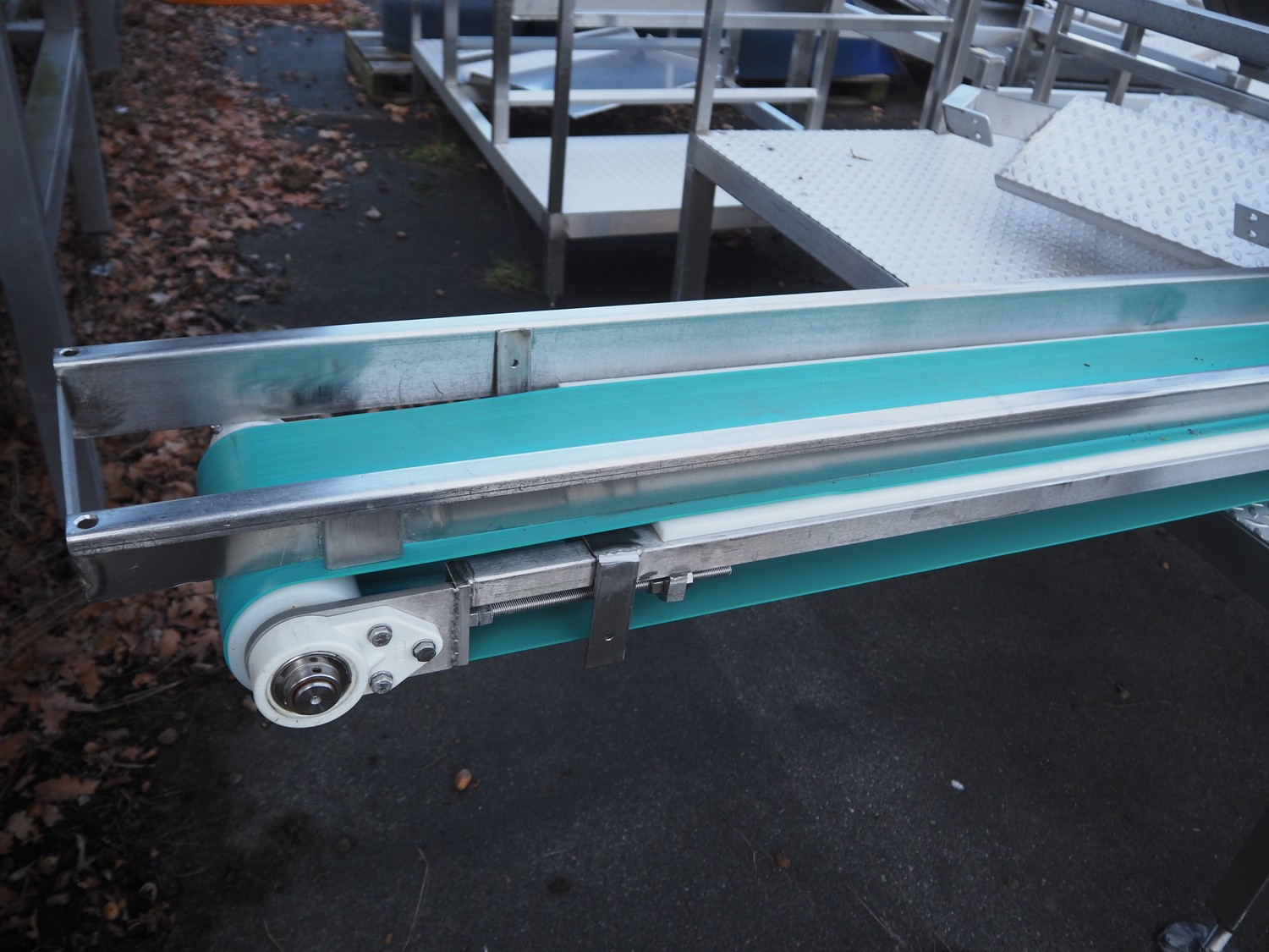 PND s.r.l. fruit/vegetable peeler, type: peeling machine, year of construction: 2014, clearance: 150 mm x 205, plastic belt, belt width: 195 mm, total dimensions: 2700 mm x 1200 mm x 1900 mm. Including platform, dimensions: 3400 mm x 1800 mm x 1440 mm.