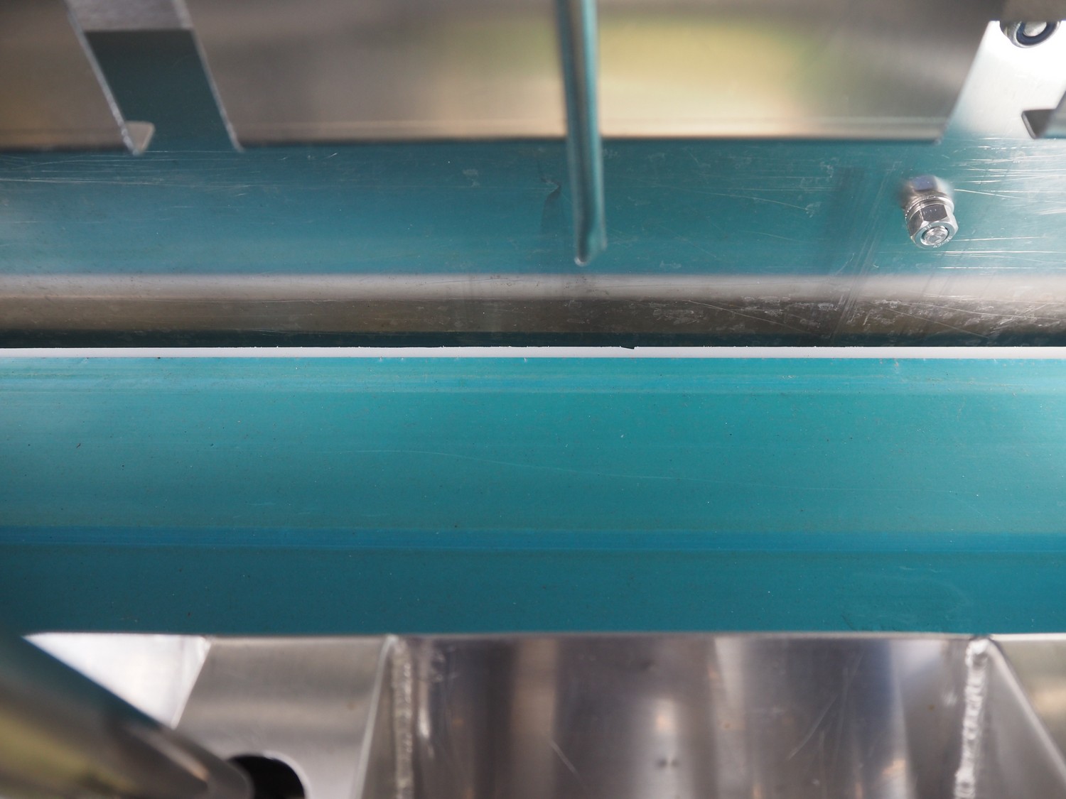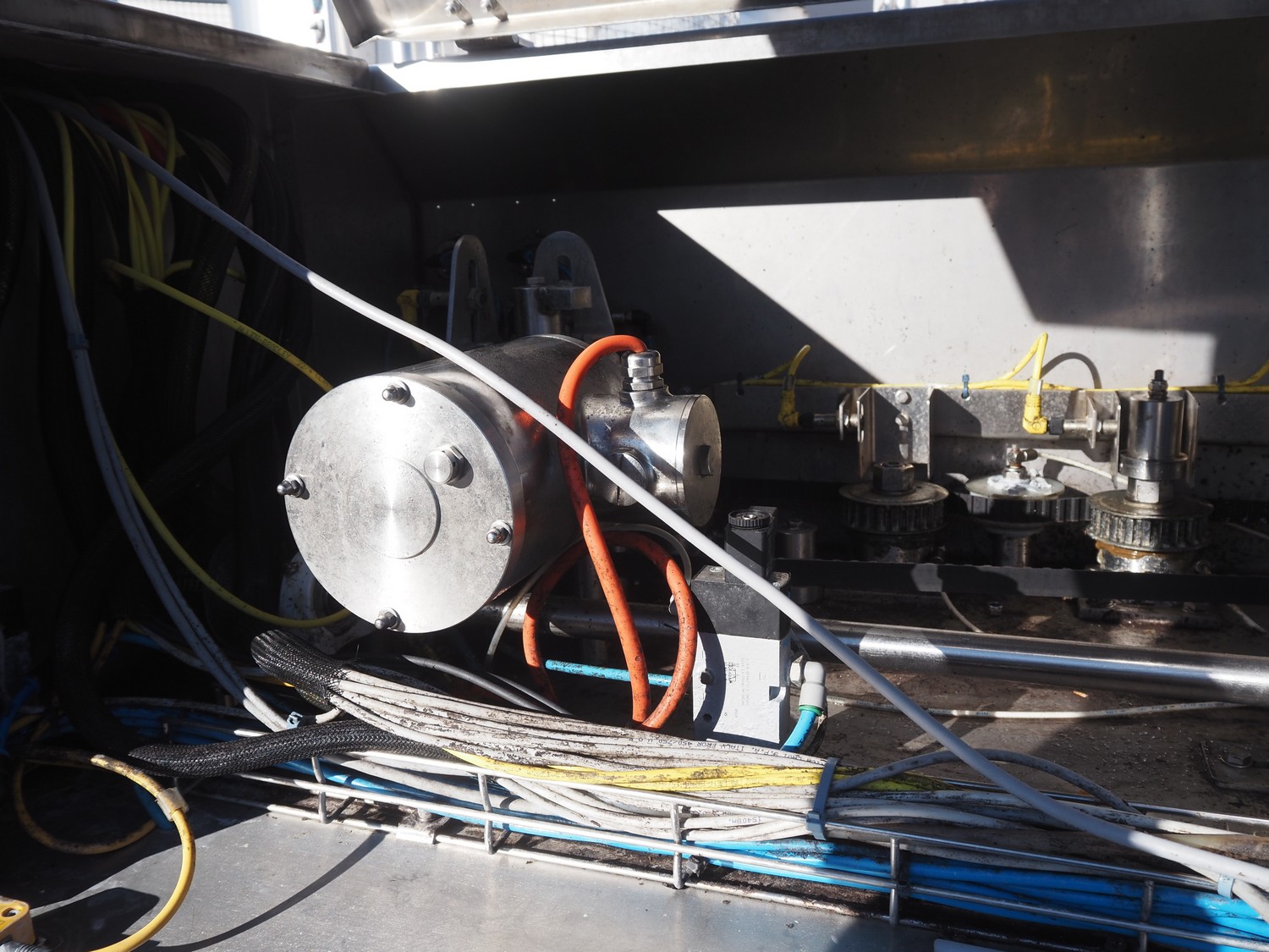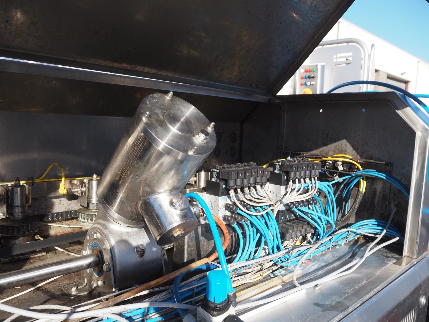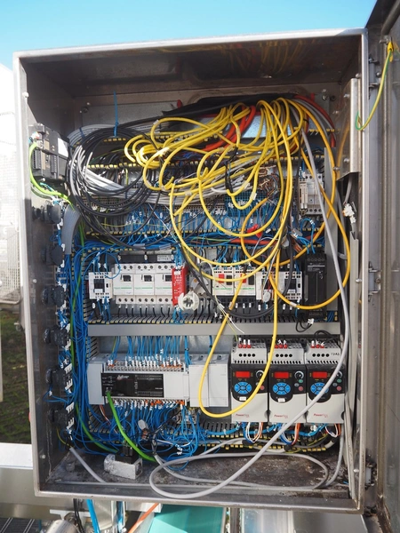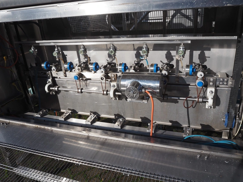 PND s.r.l. fruit/vegetable peeler, type: peeling machine, year of construction: 2014, clearance: 150 mm x 205, plastic belt, belt width: 195 mm, total dimensions: 2700 mm x 1200 mm x 1900 mm. Including platform, dimensions: 3400 mm x 1800 mm x 1440 mm.