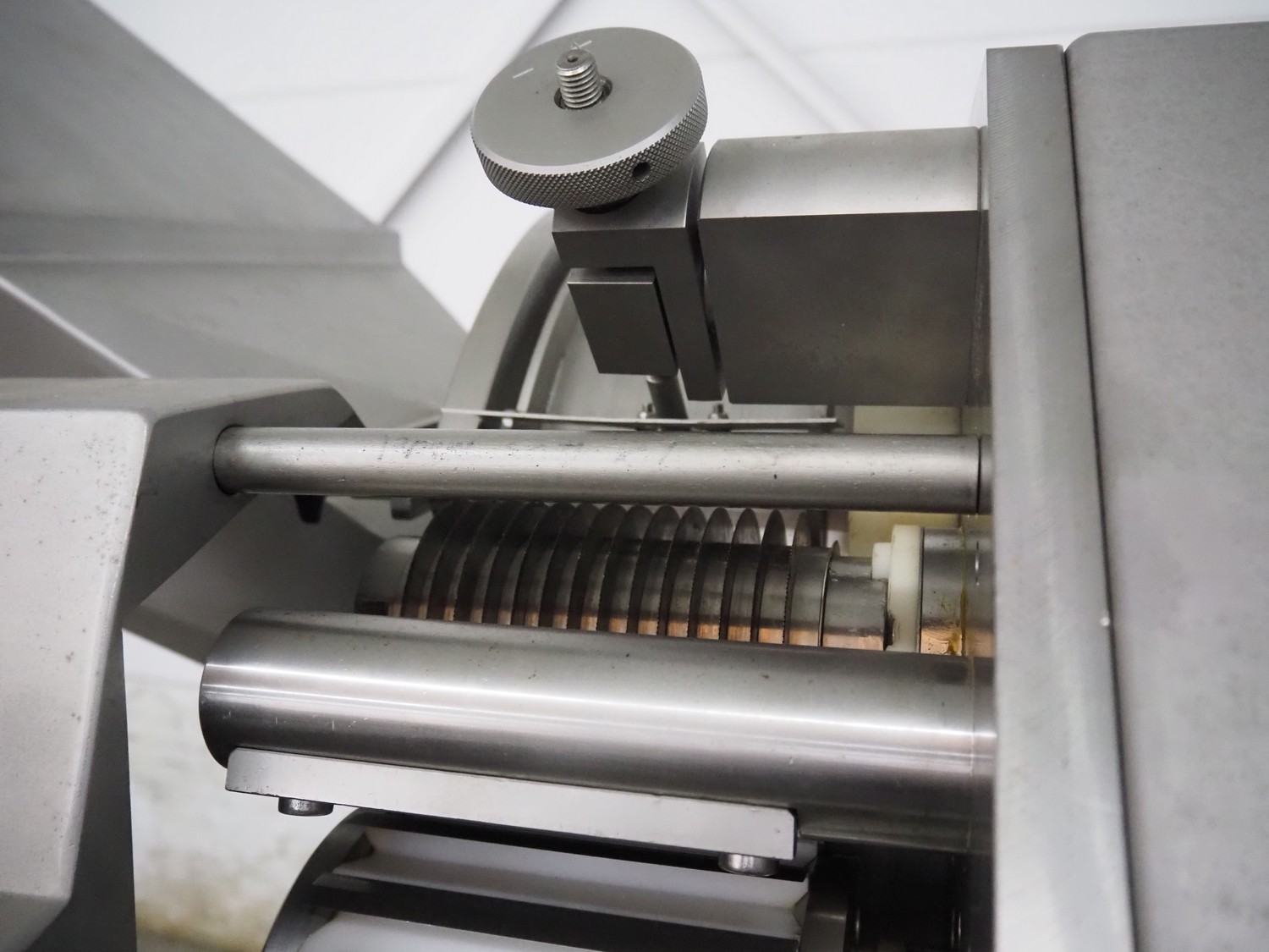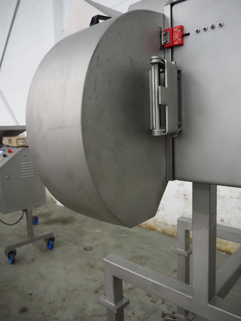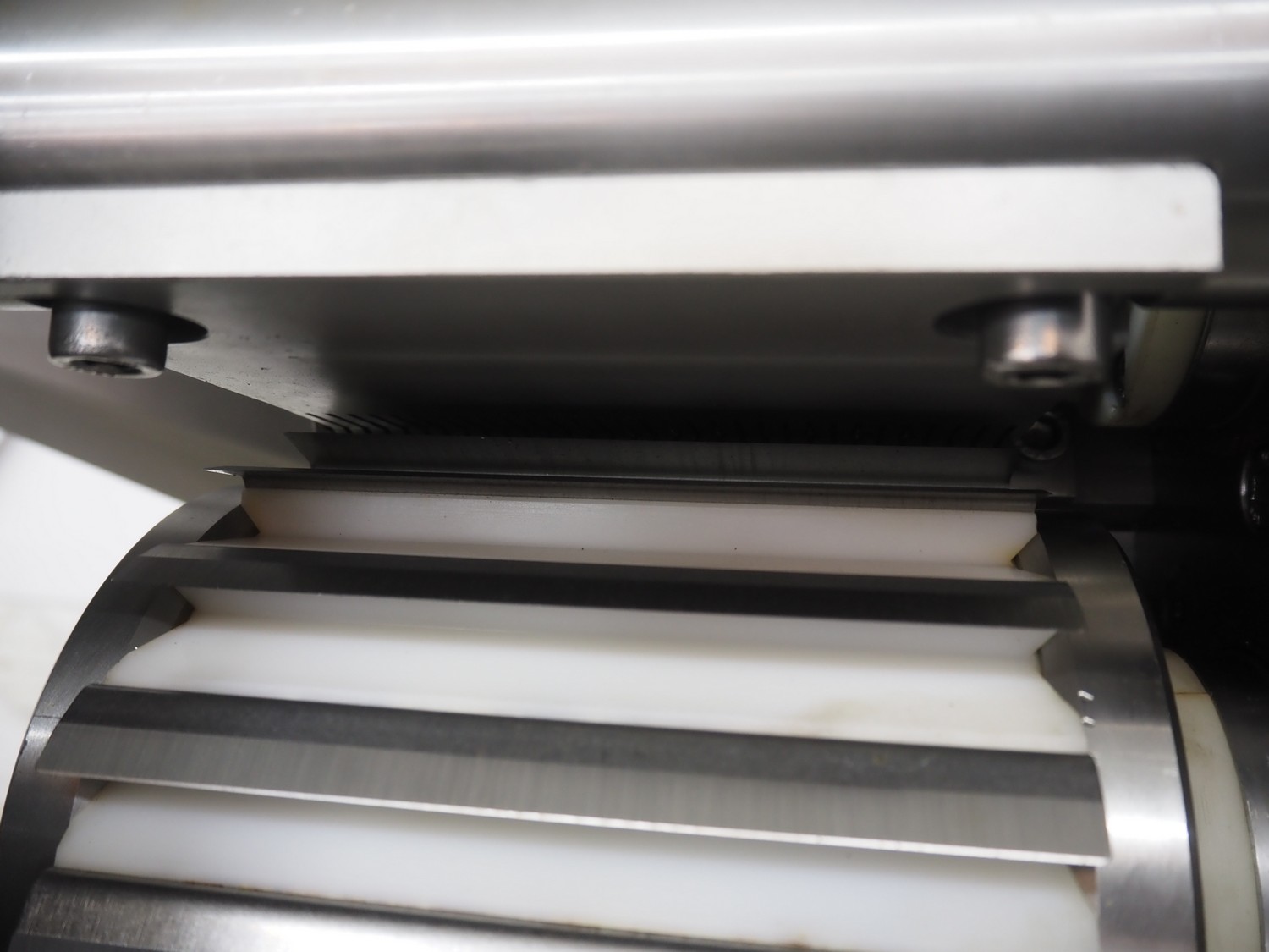 FAM n.v. mobile vegetable slicer, type: Flexifam, serial number: 6306, year of construction: 2005, 415 V, 3 Ph, 50 Hz, 1.5 kW, weight: 300 kg, distance between knives: 10 mm, dimensions infeed: 420 mm x 275 mm, total dimensions: 1700 mm x 1150 mm x 2180 mm.