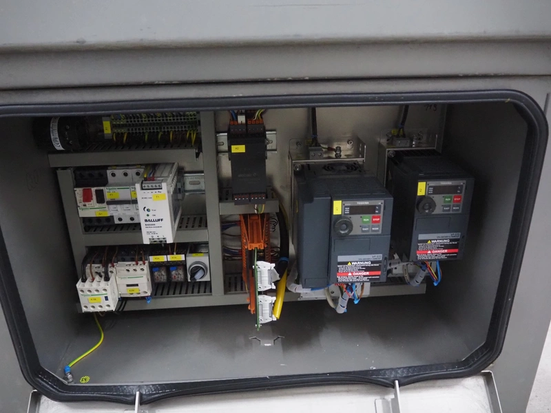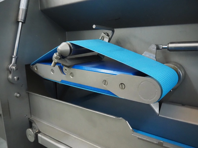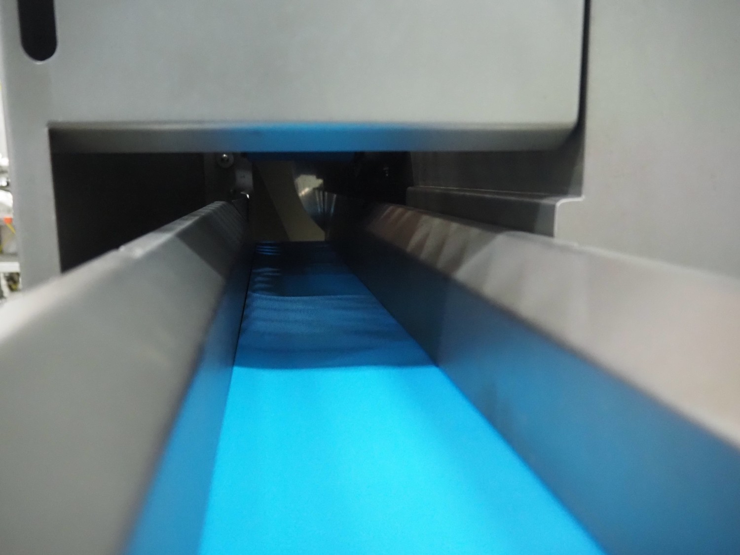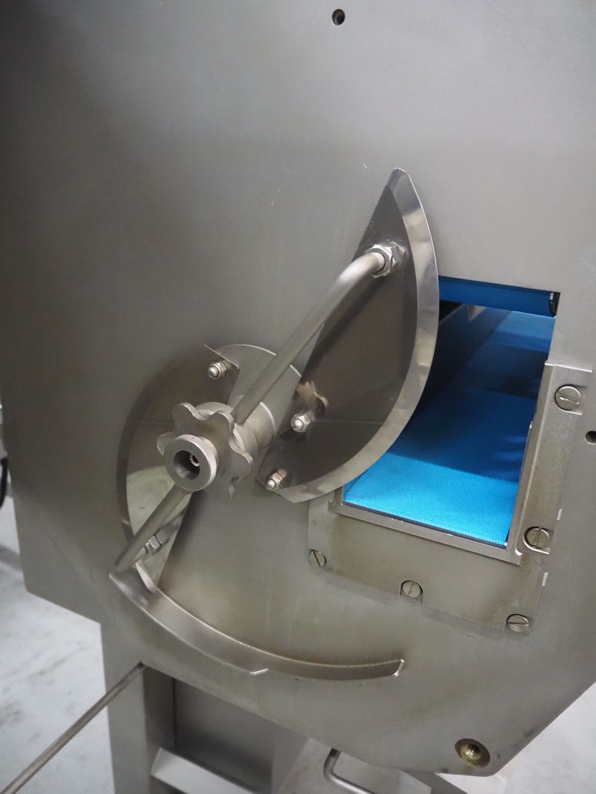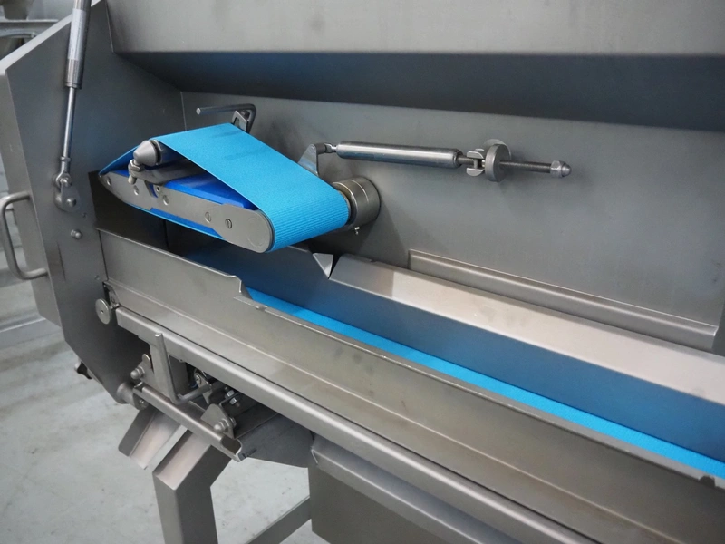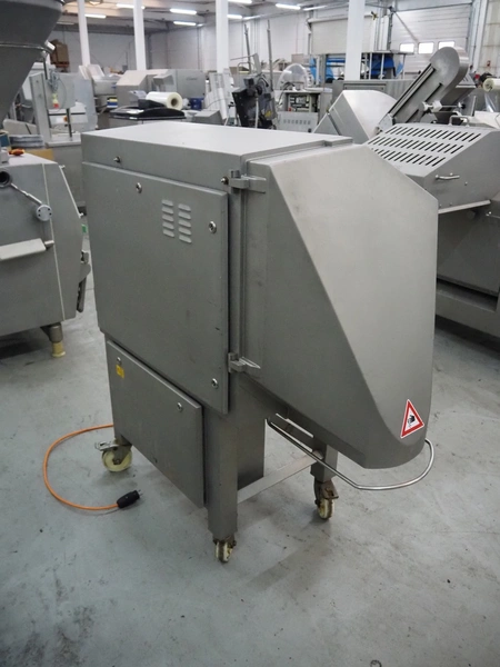 Kronen mobile vegetable slicer, type: GS 10-2, serial number: 2531, year of construction: 2017, 230 V, 1 Ph, 50/60 Hz, 1.8 kW, plastic belt, belt width: 130 mm, total dimensions: 1750 mm x 650 mm x 1430 mm.
